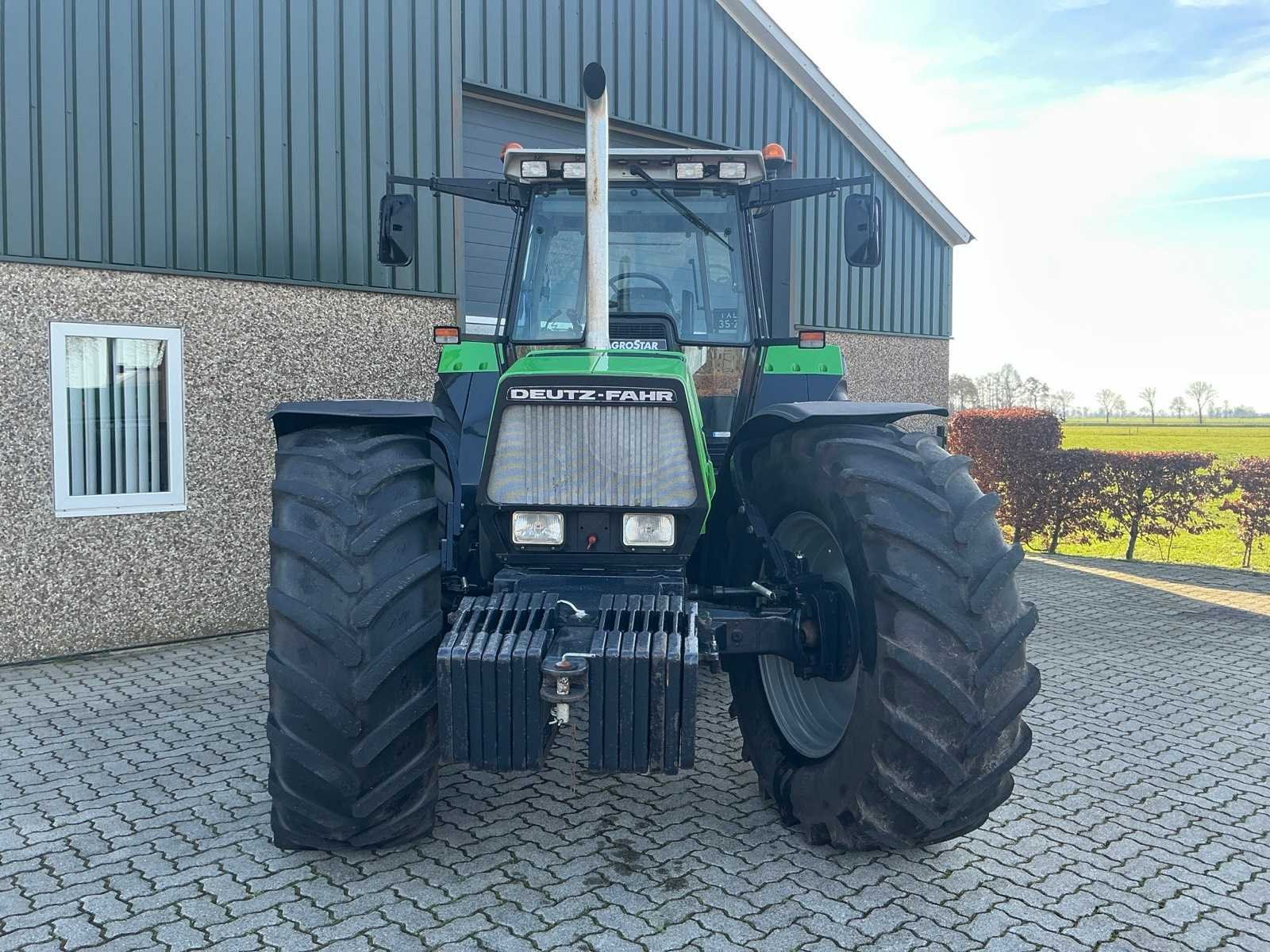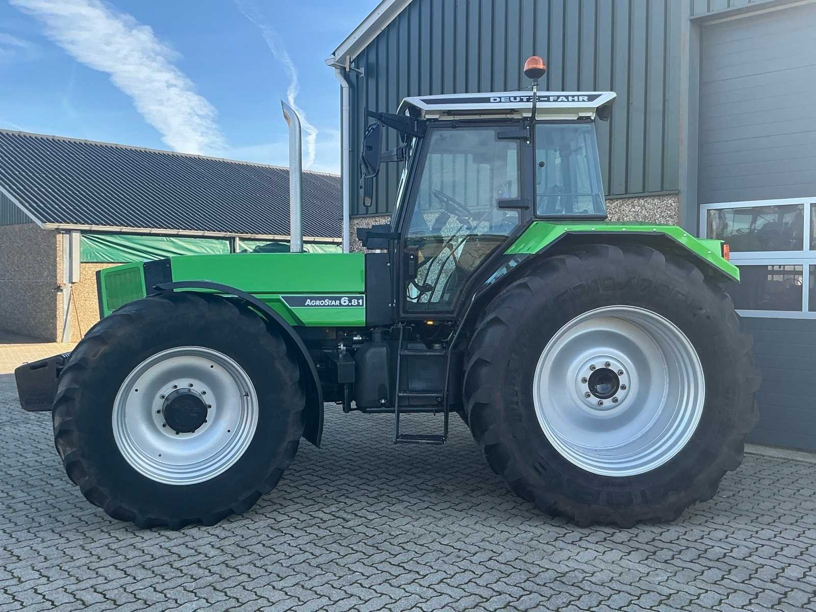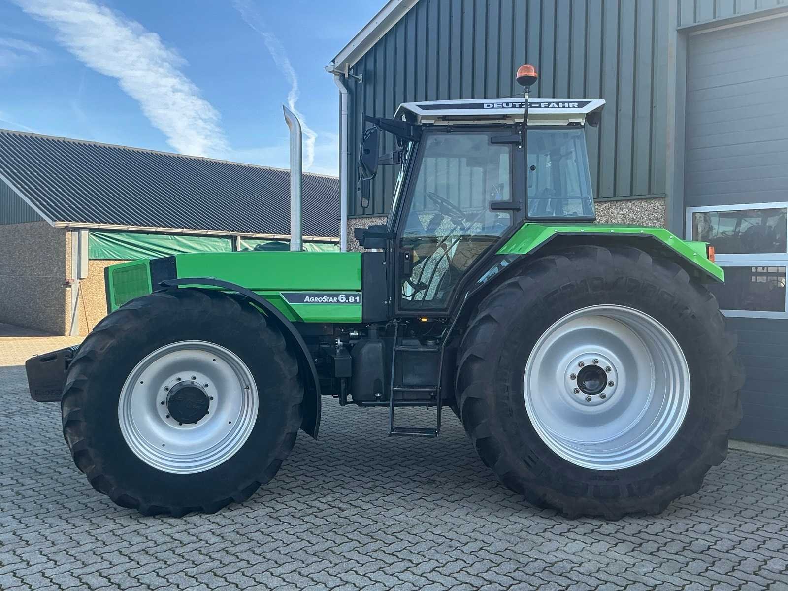 Nee Merk: Deutz-Fahr Type: Agrostar 6.81 Bouwjaar: 1994 Kenteken: TSF-10-F Motorvermogen (kW): 138kW Afgelezen urenstand: 6661 Versnellingsbaktype: Mechanisch Aantal hydraulische ventielen voor: 0 Aantal hydraulische ventielen achter: 4 Bandenmaat voor: Michelin 600/65R34 Bandenmaat achter: Michelin 710/70R42 Frontgewichtenset: true Cabine: true Eigen gewicht: 7000kg Totale afmeting L: 5400mm Totale afmeting Breedte: 2460mm Totale afmeting Hoogte: 3100mm Datum eerste toelating: 1994-06-30