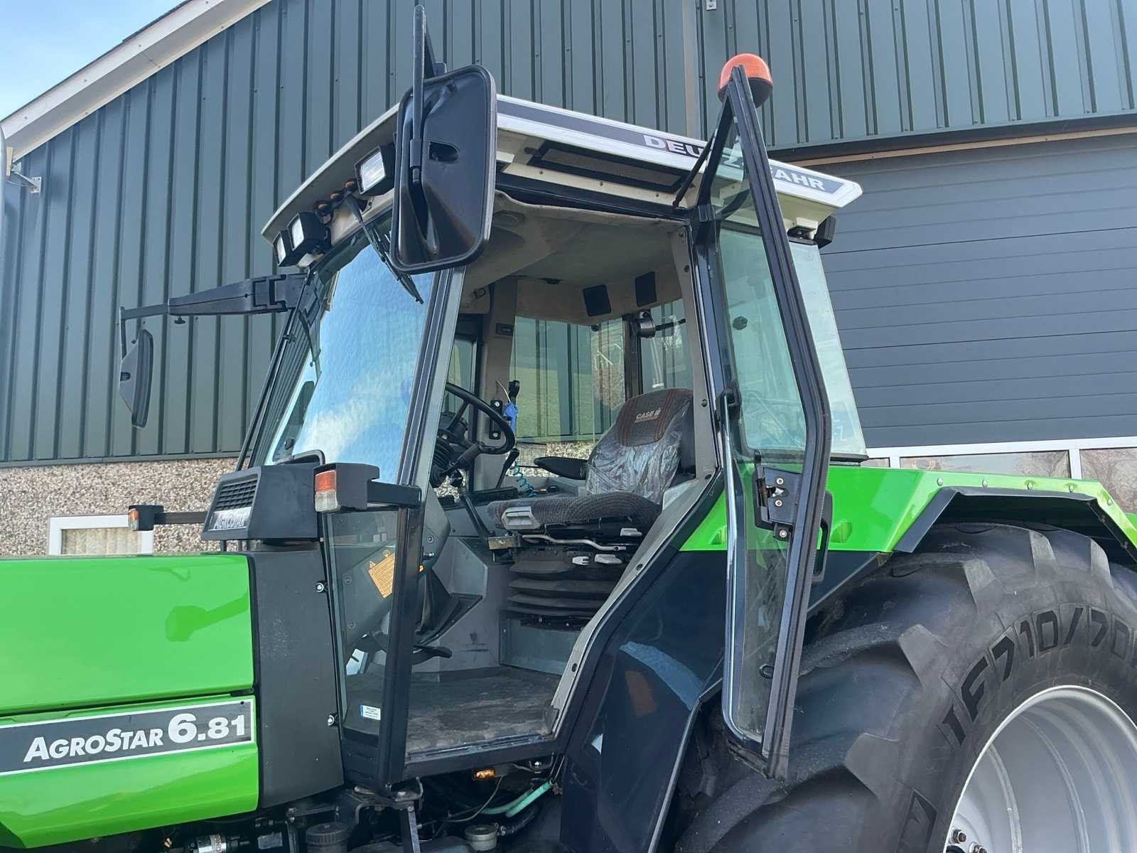 Nee Merk: Deutz-Fahr Type: Agrostar 6.81 Bouwjaar: 1994 Kenteken: TSF-10-F Motorvermogen (kW): 138kW Afgelezen urenstand: 6661 Versnellingsbaktype: Mechanisch Aantal hydraulische ventielen voor: 0 Aantal hydraulische ventielen achter: 4 Bandenmaat voor: Michelin 600/65R34 Bandenmaat achter: Michelin 710/70R42 Frontgewichtenset: true Cabine: true Eigen gewicht: 7000kg Totale afmeting L: 5400mm Totale afmeting Breedte: 2460mm Totale afmeting Hoogte: 3100mm Datum eerste toelating: 1994-06-30