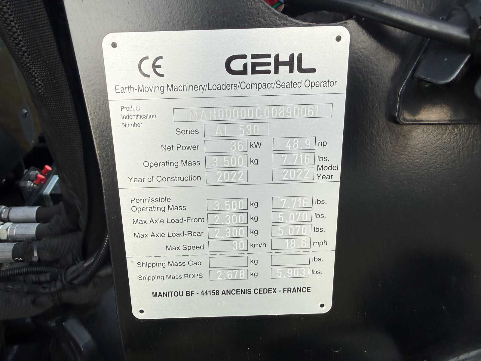 Voorzien van: 2 dubbele ventielen voor, motortype: 403J-E17T, set lepels, Nee Merk: Gehl Type: AL530 Bouwjaar: 2022 Serienummer: MAN000000C3000061 Merk motor: Perkins Motorvermogen (kW): 36kW Aantal cilinders: 3 Brandstof: Diesel Bedrijfsgewicht: 2678kg Graafbak afm. b: 1520mm Bandenmaat: 425/55R17 Cabine: true Afgelezen urenstand: 21 Eigen gewicht: 2678kg Totale afmeting L: 3790mm Totale afmeting Breedte: 1330mm Totale afmeting Hoogte: 2290mm