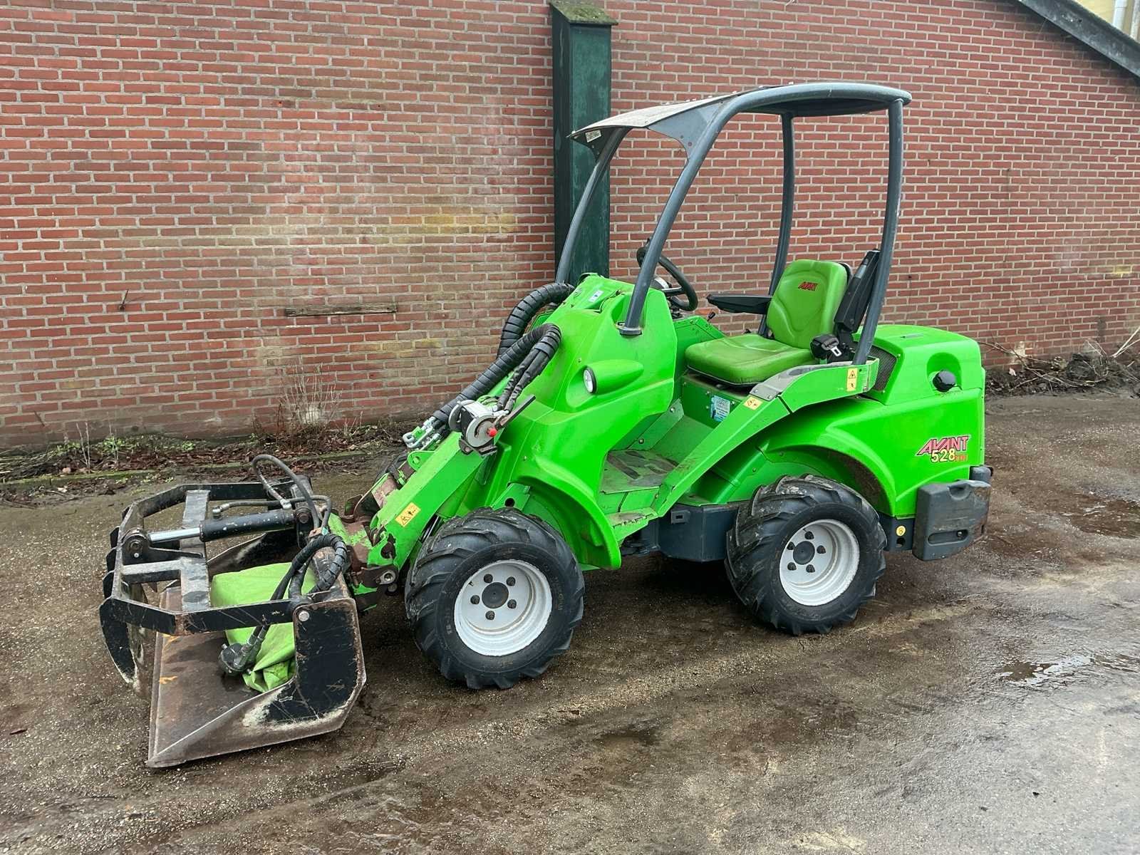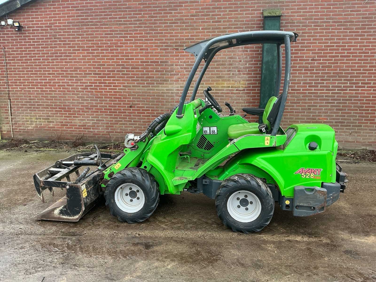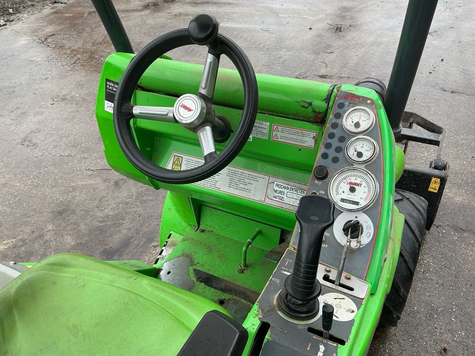 Voorzien van: mechanische snelwissel, grondbak 1280mm met balenklem, snel aansluiting aux., verlichting, vinyl stoel, joystick bediening, extra hydraulische functie, hydrostatische vierwielaandrijving, massa schakelaar, trekhaak, laadvermogen: 950 kg GVW: 2.380 kg. Nee Merk: Avant Type: M528MIPCT Bouwjaar: 2015 Serienummer: 761771504 Merk motor: Kubota Motorvermogen (kW): 21kW Aantal cilinders: 3 Brandstof: Diesel Bedrijfsgewicht: 1430kg Bandenmaat: 23x10.50-12 Afgelezen urenstand: 1812 Eigen gewicht: 1430kg