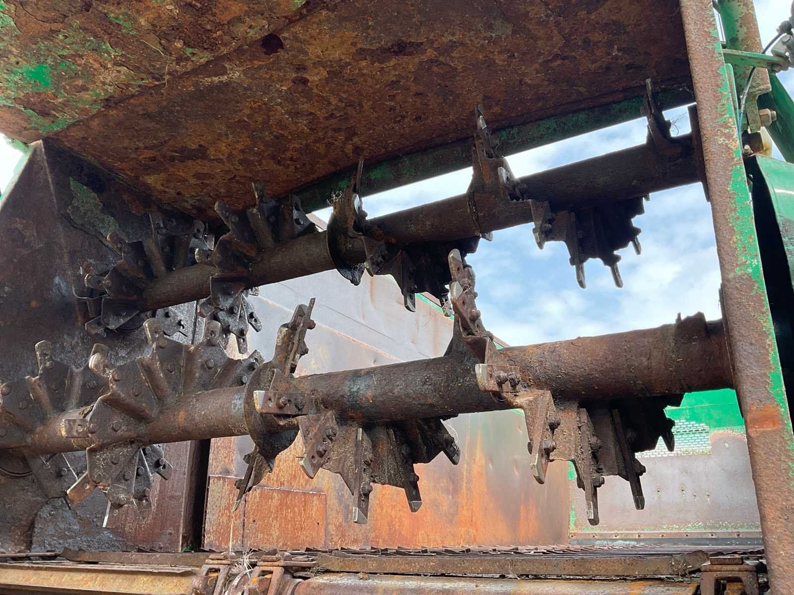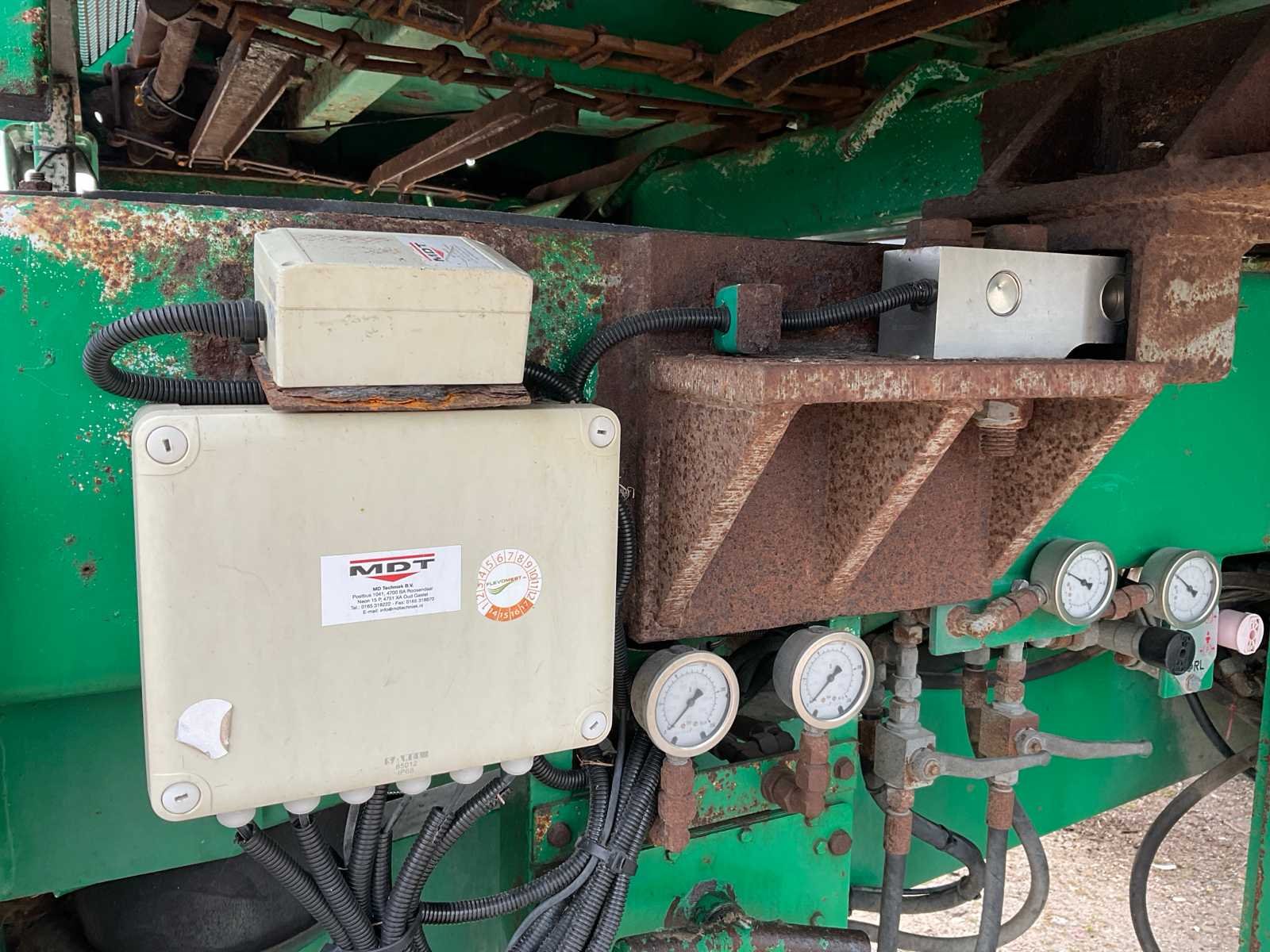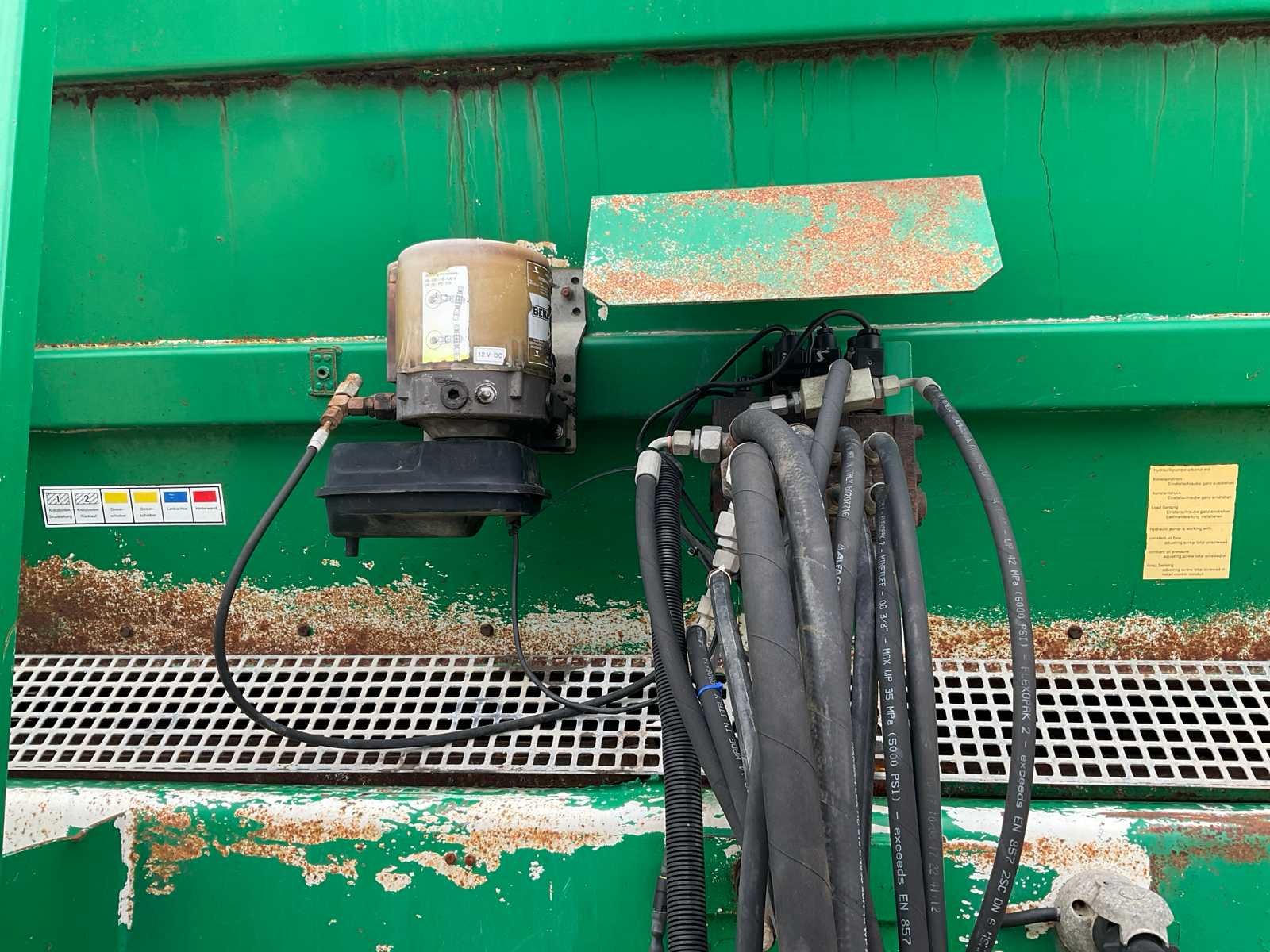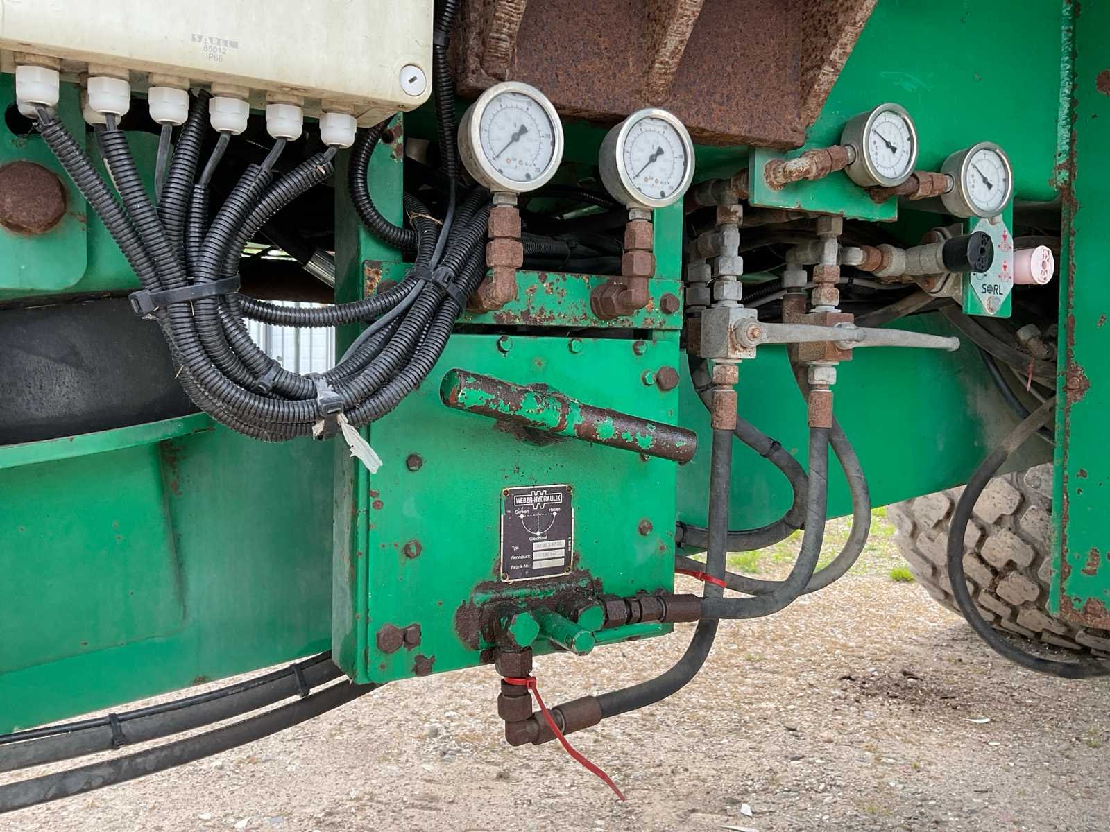 Voorzien van: electro-hydraulische bediening (load-sensing), MDT geikt weegsysteem, luchtdrukwisselsysteem, toerentalbewaking, hydraulisch gedwongen gestuurde achteras, K80 aanspan, automatisch smeersysteem, mechanische steunpoot, luchtremmen, geveerde dissel, hydraulische vering, liftas voor, aftakas aangedreven strooischijven, hydraulische achterklep, hydraulisch doseerschuif, kunststof stootranden, trekhaak achter, bodemketting (HV100 zwaar type vervangen) (stuurcilinder links achter defect, nu vastgezet) Nee Merk: Tebbe Type: HS220 Bouwjaar: 2008 Serienummer: 24271 Bandenmaat: BKT 850/50R30.5 (Alliance rechts/voor) Totale afmeting L: 8700mm Totale afmeting Breedte: 2980mm Totale afmeting Hoogte: 3800mm