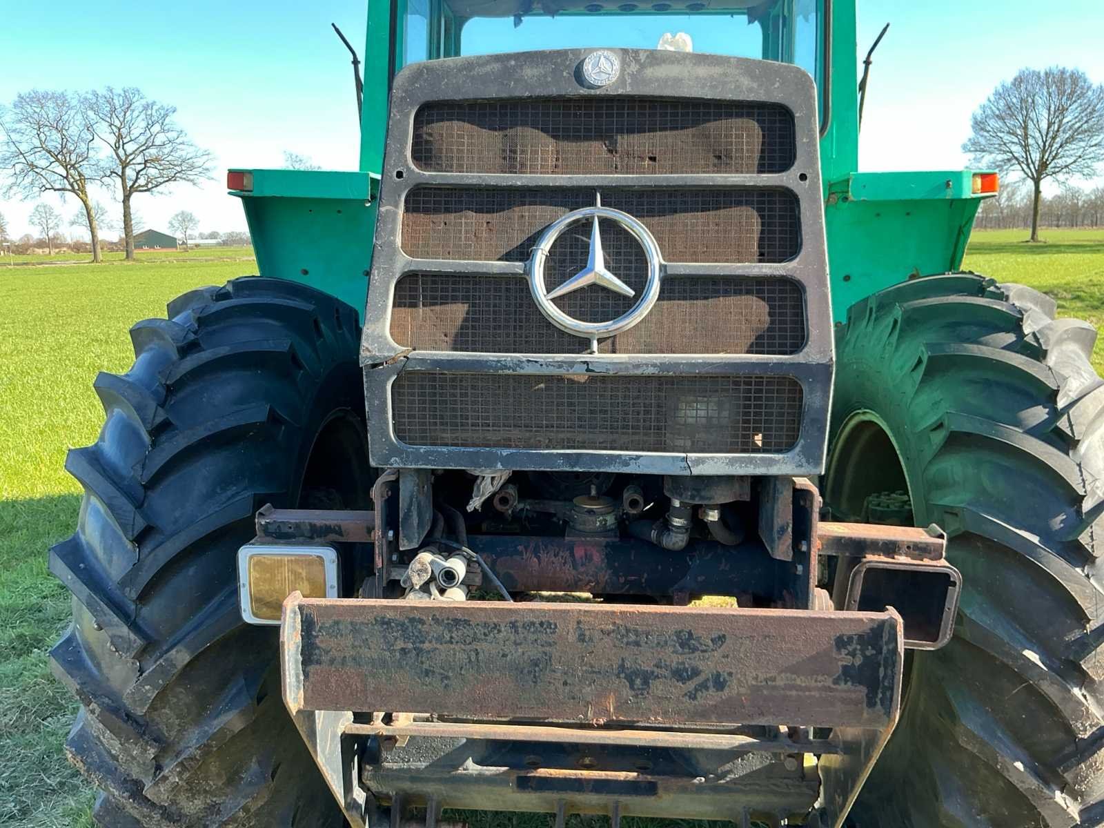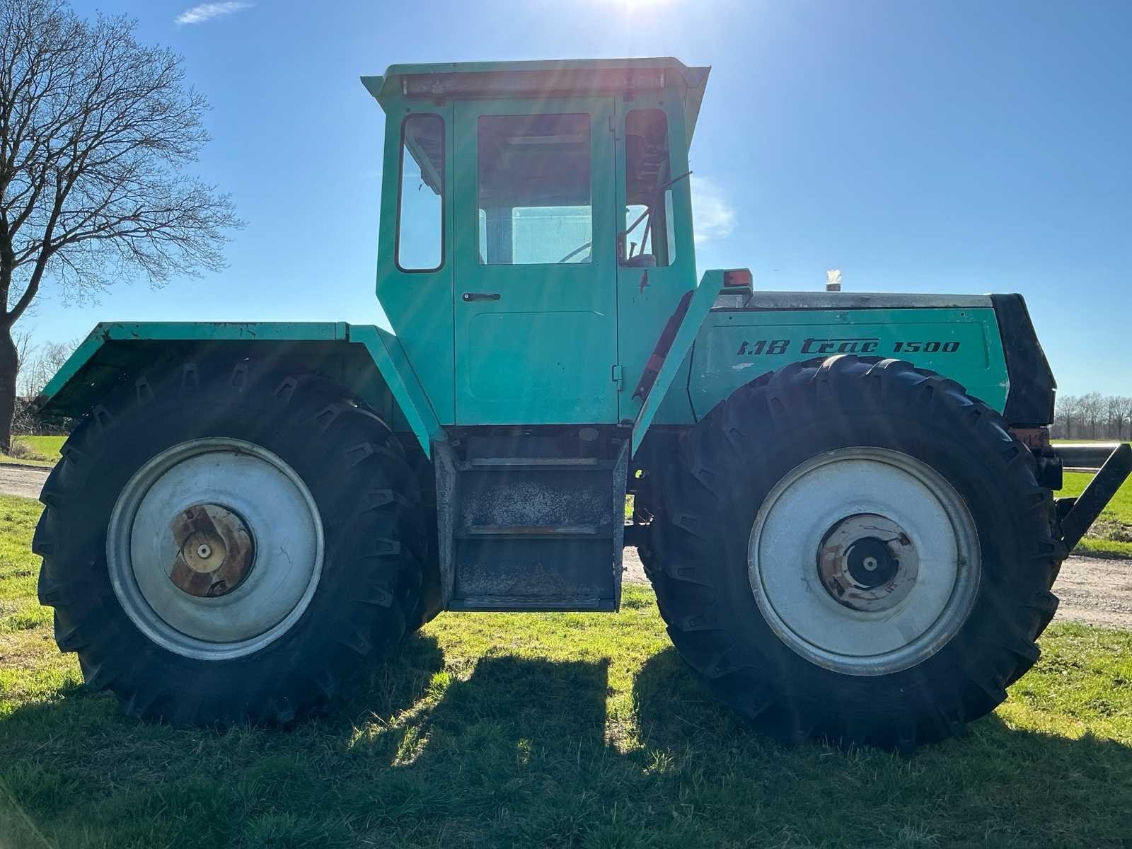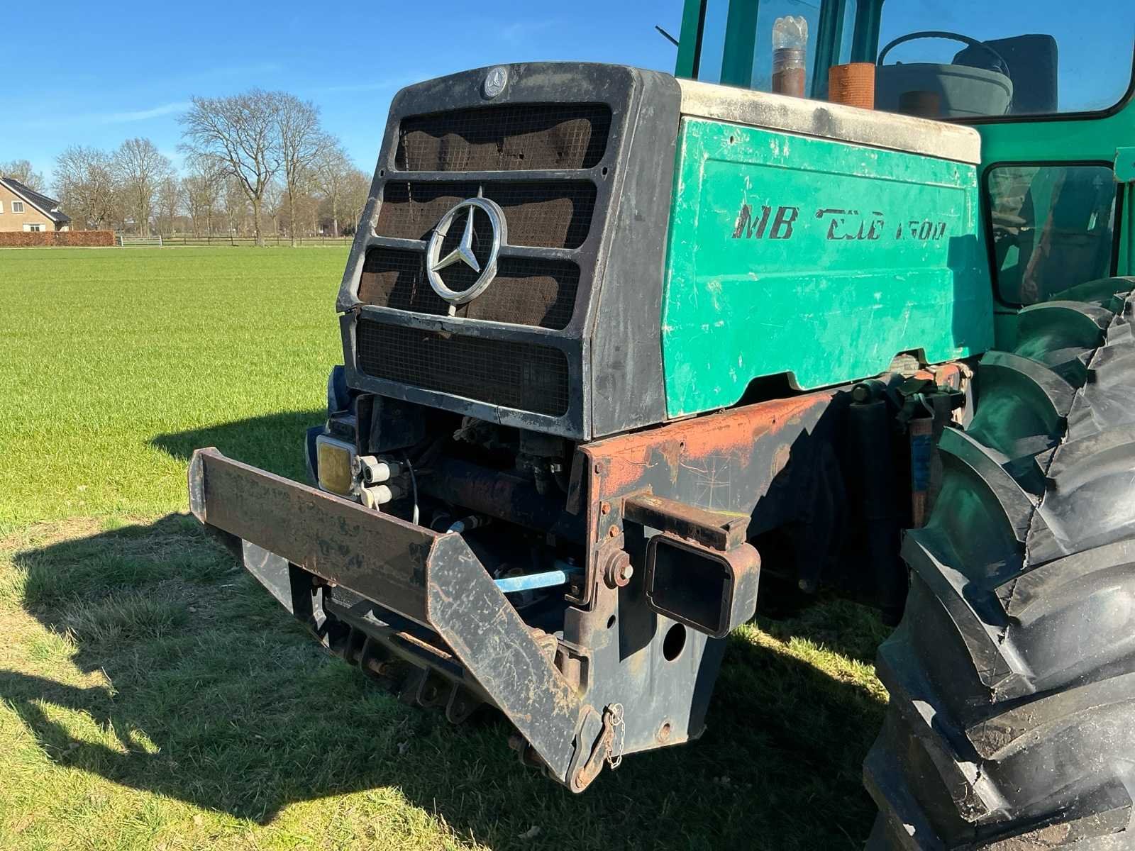 Zonder versnellingsbak, motor loopt. Voorzien van: Motor: Mercedes-Benz OM 352 A, Type: 6-cilinder lijnmotor, turbo, Cilinderinhoud: 5.675 cc, Vermogen: ca. 150 pk (110 kW), Koeling: Watergekoeld, Brandstof: Diesel, Max. koppel: ± 540 Nm, Emissienorm: Pre-emissie (mechanische inspuiting) Hydrauliekcapaciteit: ± 65 liter/min, Max. hefvermogen achter: ± 6.500 kg, Aftakas (PTO): 540 / 1000 rpm, Categorie hefinrichting: Cat. III Nee Merk: Mercedes-Benz Type: MB Trac 1500 Bouwjaar: 1981 Serienummer: 443162 00 079678 Kenteken: GEEN Motorvermogen (kW): 110kW Afgelezen urenstand: 7726 Versnellingsbaktype: Handgeschakeld Aantal hydraulische ventielen voor: 3 Aantal hydraulische ventielen achter: 3 Bandenmaat voor: 18.4-34 Bandenmaat achter: 18.4-34 Cabine: true Luchtgeveerde stoel: true Eigen gewicht: 6000kg Totale afmeting L: 5000mm Totale afmeting Breedte: 2300mm Totale afmeting Hoogte: 2900mm Chassisnummer: 443162 00 079678 Zelf rijdend exporteren: Niet mogelijk Leveringsvoorwaarden: Gratis op vrachtwagen No self drive export!: true