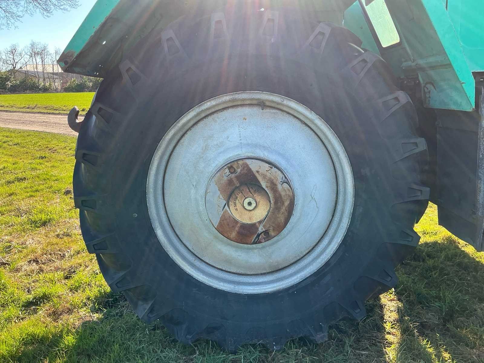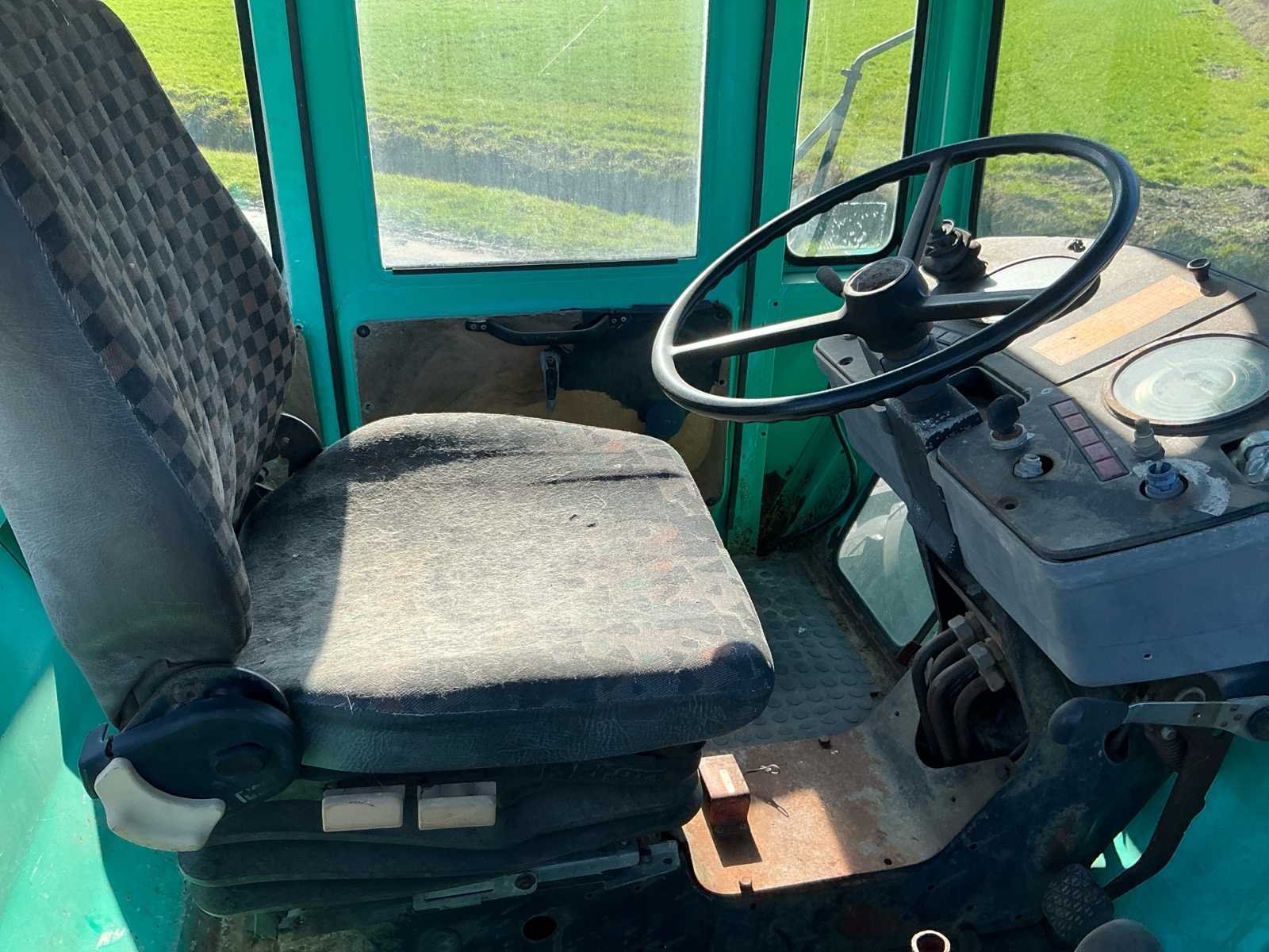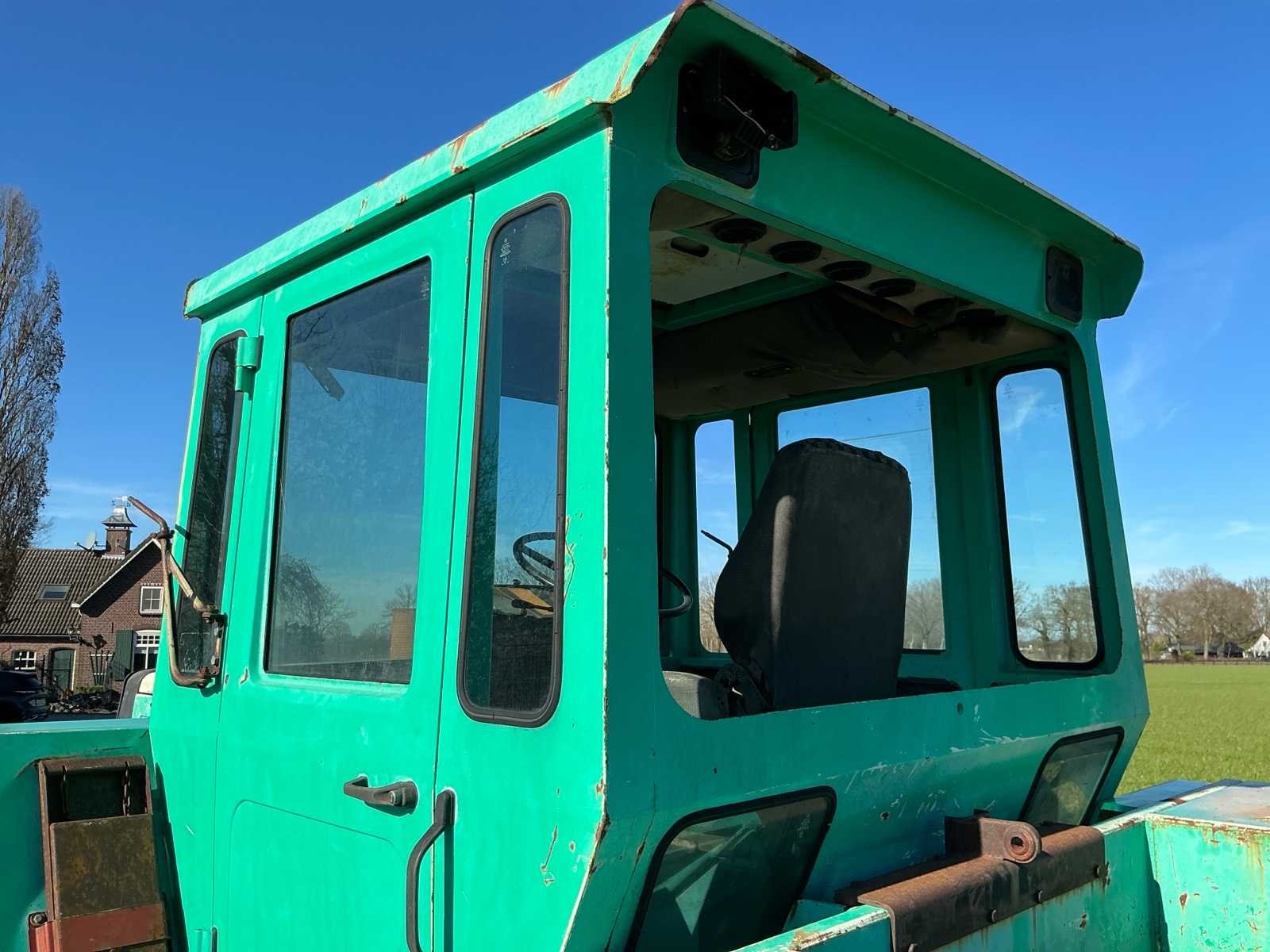 Zonder versnellingsbak, motor loopt. Voorzien van: Motor: Mercedes-Benz OM 352 A, Type: 6-cilinder lijnmotor, turbo, Cilinderinhoud: 5.675 cc, Vermogen: ca. 150 pk (110 kW), Koeling: Watergekoeld, Brandstof: Diesel, Max. koppel: ± 540 Nm, Emissienorm: Pre-emissie (mechanische inspuiting) Hydrauliekcapaciteit: ± 65 liter/min, Max. hefvermogen achter: ± 6.500 kg, Aftakas (PTO): 540 / 1000 rpm, Categorie hefinrichting: Cat. III Nee Merk: Mercedes-Benz Type: MB Trac 1500 Bouwjaar: 1981 Serienummer: 443162 00 079678 Kenteken: GEEN Motorvermogen (kW): 110kW Afgelezen urenstand: 7726 Versnellingsbaktype: Handgeschakeld Aantal hydraulische ventielen voor: 3 Aantal hydraulische ventielen achter: 3 Bandenmaat voor: 18.4-34 Bandenmaat achter: 18.4-34 Cabine: true Luchtgeveerde stoel: true Eigen gewicht: 6000kg Totale afmeting L: 5000mm Totale afmeting Breedte: 2300mm Totale afmeting Hoogte: 2900mm Chassisnummer: 443162 00 079678 Zelf rijdend exporteren: Niet mogelijk Leveringsvoorwaarden: Gratis op vrachtwagen No self drive export!: true