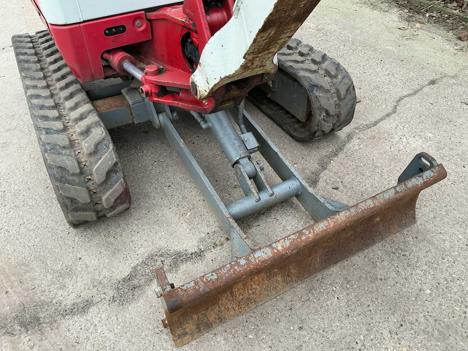 Voorzien van: hydraulische snel wissel VW05, opschoonbak 1000mm, sleuvenbak 220mm, met omkeerbare oren, hijshaak, werklampen, onderlagen te verbreden, zwaailicht, offset giek, radio, totale lengte 3.875 mm, totale hoogte (cabine / luifel) 2.360 mm, totale breedte bovenbouw (cabine / luifel) 1.055 mm, bodemvrijheid 205 mm, totale lengte rupsbanden 1.520 mm, totale breedte rupsbanden - rupsbanden ingetrokken 980 mm, totale breedte rupsbanden - rupsbanden uitgeschoven 1.300 mm. Nee Merk: Takeuchi Type: TB126 Bouwjaar: 2020 Serienummer: 216015387 Merk motor: Yamar Motorvermogen (kW): 11.5kW Aantal cilinders: 3 Brandstof: Diesel Bedrijfsgewicht: 1900kg Inclusief graafbak: Ja Graafbak afm. b: 1000mm Rups breedte: 230mm Afgelezen urenstand: 2474 Eigen gewicht: 1900kg Totale afmeting L: 3800mm Totale afmeting Breedte: 980mm Totale afmeting Hoogte: 2400mm
