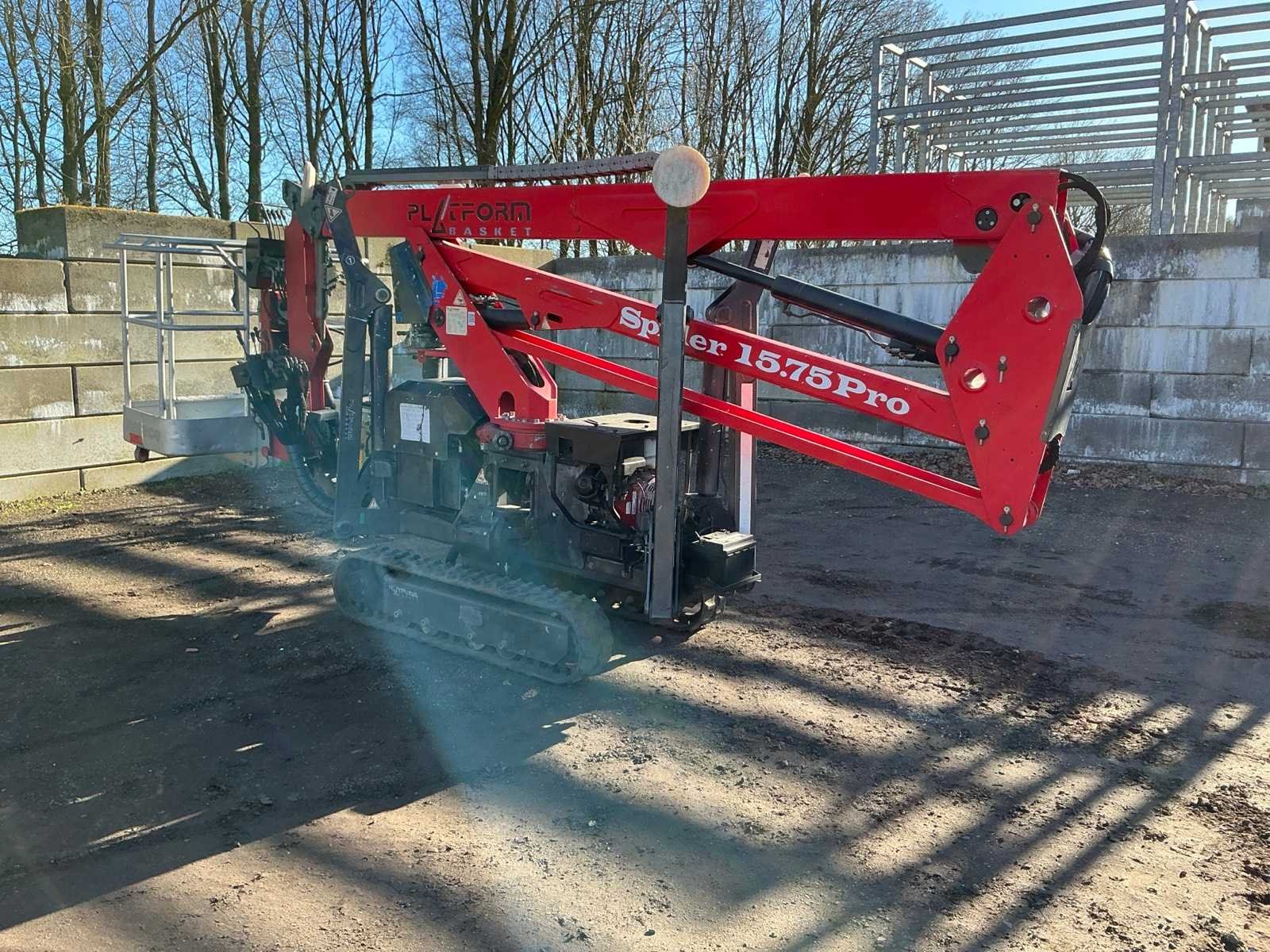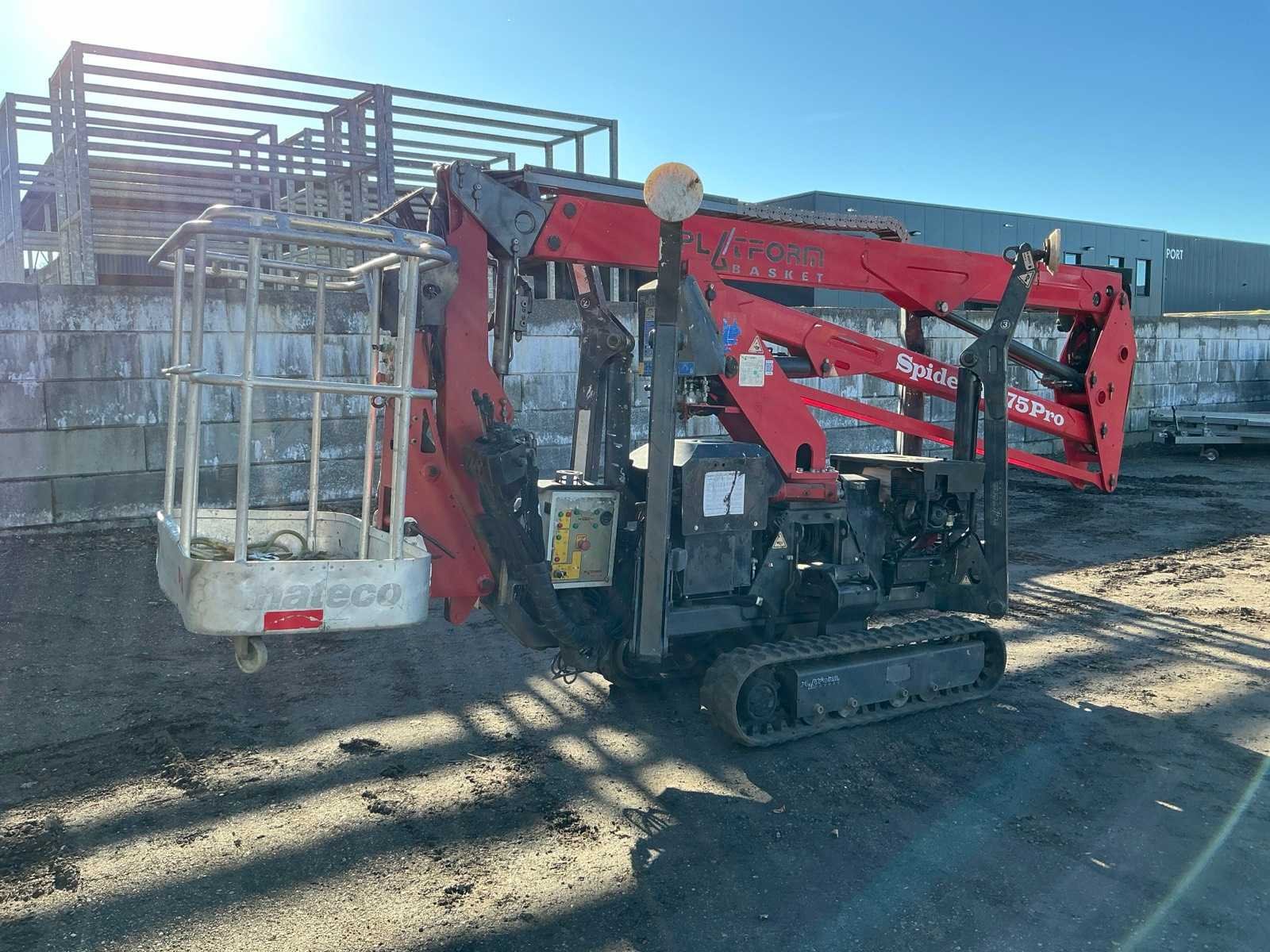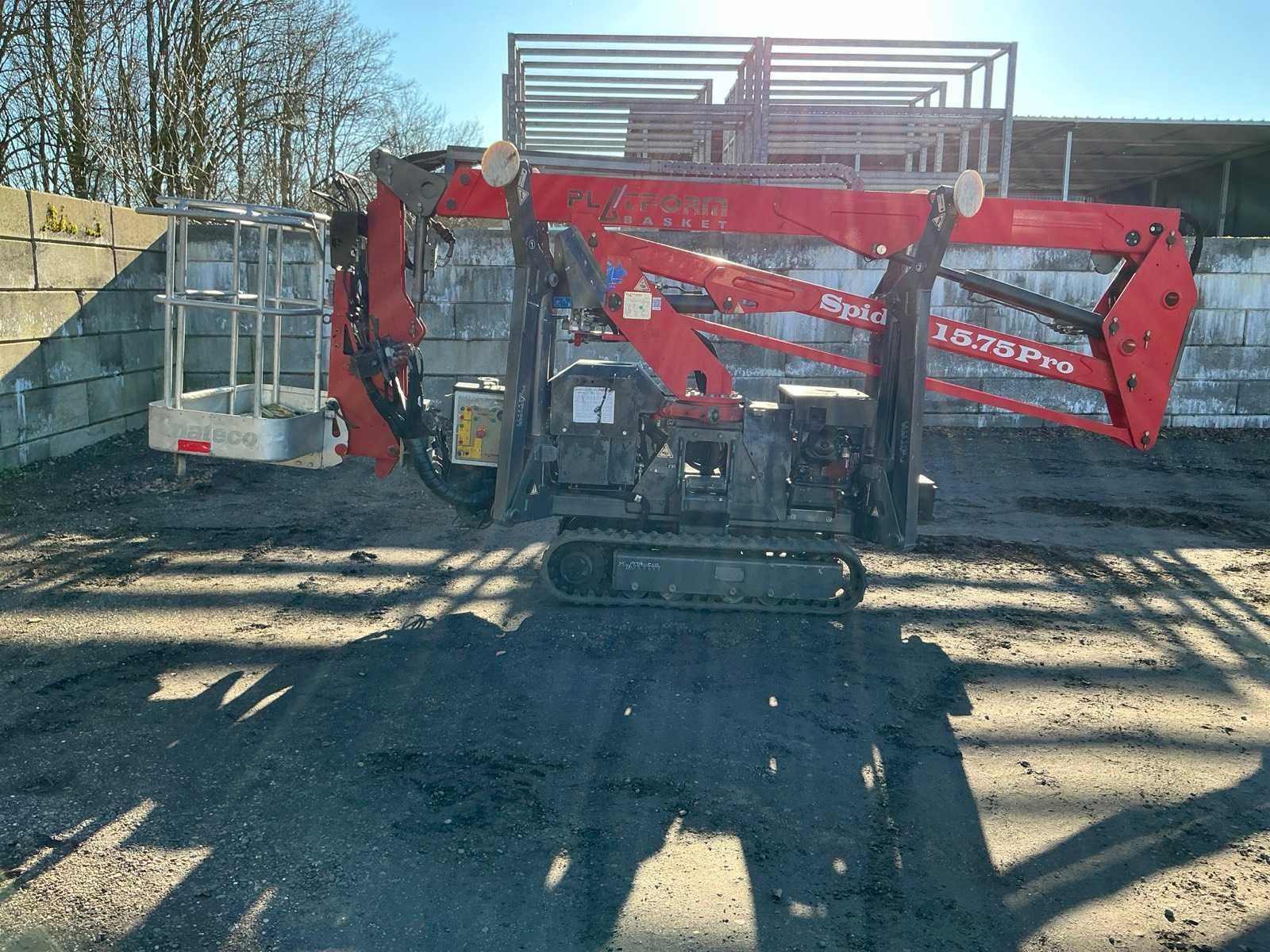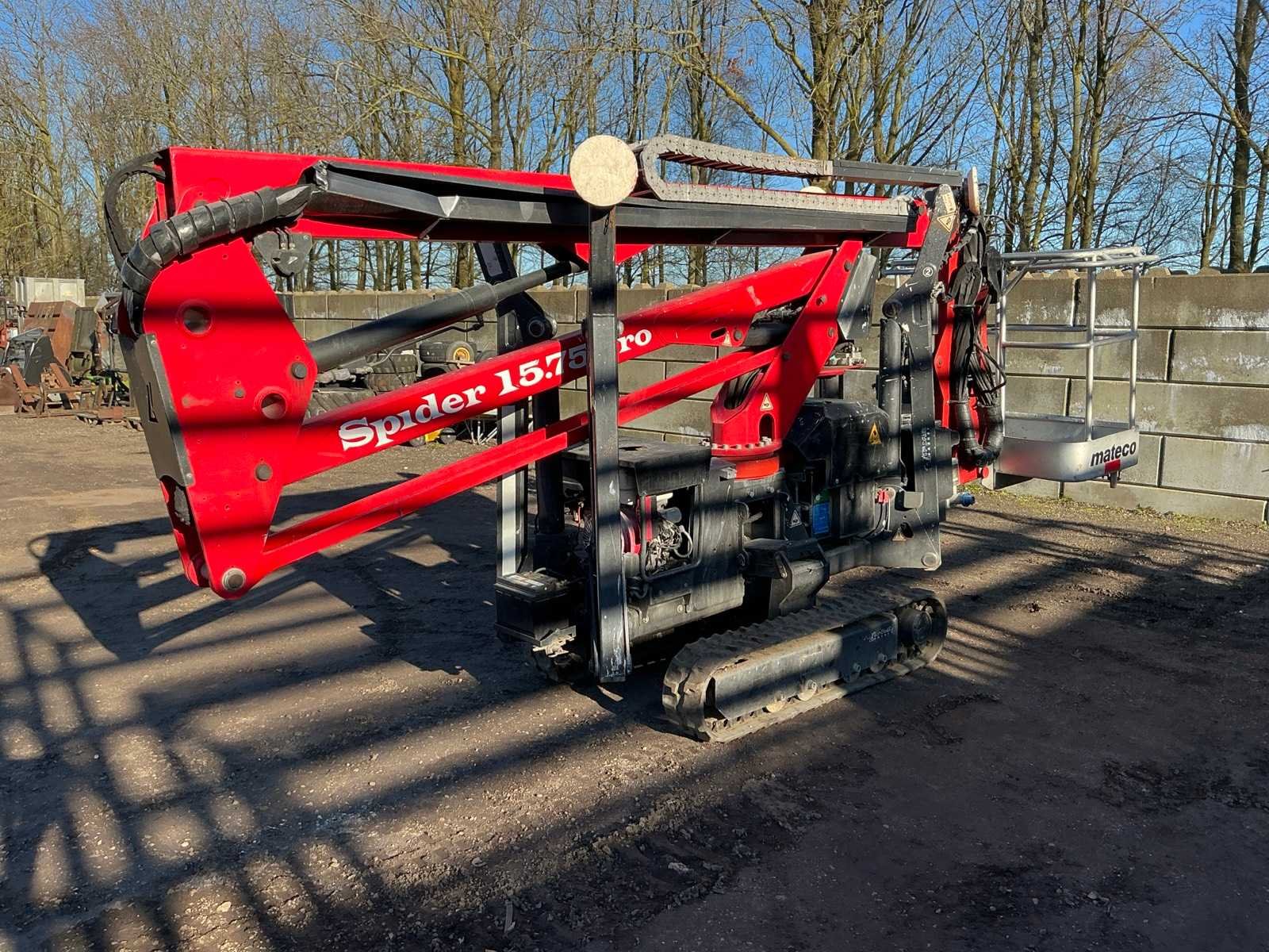 Voorzien van: steunpoten, roterende opbouw, afneembare werkbak, 230V stekker, max hefhoogte 15000mm, max hefvermogen 200kg Nee Merk: Spider Type: 15.75 Pro Bouwjaar: 2014 Serienummer: PB8943 Motorvermogen (kW): 2.2kW Knikarm hoogwerker: true Werkhoogte: 15000mm Horizontale rijkwijdte: 8500mm Plateau afm. l: 750mm Plateau afm. b: 1200mm Platform capaciteit: 200kg Afgelezen urenstand: 2599 Eigen gewicht: 1950kg Totale afmeting L: 4950mm Totale afmeting Breedte: 1200mm Totale afmeting Hoogte: 2200mm