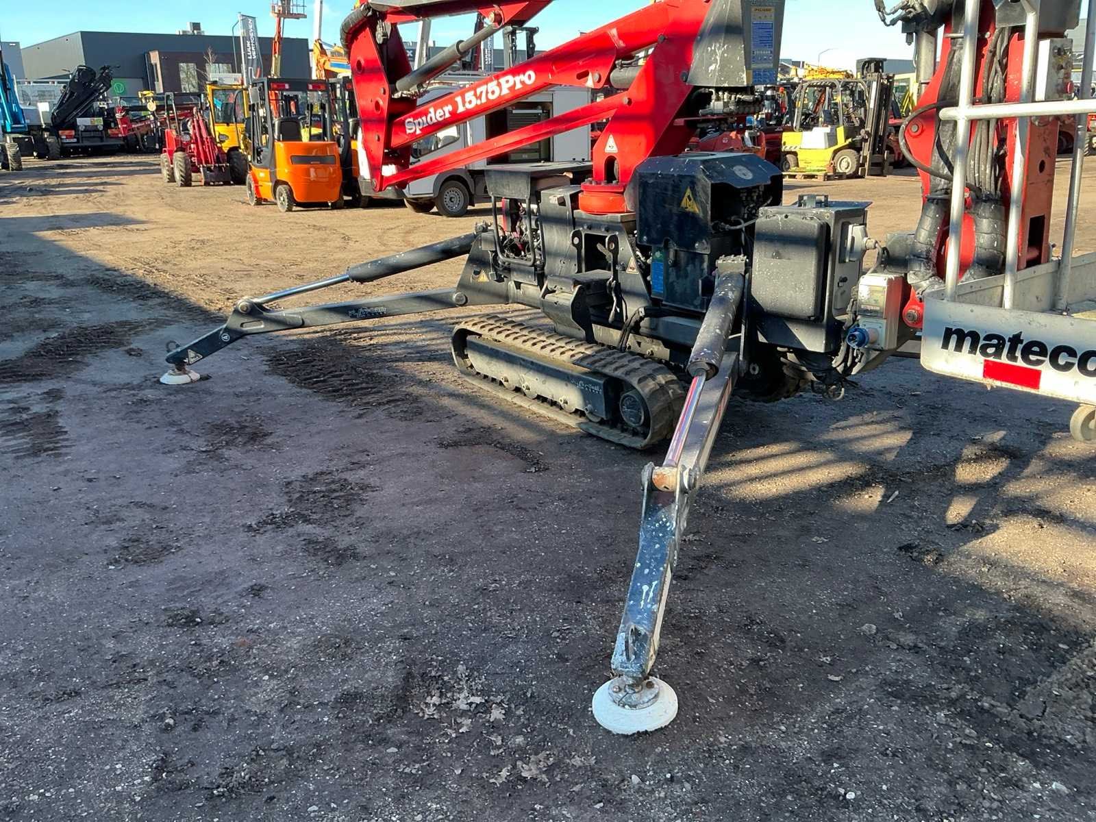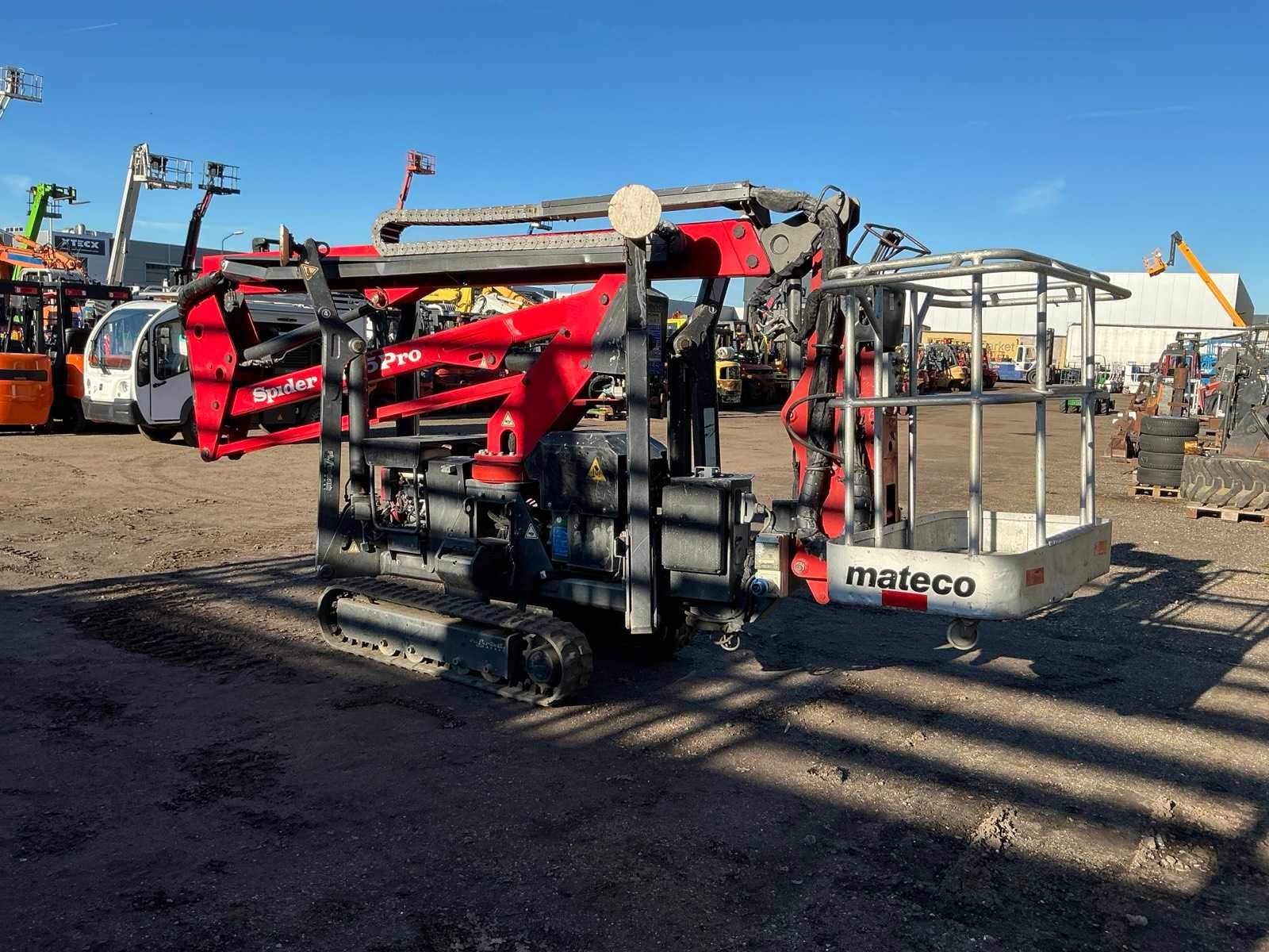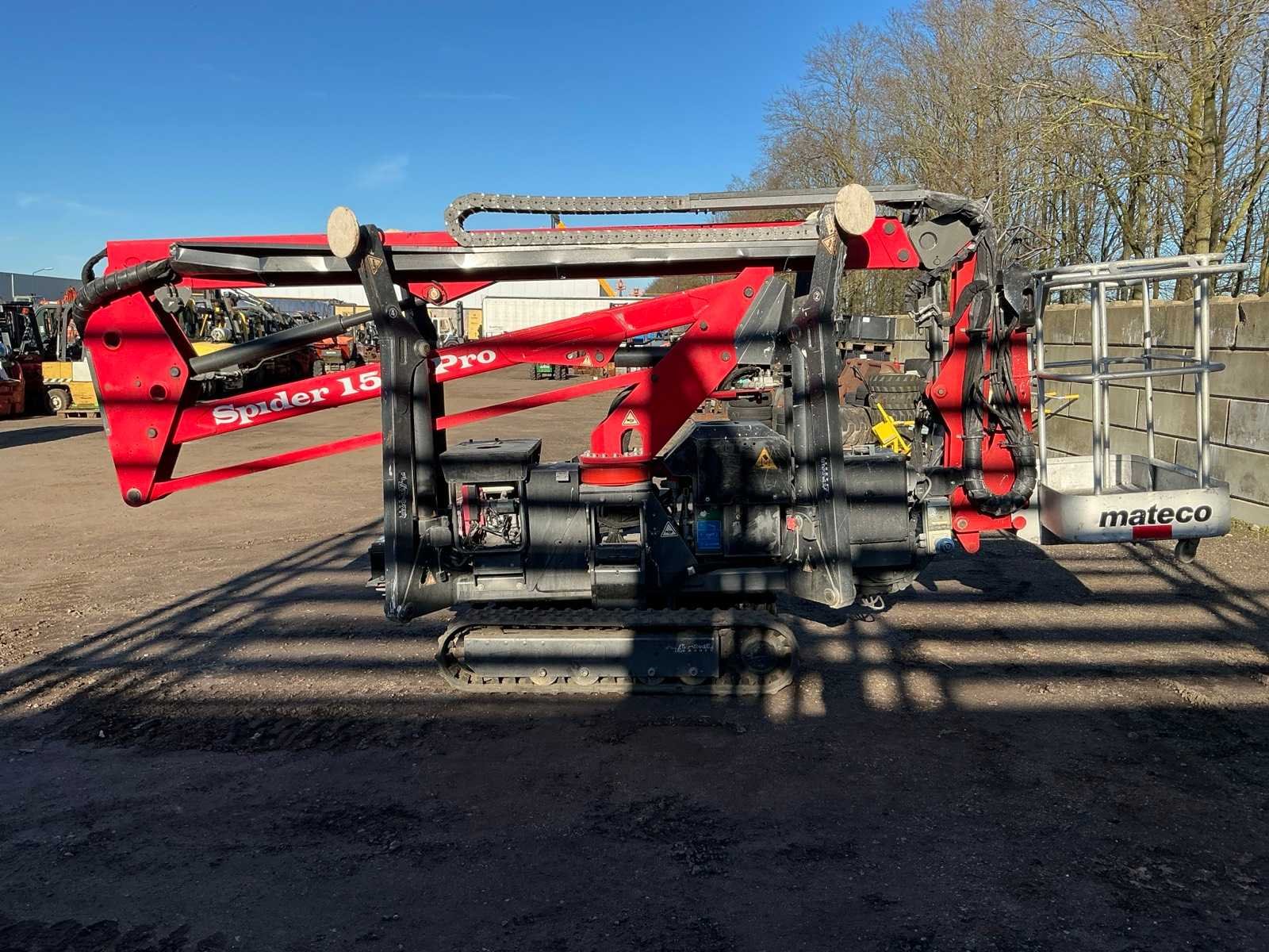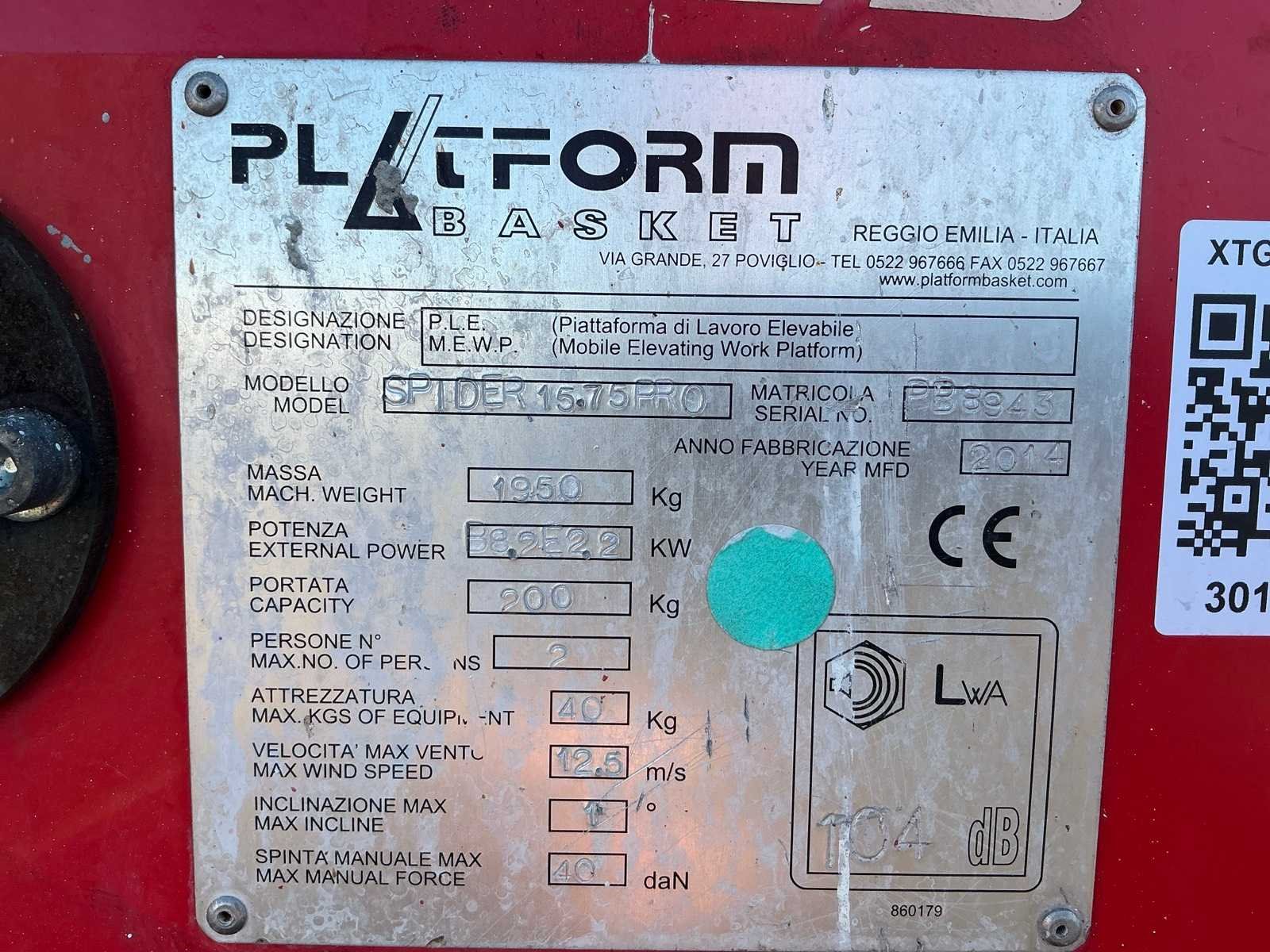 Voorzien van: steunpoten, roterende opbouw, afneembare werkbak, 230V stekker, max hefhoogte 15000mm, max hefvermogen 200kg Nee Merk: Spider Type: 15.75 Pro Bouwjaar: 2014 Serienummer: PB8943 Motorvermogen (kW): 2.2kW Knikarm hoogwerker: true Werkhoogte: 15000mm Horizontale rijkwijdte: 8500mm Plateau afm. l: 750mm Plateau afm. b: 1200mm Platform capaciteit: 200kg Afgelezen urenstand: 2599 Eigen gewicht: 1950kg Totale afmeting L: 4950mm Totale afmeting Breedte: 1200mm Totale afmeting Hoogte: 2200mm