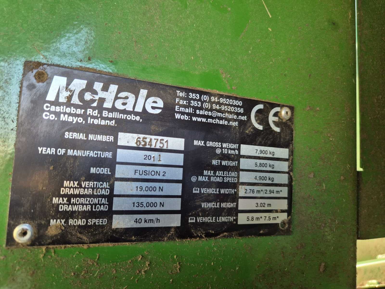 Voorzien van curvebaanloze Pick-up. Nee Merk: McHale Type: Fusion 2 Bouwjaar: 2011 Serienummer: 654751 Kenteken: LJK-03-P Afgelezen aantal balen: 33632 Werkbreedte pick-up: 2000mm Eigen gewicht: 5800kg Totale afmeting L: 5800mm Totale afmeting Breedte: 2750mm Totale afmeting Hoogte: 3020mm