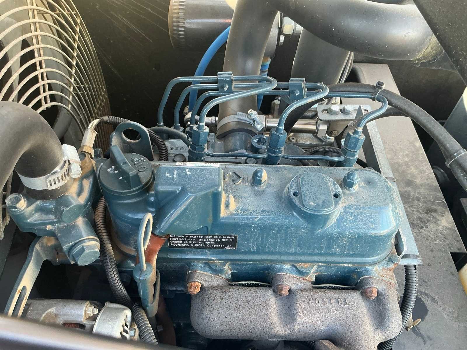 Voorzien van Kubota 3 cilinder motor D1105. Nee Merk: MAC Type: MSP2500 Bouwjaar: 2017 Serienummer: 1746001 Capaciteit.: 7bar Vermogen: 18.1kW Afgelezen urenstand: 811hr Eigen gewicht: 561kg Totale afmeting L: 1700mm Totale afmeting Breedte: 1250mm Totale afmeting Hoogte: 1100mm