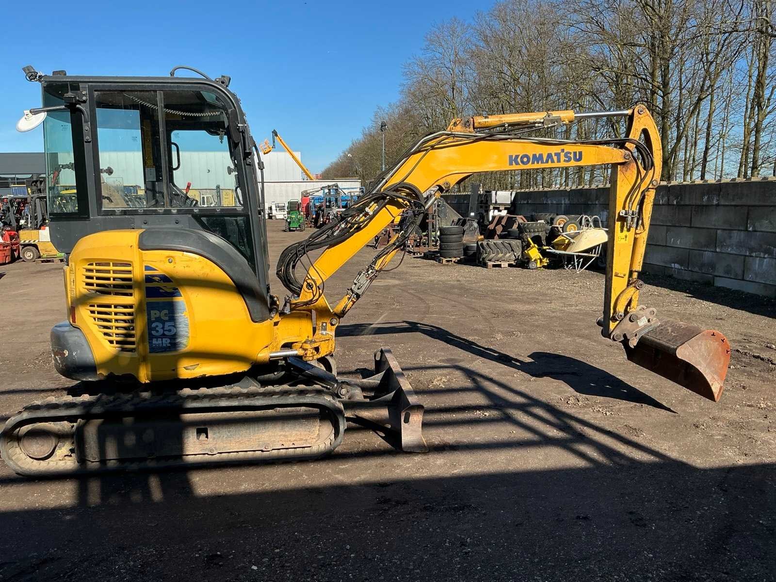 Sloten bak 1250mm, klac wissel, 3e+4e functie, led werkverlichting, blad 1740mm, 2e rijsnelheid, verwarming, auto idle, Nee Merk: Komatsu Type: PC 35 MR-3 Bouwjaar: 2016 Serienummer: F30594 Merk motor: Komatsu Motorvermogen (kW): 22kW Aantal cilinders: 3 Brandstof: Diesel Bedrijfsgewicht: 3740kg Inclusief graafbak: Yes Graafbak afm. b: 1250mm Rups breedte: 300mm Afgelezen urenstand: 2487 Eigen gewicht: 3740kg Totale afmeting L: 4900mm Totale afmeting Breedte: 1740mm Totale afmeting Hoogte: 2600mm