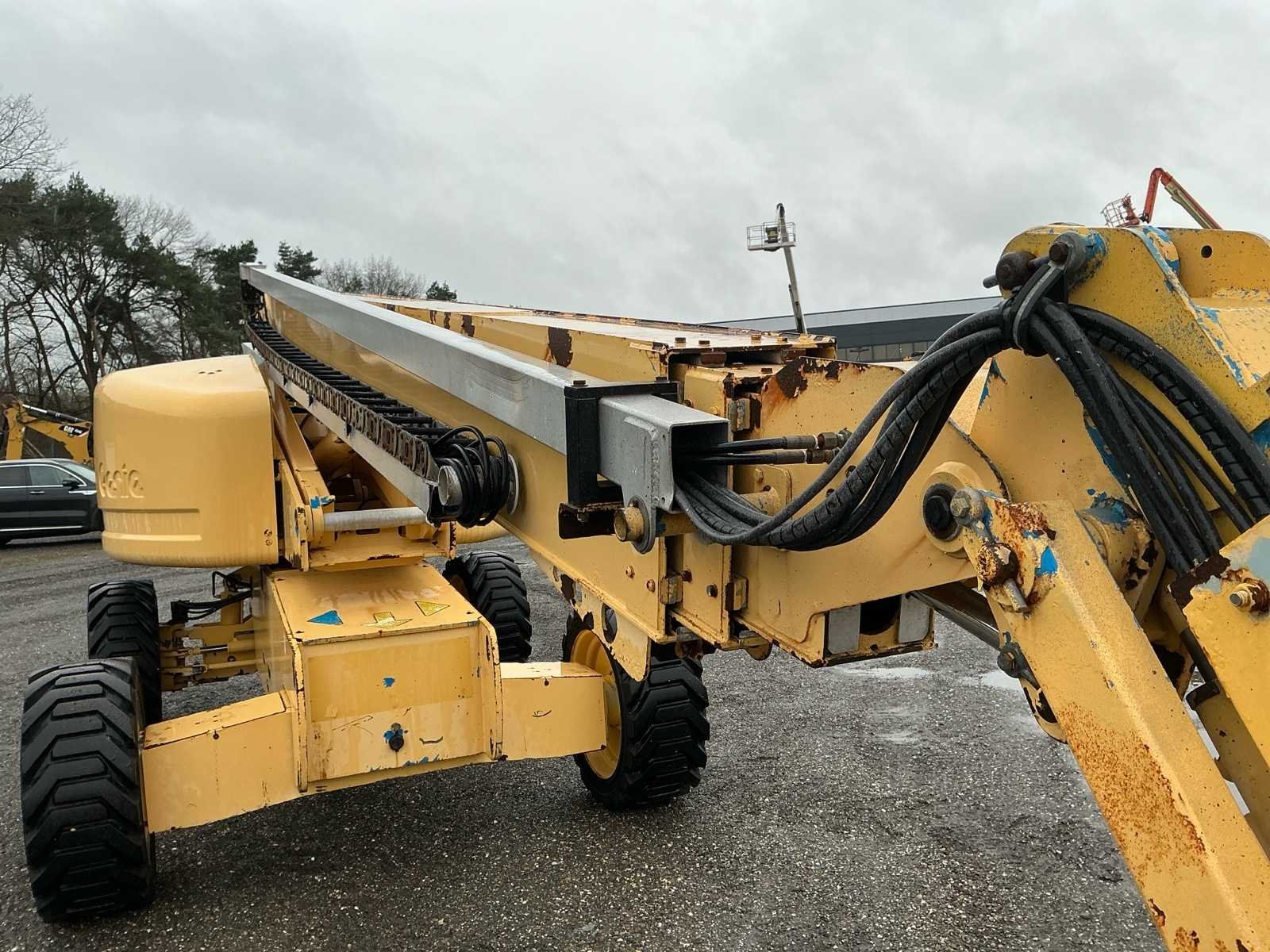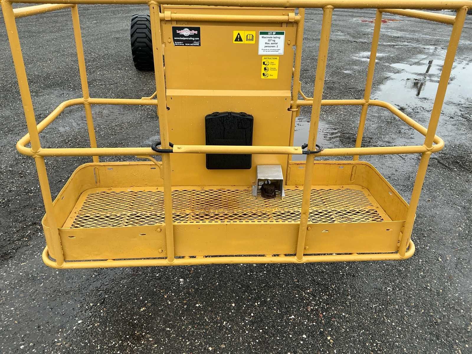 Voorzien van: werkhoogte 21,80 m, horizontaal bereik 17,10 m, capaciteit tot 227 kg, zelfnivellerend platform, hydraulische platformrotatie, volledig proportionele Hall-effect joystickbediening, kantelalarm, urenteller, claxon, continue 360°, wielmotoren met twee snelheden. No Merk: Genie Type: S-65 Bouwjaar: 2007 Serienummer: S6007-16276 Diesel: true Motorvermogen (kW): 35kW Telescoop hoogwerker: true Werkhoogte: 20300mm Horizontale rijkwijdte: 17100mm Platform capaciteit: 227kg Afgelezen urenstand: 6910 Eigen gewicht: 10100kg Totale afmeting L: 9500mm Totale afmeting Breedte: 2500mm Totale afmeting Hoogte: 2700mm