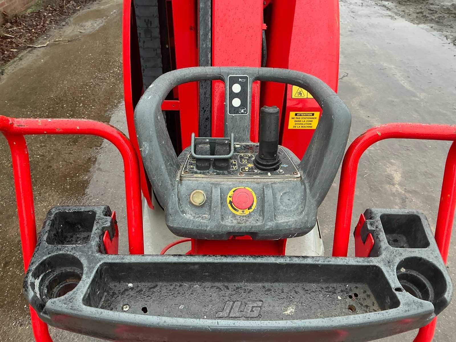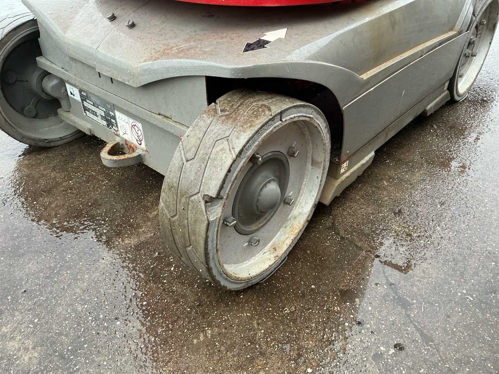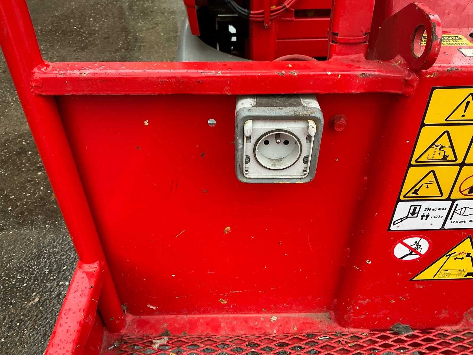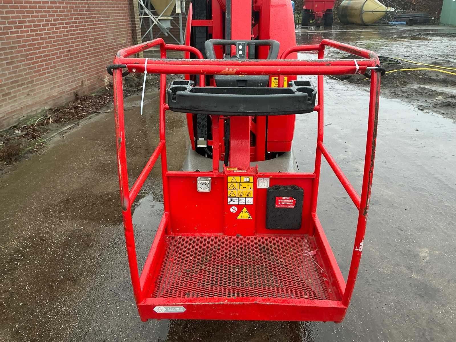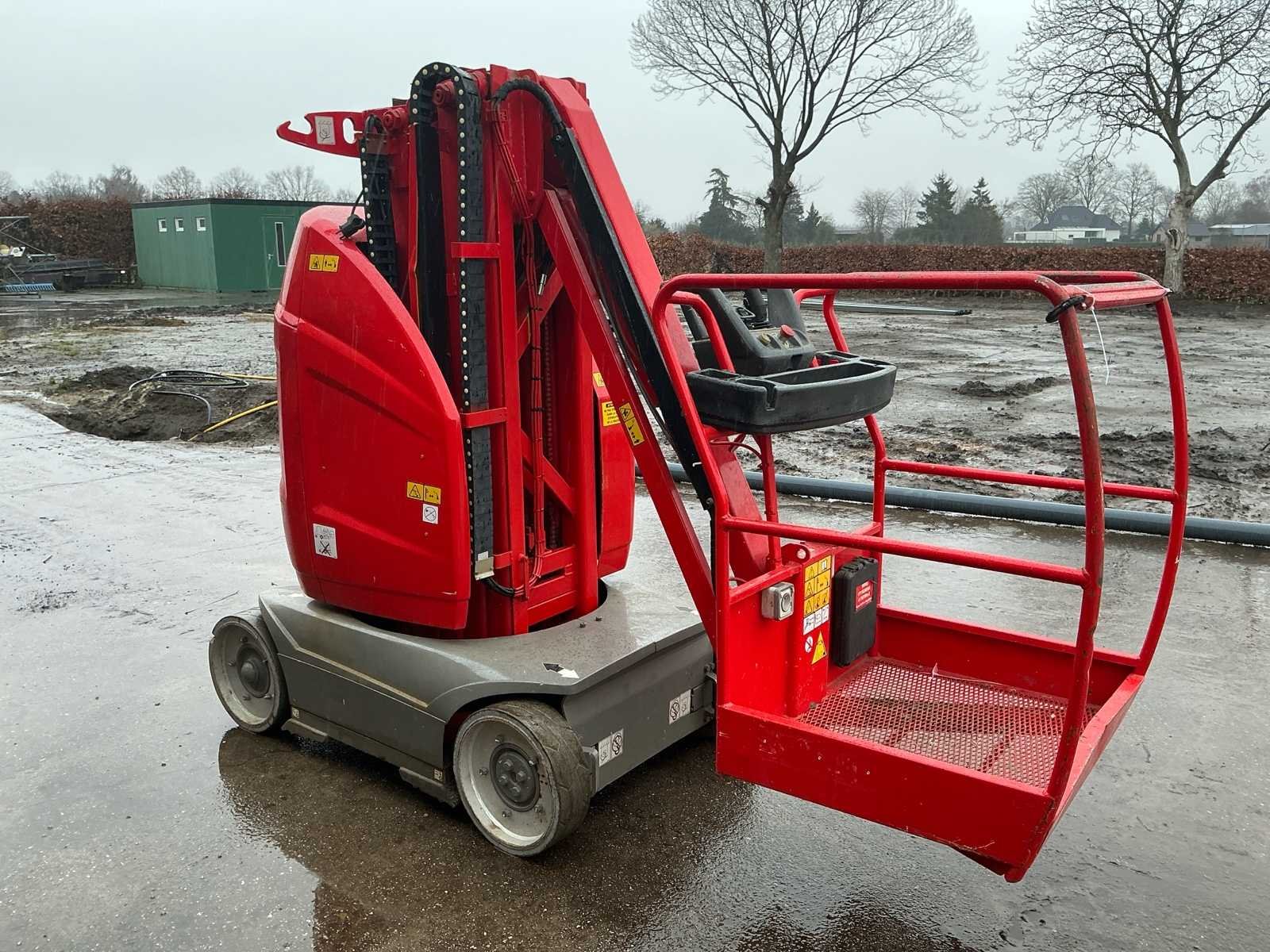 Voorzien van: • stalen platform van 0,90mx0,70 m(L x B), instap via schuifstang aan de achterzijde, proportionele aandrijving en zwenkjoystickbediening met geïntegreerde duimstuurschakelaar, mini-joysticks voor proportionele hef- en daalfuncties van mast en giek, 1,60 m scharnierende giek, lastdetectiesysteem, AC-stroomkabel naar platform, directe elektrische aandrijving op twee wielen, borstelloze AC-aandrijfmotoren, automatische energiebesparing bij inactiviteit, uitschakeling bij lage acculading, zware stalen rolmast met 345º rotatie, kettingspelingdetectiesysteem, alarm en indicatielampje voor kantelen tot 2,5 graden, frame van 0,99 m breed, hijs-/sjorogen • Keuzeschakelaar voor grondbediening met sleutelvergrendeling, batterijontladingsindicator, urenteller, handmatig daalsysteem, banden (massief, non-marking) 406 x 125 mm, werkhoogte 10,10 m, werkbereik 3,38m, overbruggingshoogte 6,51m, zwenkhoek (niet continu) 345°, platformcapaciteit 1200 kg, giek - totale lengte 1,60 m, giek - articulatiebereik 126° (+65°/ -61°), platformafmetingen standaard platform (L x B) 0,70 x 0,90 m, totale breedte 0,99 m, achterzwenkhoek 12 cm, ingeklapte hoogte 1,99m, totale lengte 2,82m. Nee Merk: JLG Type: Toucan 10E Bouwjaar: 2011 Serienummer: A3000090871 Elektrisch: true Masthoogwerker: true Werkhoogte: 10100mm Plateau afm. l: 900mm Plateau afm. b: 700mm Accu lader: true Afgelezen urenstand: 1050 Eigen gewicht: 2990kg Totale afmeting L: 2800mm Totale afmeting Breedte: 1000mm Totale afmeting Hoogte: 2000mm