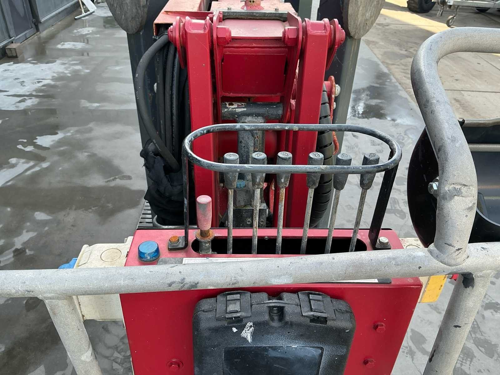 Breedte 800mm Benzine en electro motor Rupsen 18cm Electro 123 uur No Merk: Hinowa Type: Goldlift 1780 Bouwjaar: 2011 Serienummer: 124G7IPDX11 Werkhoogte: 17000mm Horizontale rijkwijdte: 8000mm Platform capaciteit: 200kg Afgelezen urenstand: 573 Eigen gewicht: 2100kg Totale afmeting L: 4550mm Totale afmeting Breedte: 1350mm Totale afmeting Hoogte: 2000mm