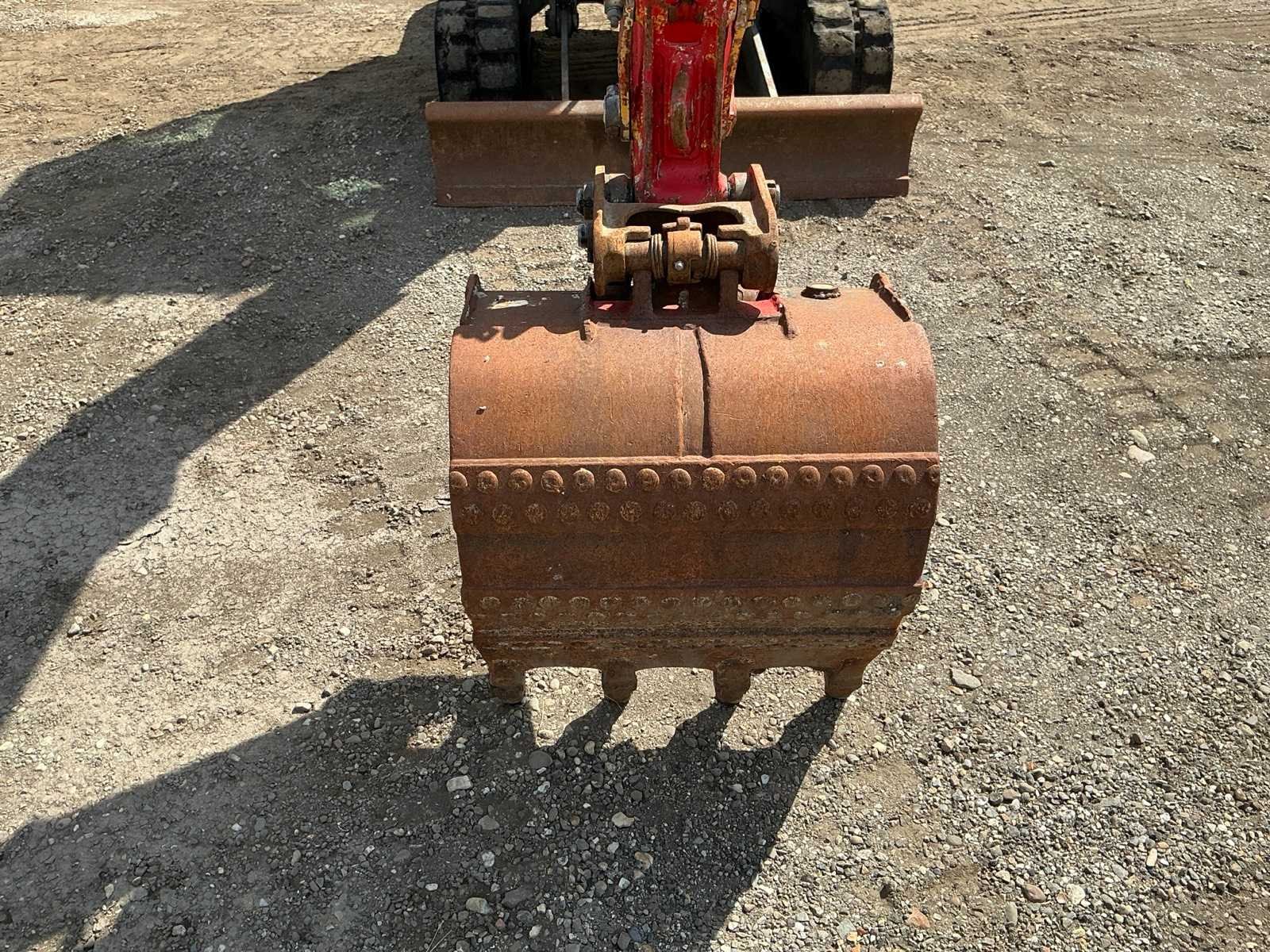 Voorzien van: tandenbak 580mm, mechanische snelwissel, dozerblad, l+R van lepelsteel aux. aansluitingen, startonderbreker, warmte werend getint glas, geïntrigeerde werkverlichting, cilinder bescherming (giek, arm, bak, blad), ROPS/FOPS-cabine, joystickbediening, armleuningen, schuifstoel, rijhendels en pedalen. Nee Merk: Yanmar Type: VIO 20-4 Bouwjaar: 2013 Serienummer: YCEVIO20JDAA07859 Merk motor: Yanmar D2503 Motorvermogen (kW): 15.2kW Aantal cilinders: 3 Brandstof: Diesel Bedrijfsgewicht: 2330kg Inclusief graafbak: Ja Graafbak afm. b: 590mm Afgelezen urenstand: 3450 Eigen gewicht: 2330kg Totale afmeting L: 3900mm Totale afmeting Breedte: 1400mm Totale afmeting Hoogte: 2500mm
