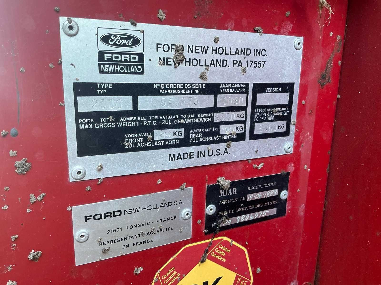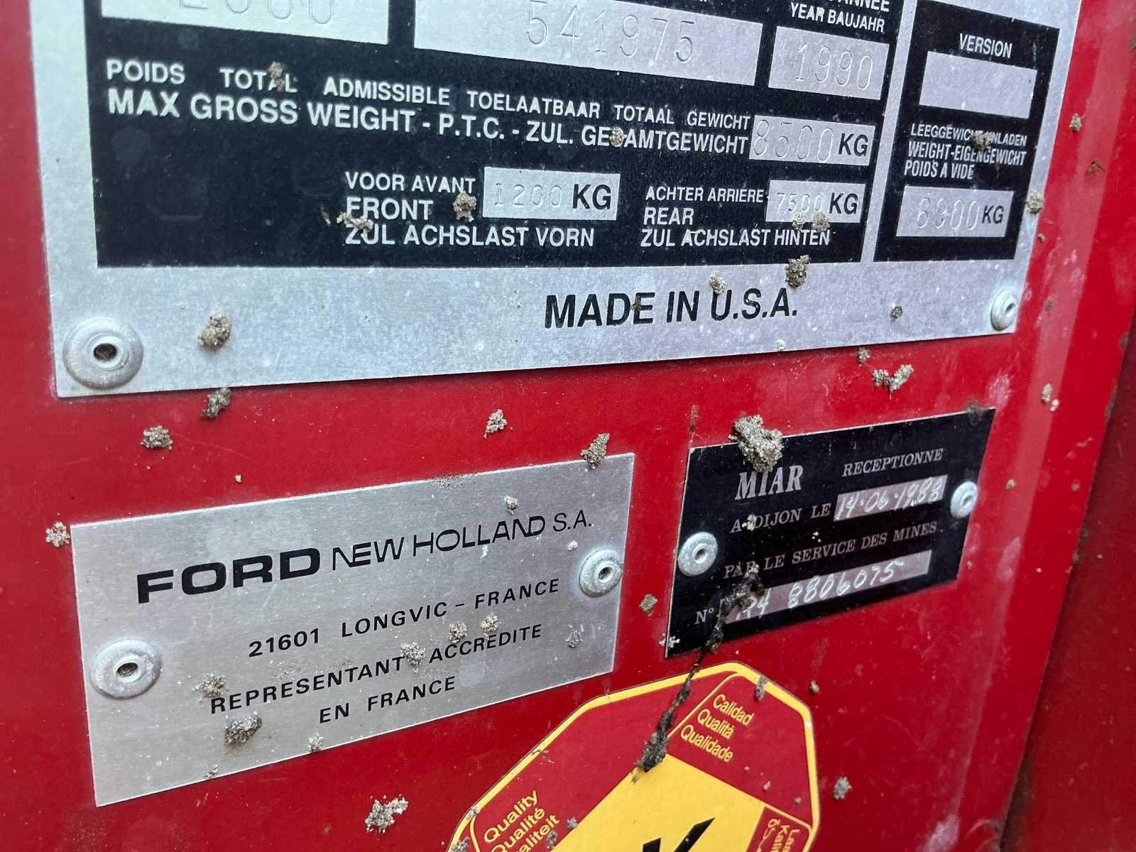 Nee Merk: New Holland Type: 2000 Bouwjaar: 1990 Serienummer: 541975 Eigen gewicht: 6900kg Totale afmeting L: 4600mm Totale afmeting Breedte: 2450mm Totale afmeting Hoogte: 2550mm