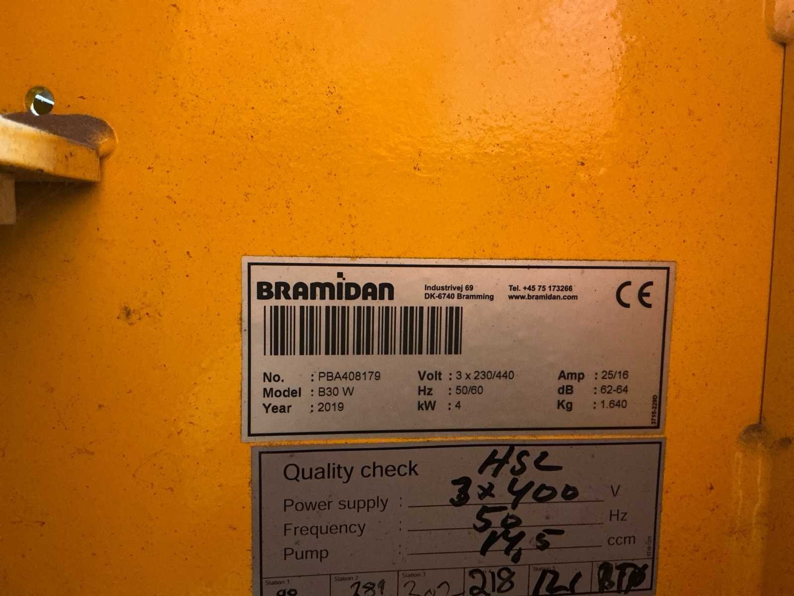Voorzien van: noodstop, Daitech motor bouwjaar 2018, NEN3140 goedgekeurd tot 03/26, 6x rolhouder, gebruiksaanwijzing Type: Verticale balenpers (B30 Wide) – extra brede vulopening (W-model) Drukkracht (press force): ± 30 ton Afvalvolume: Groot volume balenperscapaciteit Vulopening (B×H): 1525 × 560 mm Balengrootte (B×D×H): ± 1550 × 800 × 1100 mm Balengewicht: • Karton: ca. 400–500 kg • Plastic folie: ca. 400–600 kg Motorvermogen: ca. 4,0 kW Stroomvoorziening: 3×400 V – typisch 16 A (kan variëren per uitvoering) Geluidsniveau: 62–64 dB (stil voor industriële balers) Gemiddelde cyclustijd: rond 43 sec. Machine-afmetingen (B×D×H): ca. 2080 × 1270 × 3350 mm Machinegewicht: ca. 1800 kg Aantal knopen/strengen: 6 (bindmateriaalopties: touw of staaldraad) Baaluitwerping: Automatisch met twee-handenveiligheidssysteem Indicator voor volle kamer: Ja (vol-lampje) Geschikte afvaltypen: Karton, plastic folie, papier Nee Merk: Bramidan Type: B30W Bouwjaar: 2019 Serienummer: PBA408179 Folie / kartonpers type: true Horizontaal: true Capaciteit afm. l: 1560mm Capaciteit afm. b: 660mm Machinegewicht: 1640kg Totale afmeting L: 2060mm Totale afmeting Breedte: 1110mm Totale afmeting Hoogte: 3280mm
