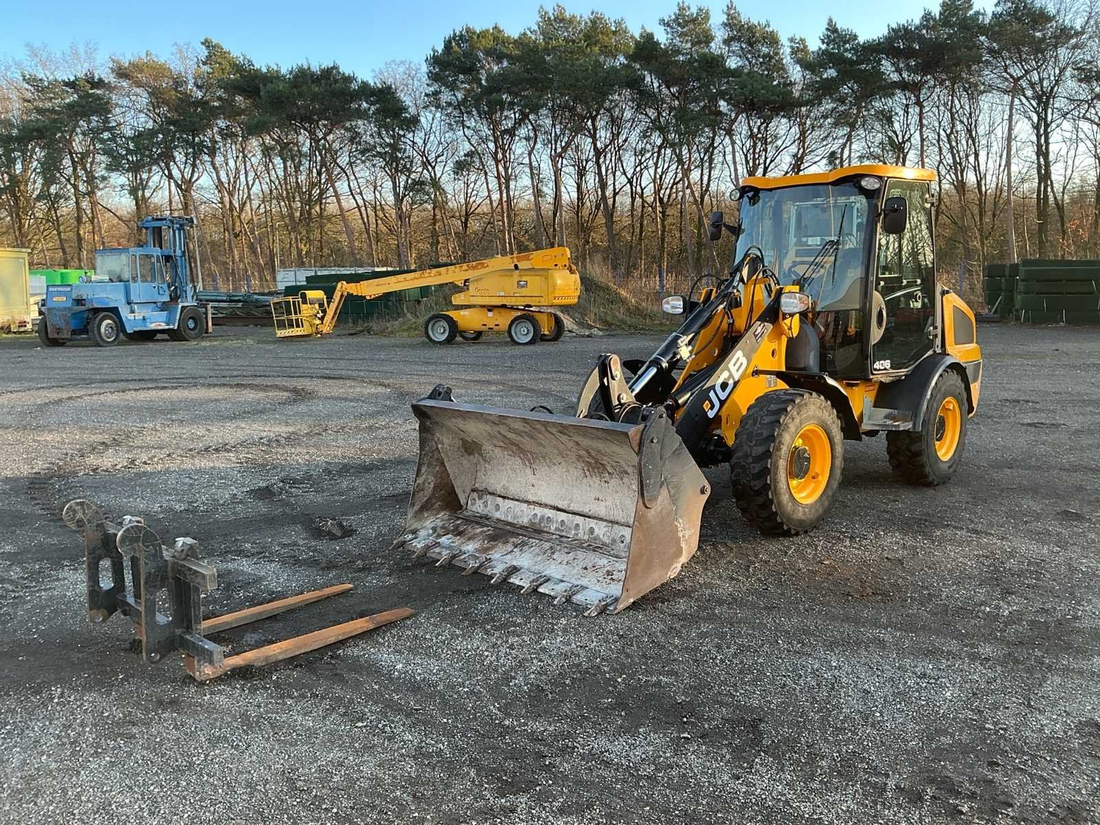 Voorzien van: JCB‑dieselmotor van Kohler – KDI 1903 TCR, hydraulische snelwissel, 3 in een bak 1850mm, pallet vorken 1050mm, handrem, joystick bediening, werklampen, verlichting, trekhaak, schuiframen, inching-pedaal, verzonken achterlichten, NextGen cabine, lcd-scherm, hydrostatische aandrijving, 2 versnellingen, tandwielpomp, spatborden voor en achter, eendelige motorkap, volledig te openen rechter raam met vergrendelingen, volledig verstelbare stoel, binnenverlichting, instelbare kantelbare stuurkolom, veiligheidsglas, LCD‑display, ruitenwisser/‑sproeier voor en achter, verwarming met 3 standen No Merk: JCB Type: 406 T4 Bouwjaar: 2017 Serienummer: 2319384 Merk motor: Kohler JCB Motorvermogen (kW): 36kW Aantal cilinders: 4 Brandstof: Diesel Bedrijfsgewicht: 5095kg Graafbak afm. b: 1850mm Bandenmaat: 335/80R18 Cabine: true Afgelezen urenstand: 2640 Eigen gewicht: 5095kg Totale afmeting L: 5200mm Totale afmeting Breedte: 1750mm Totale afmeting Hoogte: 2500mm
