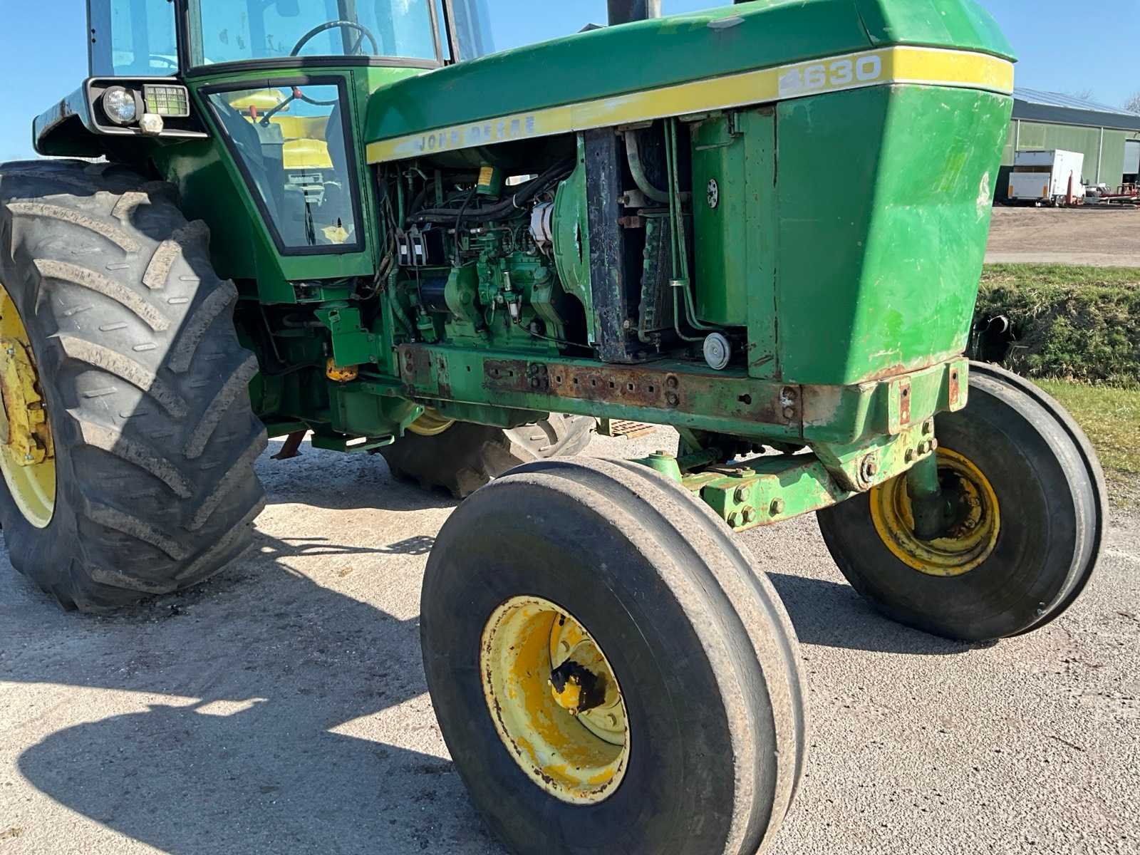 Voorzien van 6-Cil. “John Deere” dieselmotor 6,6 ltr.; 2 dubbelwerkende hydraulische ventielen; wielgewichten; Nee Merk: John deere Type: 4630 Bouwjaar: 1973 Kenteken: TRH-18-Z Bandenmaat voor: 11.00-16 Bandenmaat achter: 710/70R38 Kentekenpapieren compleet?: true Datum eerste toelating: 1973-06-30 Nationaliteit documenten: NL