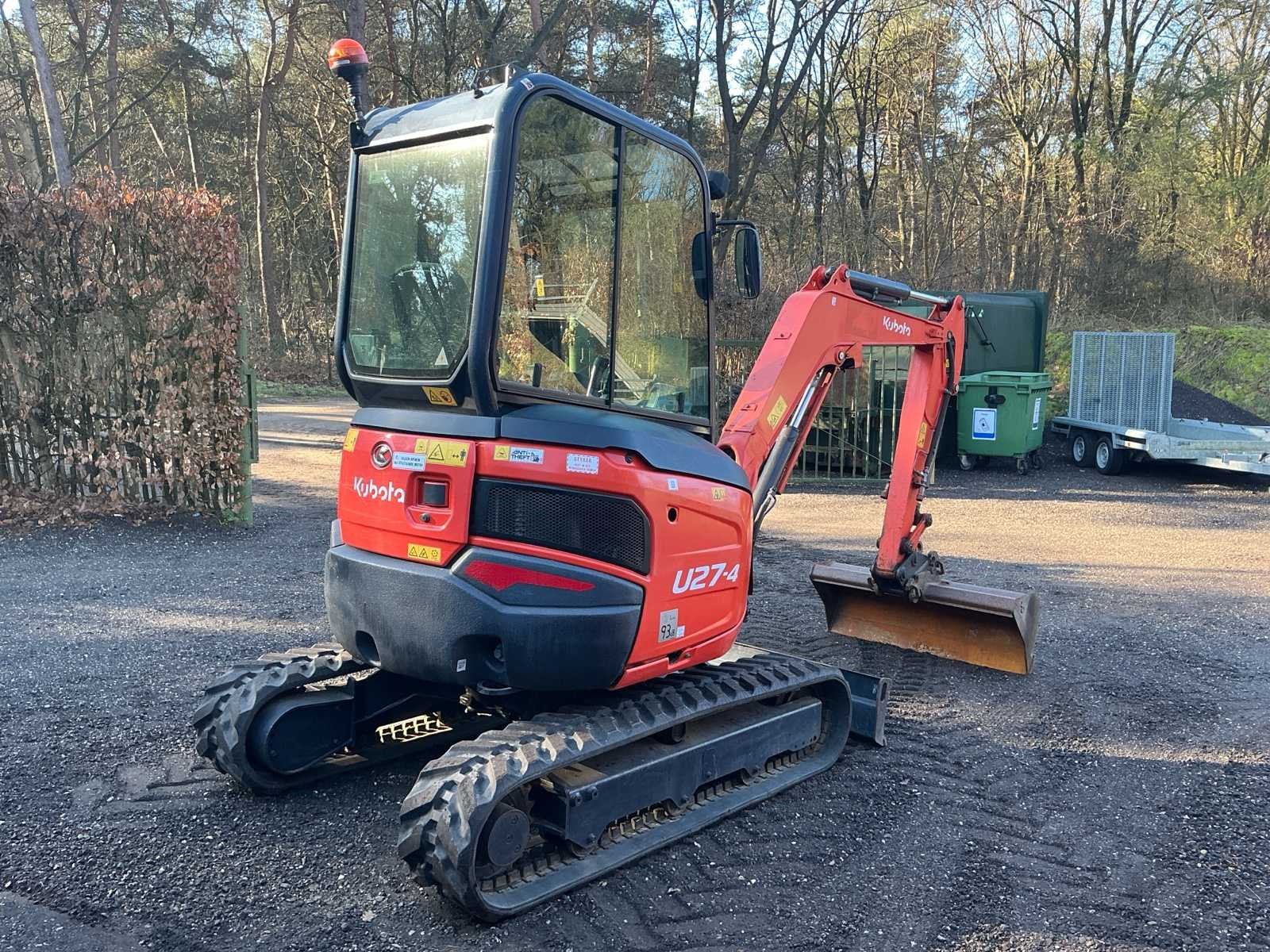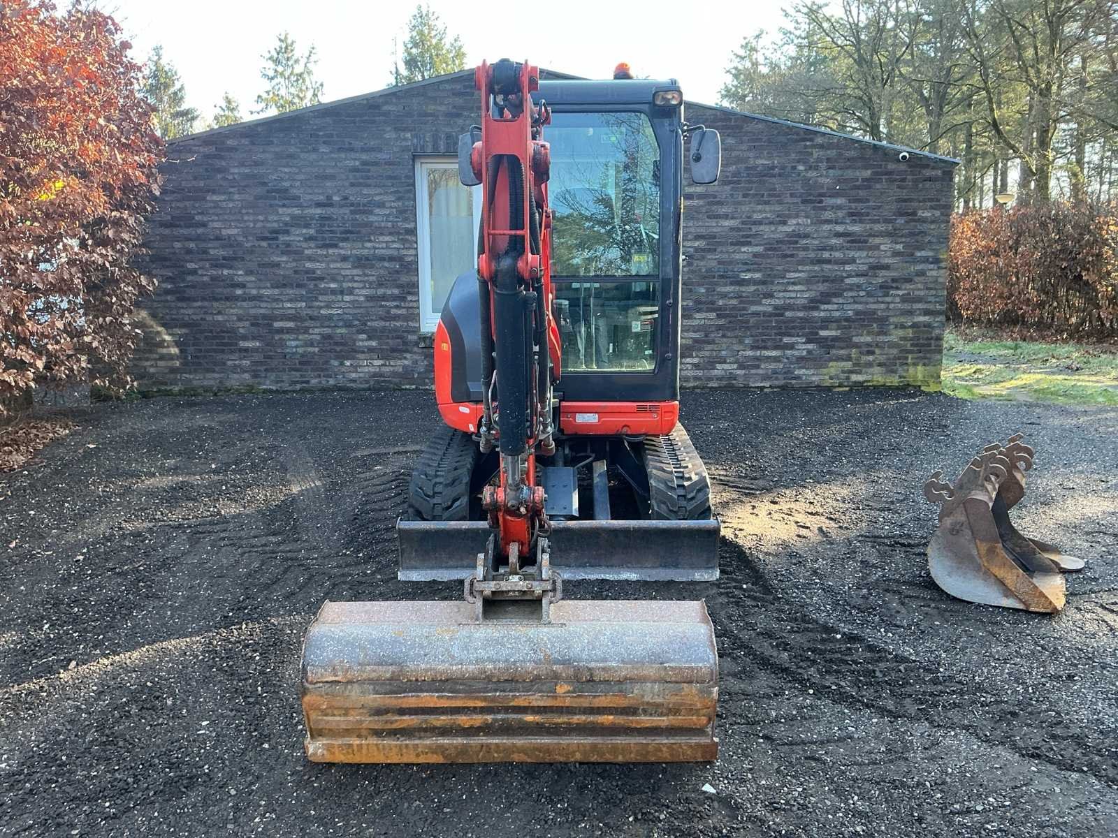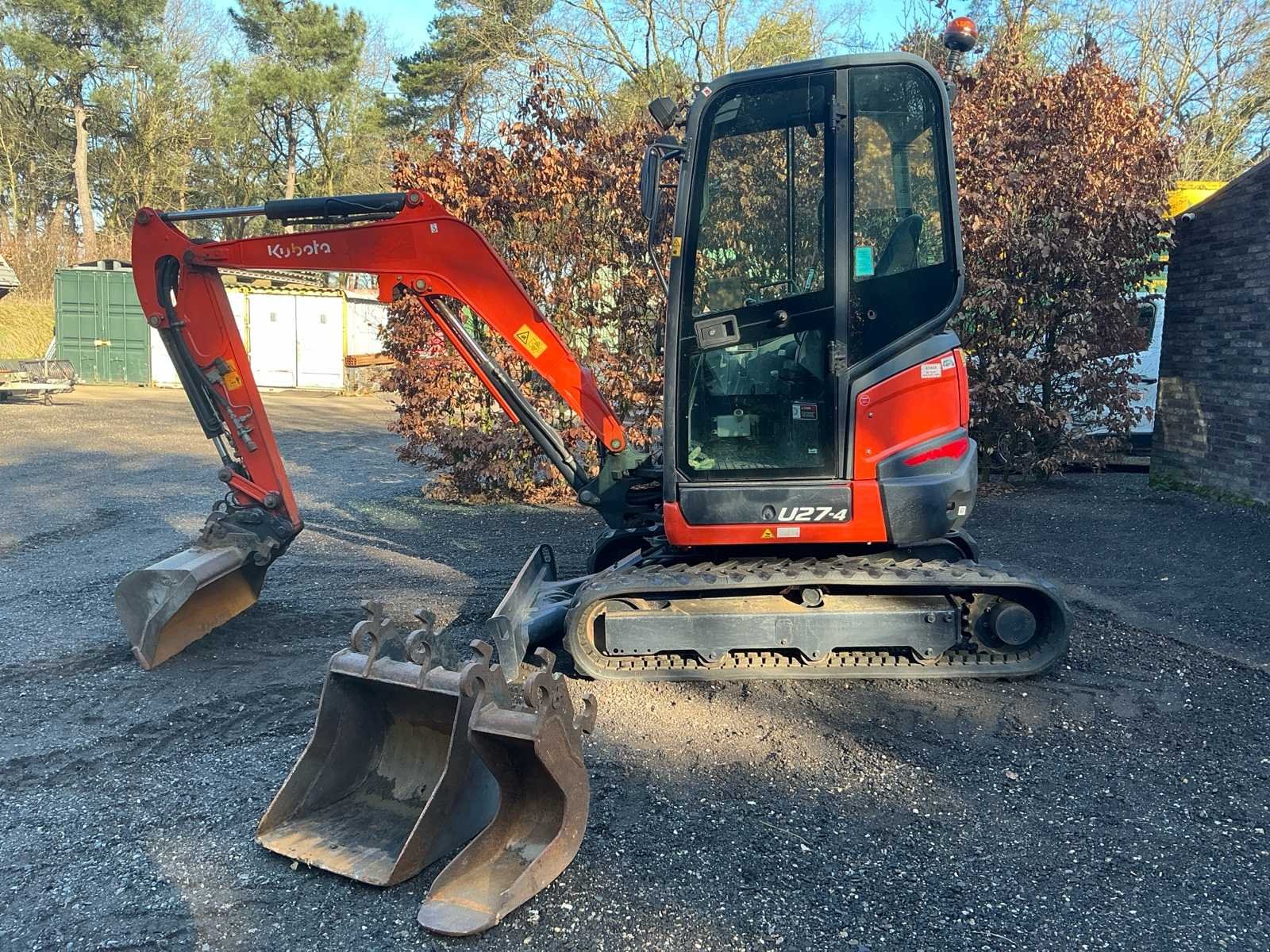 Voorzien van: rode sleutel, 3 graafbakken met omkeeroren (1x40cm, 1x100cm, 1x25cm), 500 uren beurt gehad, accu recent vervangen, rijwerk (tracks, sprockets, rollen) recent vervangen — Urenstand kan licht oplopen! Nee Merk: Kubota Type: U27-4 Bouwjaar: 2019 Serienummer: 64750 Merk motor: Kubota Motorvermogen (kW): 15kW Aantal cilinders: 3 Brandstof: Diesel Bedrijfsgewicht: 2665kg Met graafbak: true Rups breedte: 300mm Cabine: true Afgelezen urenstand: 3911 Totale afmeting L: 3800mm Totale afmeting Breedte: 1550mm Totale afmeting Hoogte: 2600mm