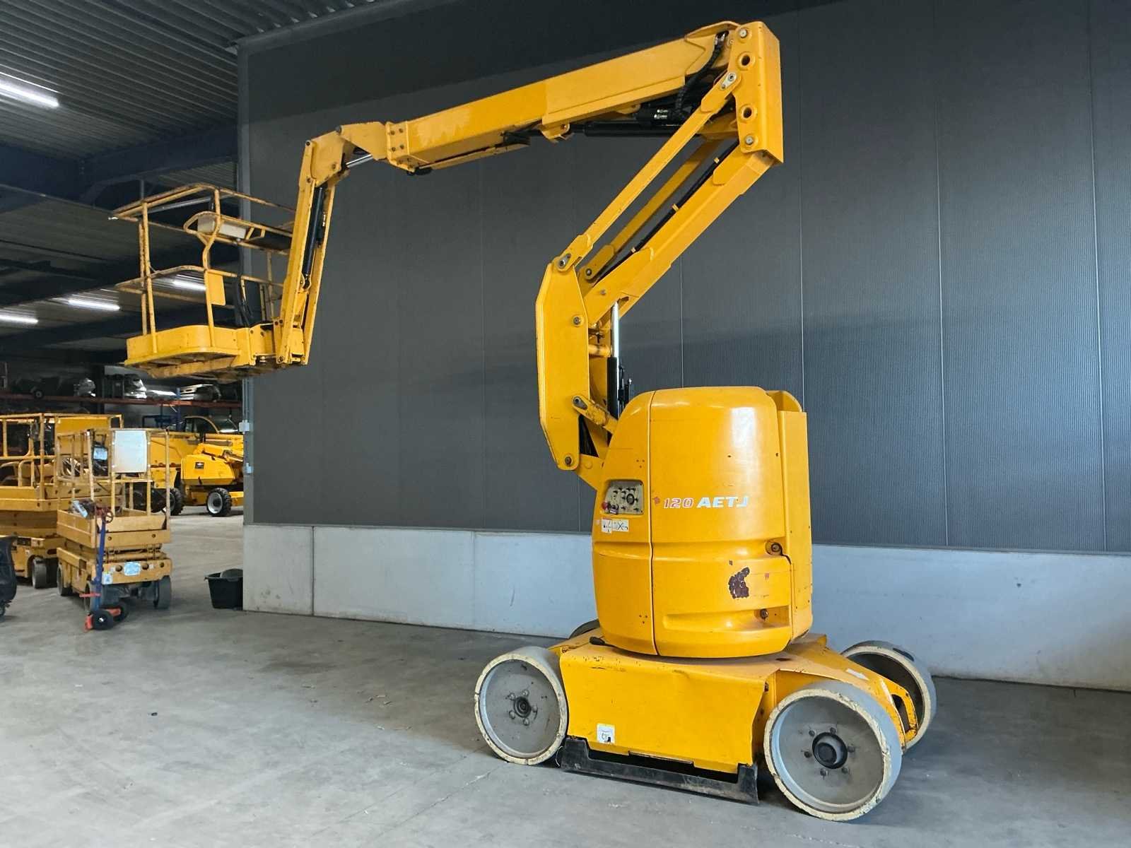 Voorzien van: werkhoogte: 11,95m, maximaal bereik: 7,00m, overbrugging: 4,77m, totale breedte: 1,20m, giekverstelling +70° / -70°, platformcapaciteit 200 kg/2 personen, plateau afmetingen 1.20 x 0.96m, elektrische accuaandrijving, negatieve remmen, hefbeugels, urenteller, waarschuwingszoemer in de werkbak, 220 V-aansluiting, spanningsindicator, handmatige veiligheidspomp, werkbak met gaasbodem, dubbele elektromotoren, rubberen banden die geen strepen achterlaten (non-marking), anti-rolsysteem, geïntegreerde lader, lengte 5,48,m, lengte in opgevouwen toestand (opslag) 3,74m, hoogte 1,99m, hoogte in opgevouwen toestand (opslag) 2,16m, Nee Merk: Manitou Type: 120 AETJ Bouwjaar: 2005 Serienummer: 507491 Elektrisch: true Knikarm hoogwerker: true Werkhoogte: 11950mm Horizontale rijkwijdte: 7000mm Plateau afm. l: 960mm Plateau afm. b: 1200mm Platform capaciteit: 200kg Afgelezen urenstand: 1426 Eigen gewicht: 6550kg Totale afmeting L: 5500mm Totale afmeting Breedte: 1200mm Totale afmeting Hoogte: 2000mm