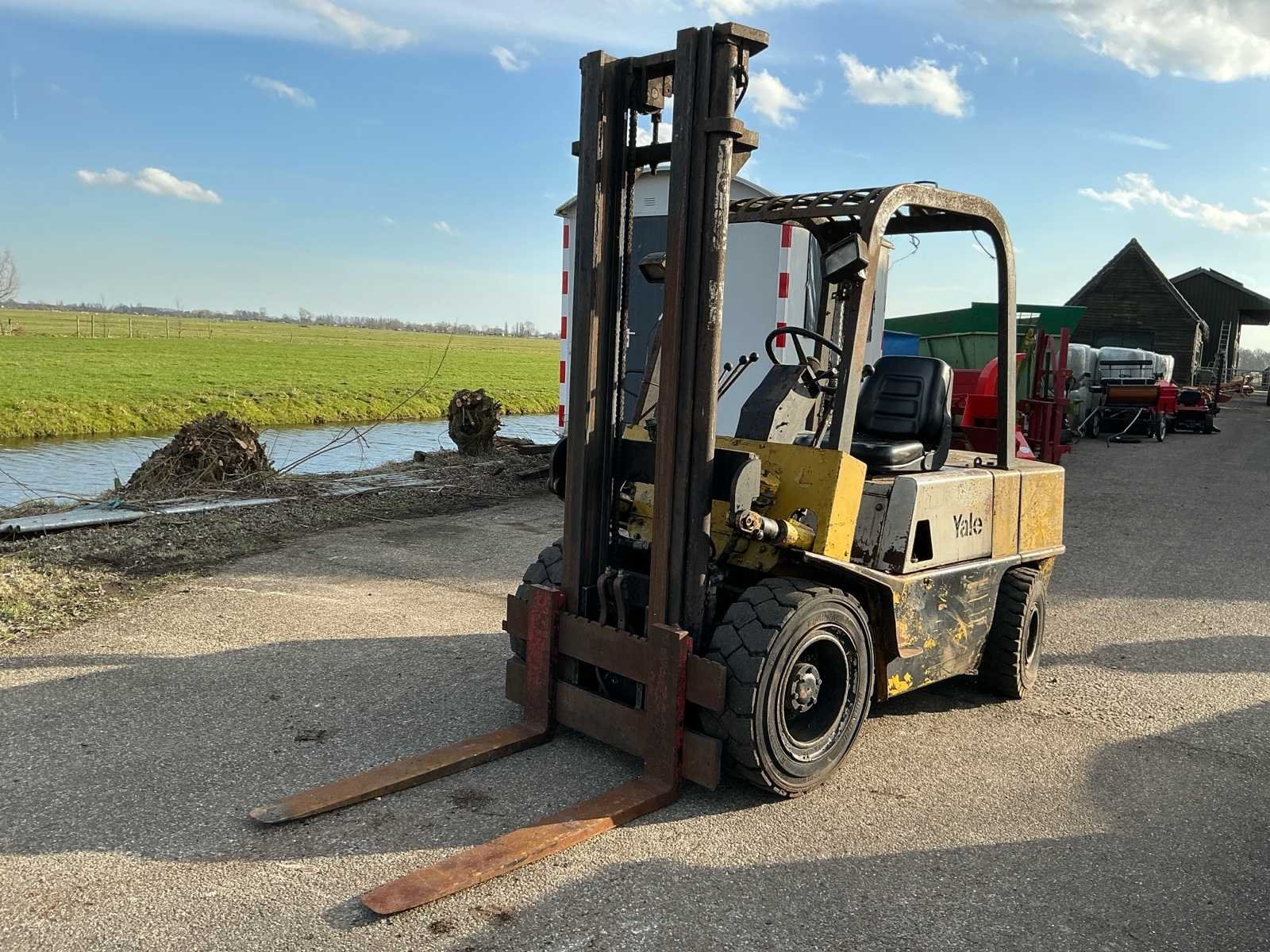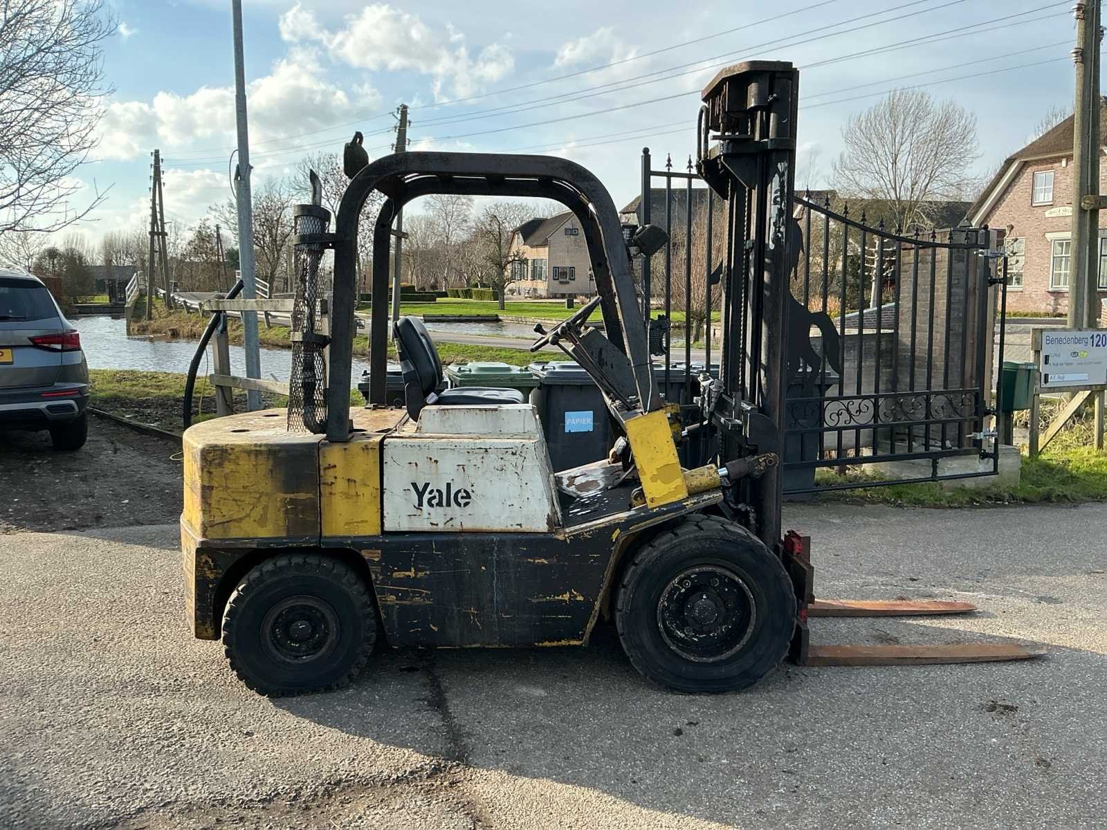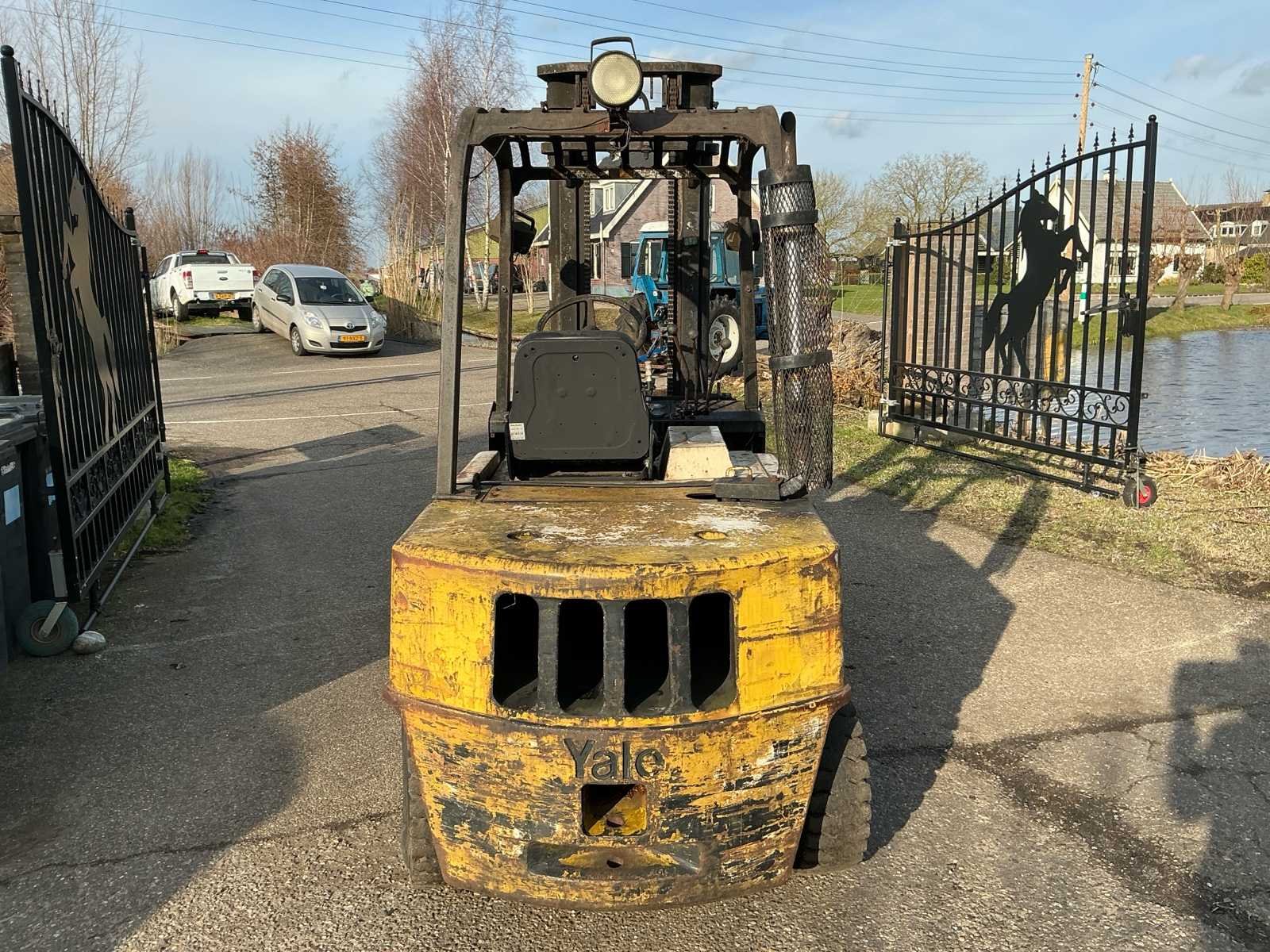 Voorzien van: derde functie, volrubberband voor, luchtband achter, Nee Merk: yale Type: GDP 60RC Bouwjaar: 1980 Serienummer: Y383309 Brandstof: Diesel Kenteken: T43BDD Mast: Triple Aantal wielen: 4 Triple mast: true Lepellengte: 1160mm Max. hefhoogte: 3600mm Luchtbanden: true Vol rubber banden: true Minimale doorrijhoogte: 2430mm Totale afmeting L: 3530mm Totale afmeting Breedte: 1270mm Diesel: true