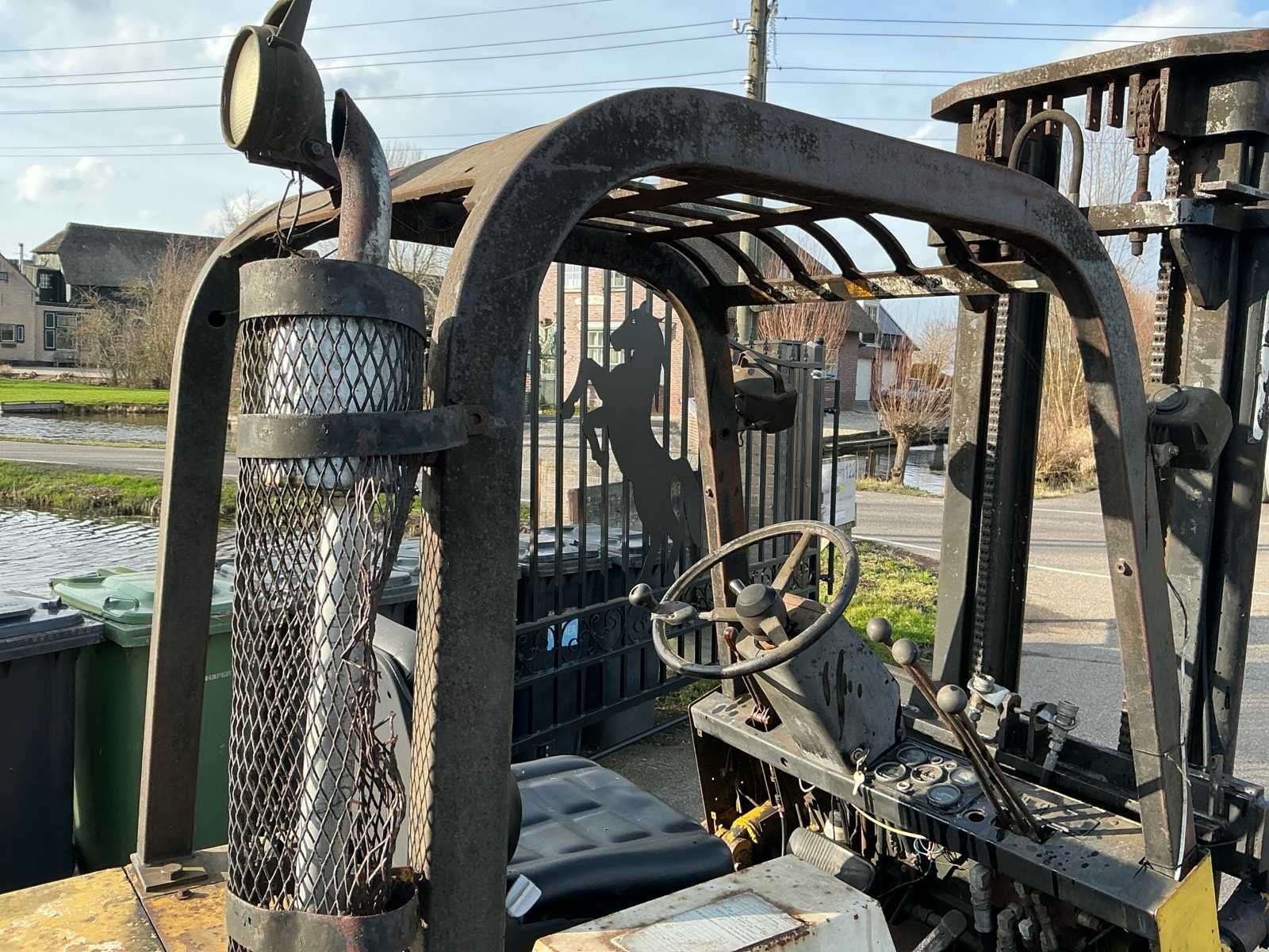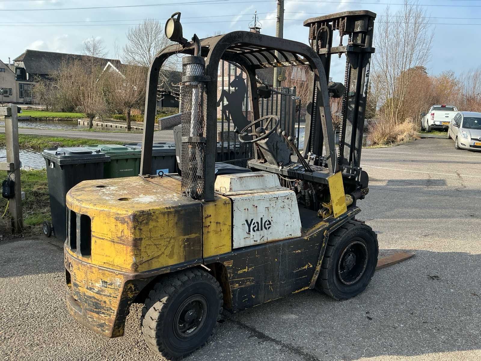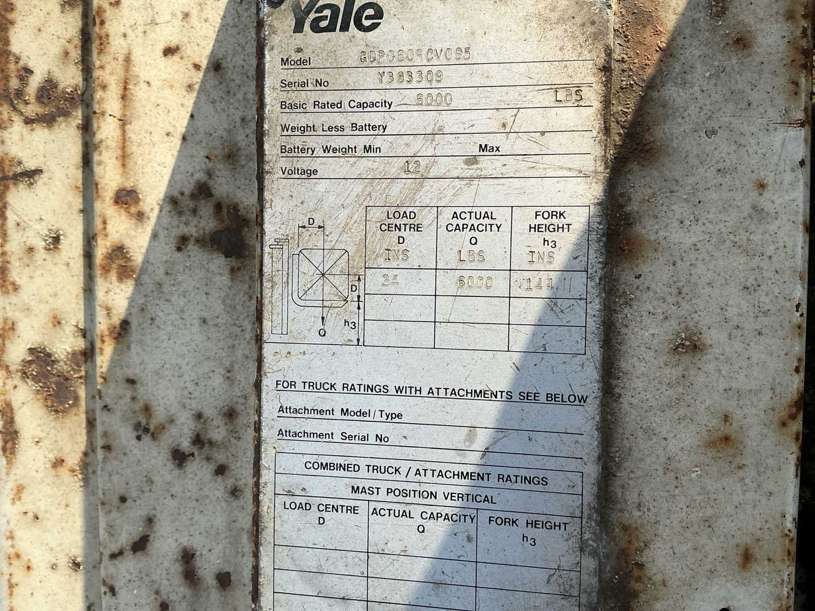 Voorzien van: derde functie, volrubberband voor, luchtband achter, Nee Merk: yale Type: GDP 60RC Bouwjaar: 1980 Serienummer: Y383309 Brandstof: Diesel Kenteken: T43BDD Mast: Triple Aantal wielen: 4 Triple mast: true Lepellengte: 1160mm Max. hefhoogte: 3600mm Luchtbanden: true Vol rubber banden: true Minimale doorrijhoogte: 2430mm Totale afmeting L: 3530mm Totale afmeting Breedte: 1270mm Diesel: true