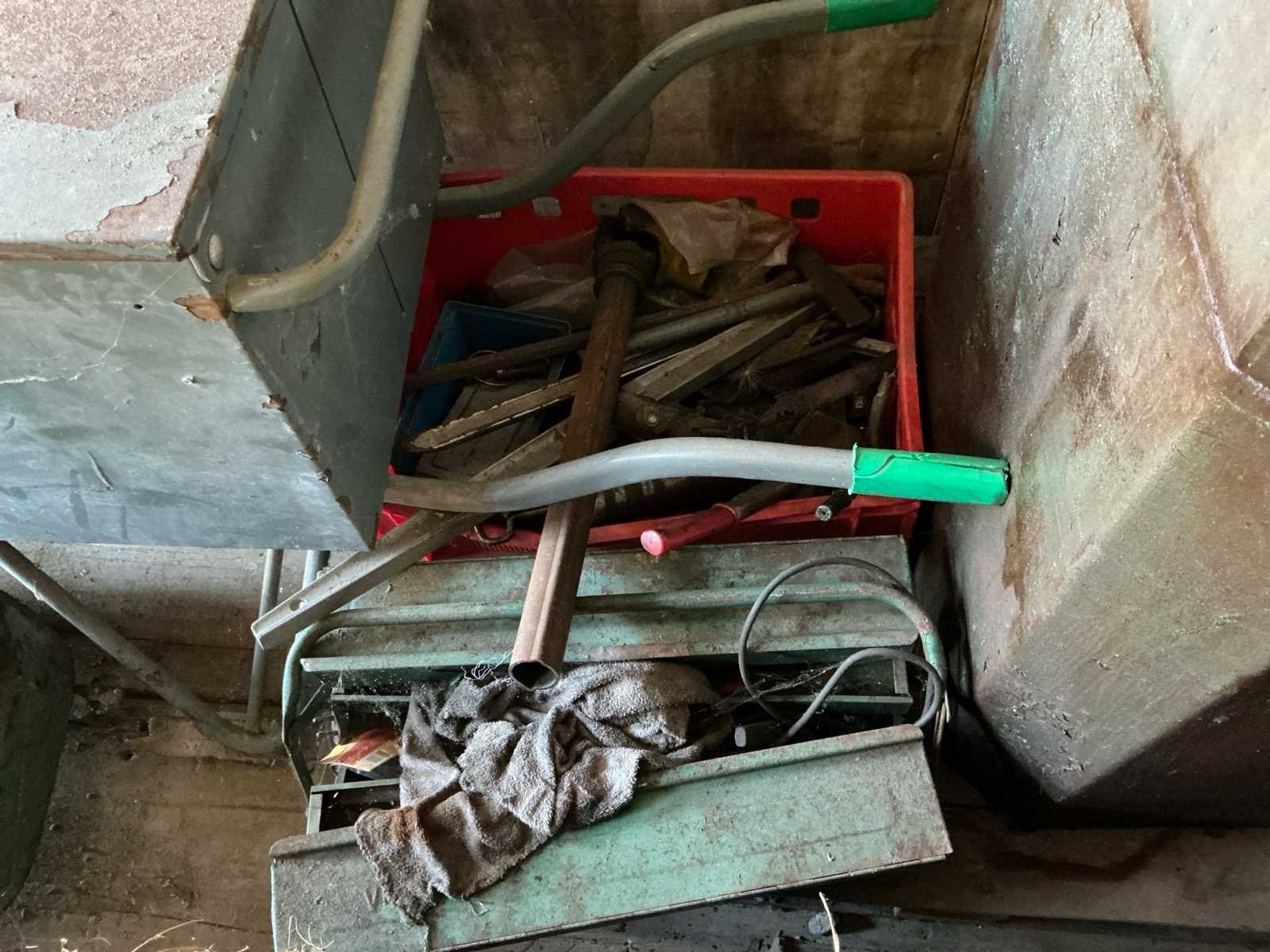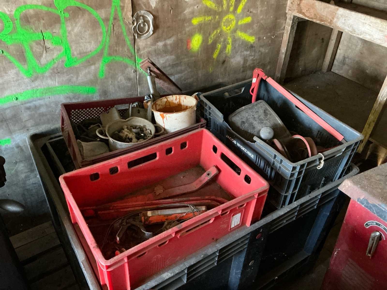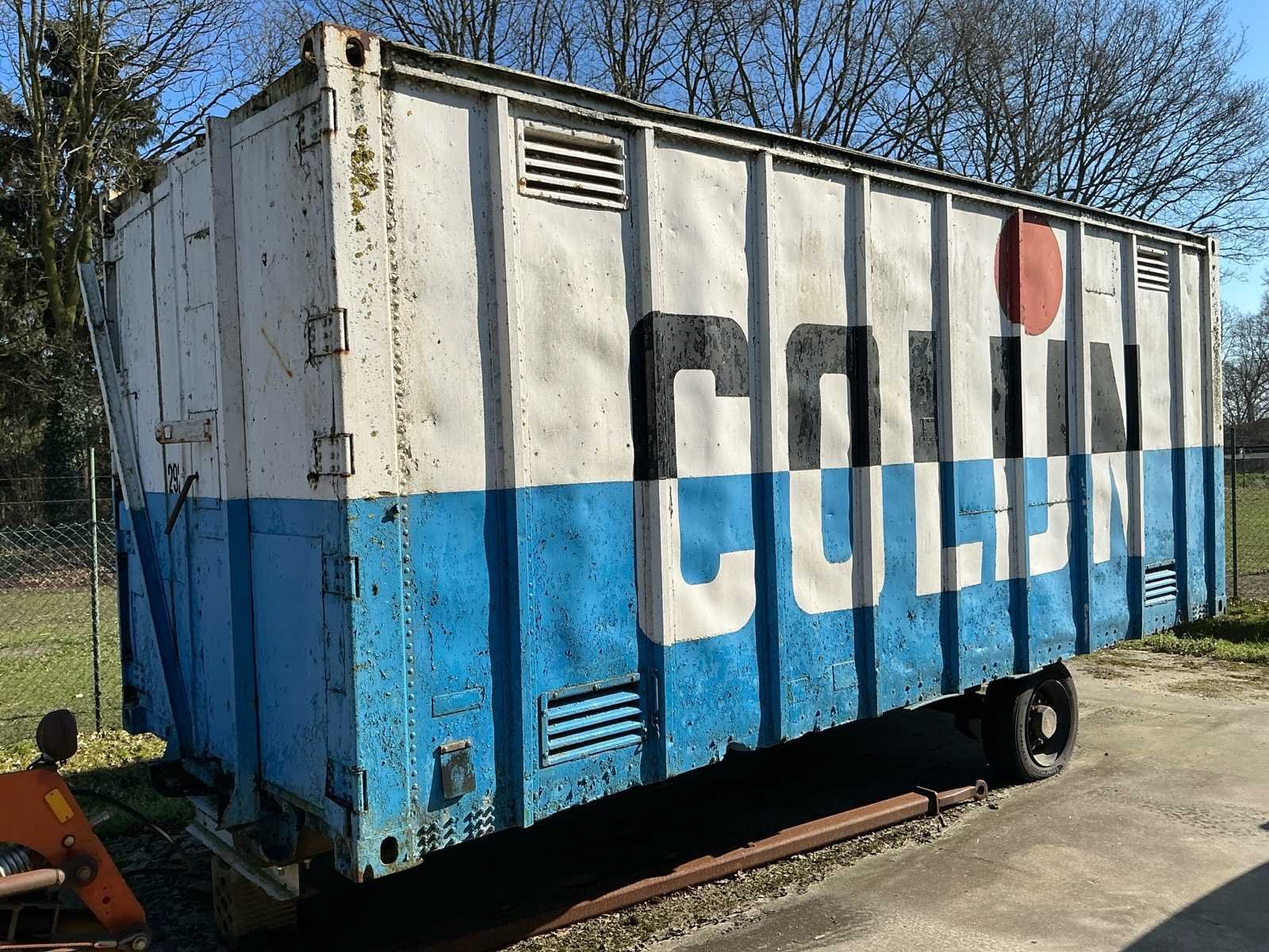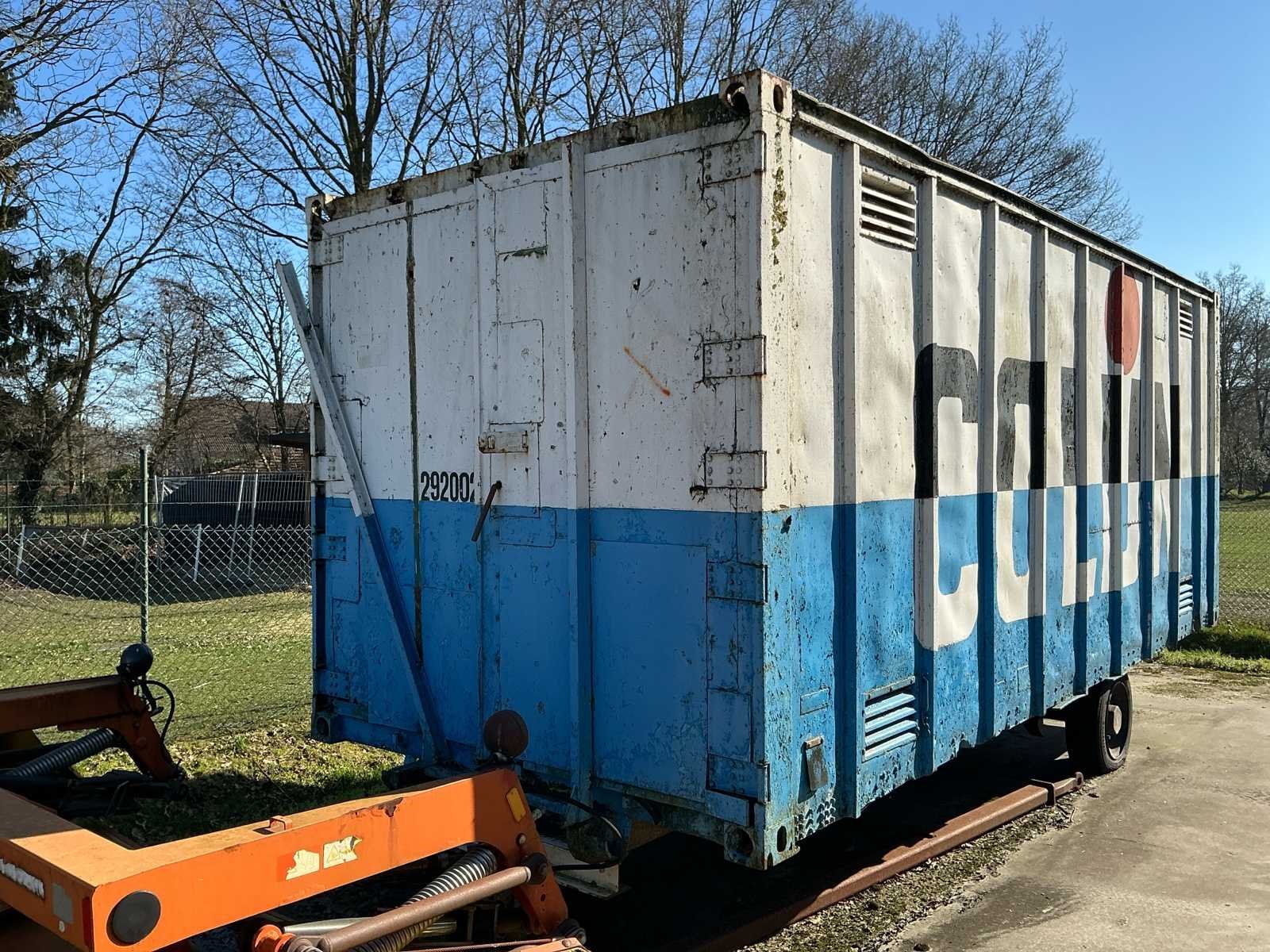 Bestaat uit: mobiele container met gereedschap, kolom boormachine, bouw kruiwagens, lasapparaat, kabels, slangen, gereedschap, opbergkisten, garage krik, diverse gereedschap, hoogte wielstel 700mm, afmetingen container: 2,40m breed, 2,45m hoog, 6mtr lang., dissel aanwezig, Nee Totale afmeting L: 6000mm Totale afmeting Breedte: 2400mm Totale afmeting Hoogte: 2450mm