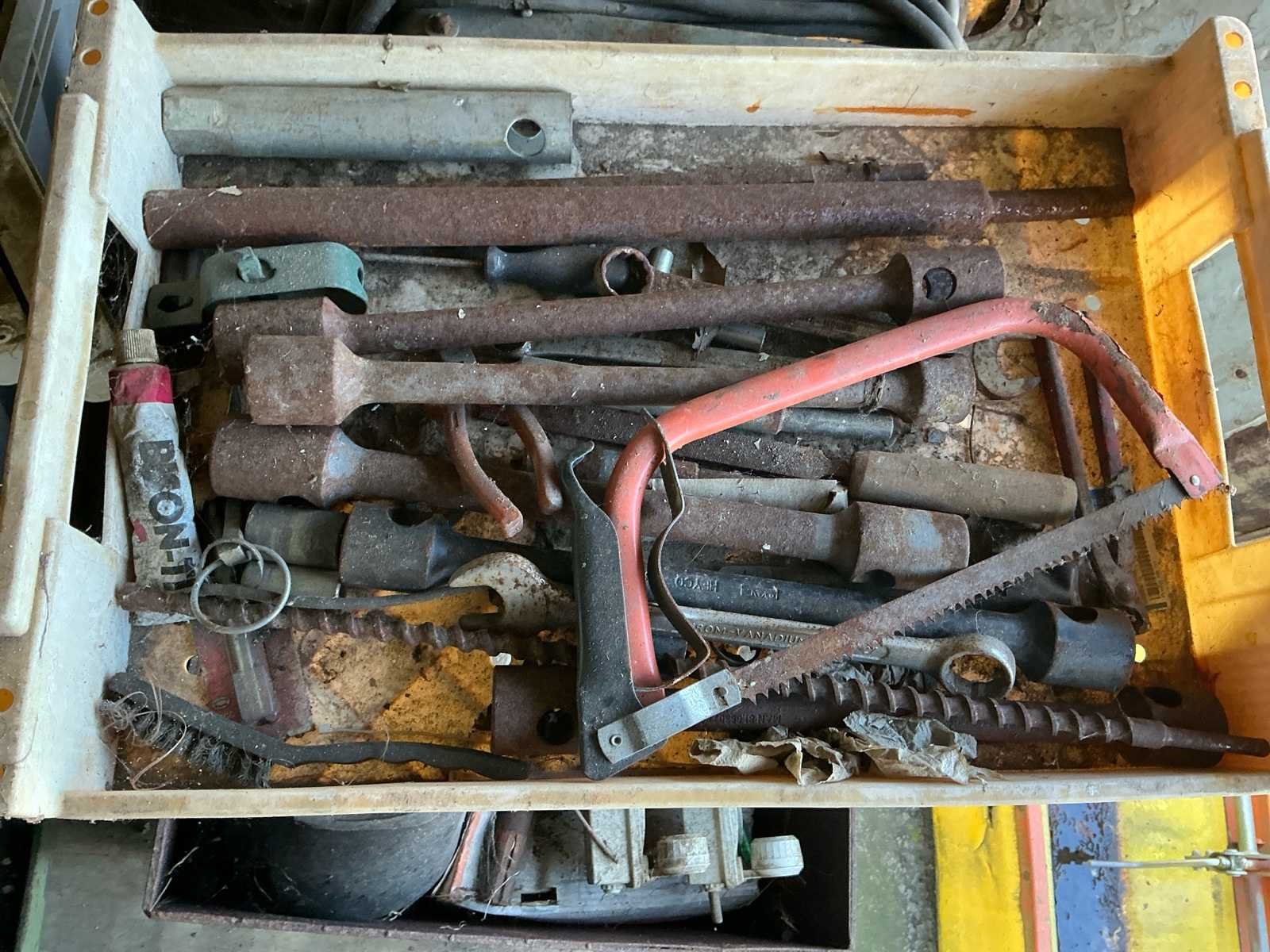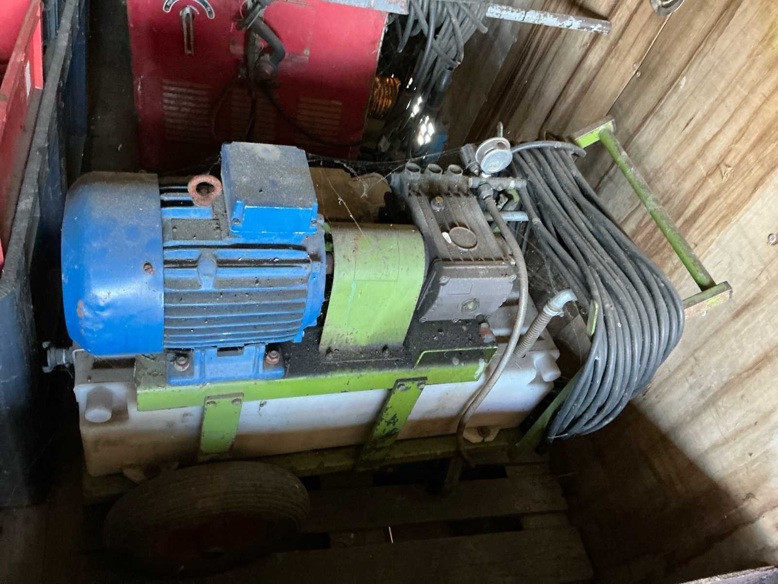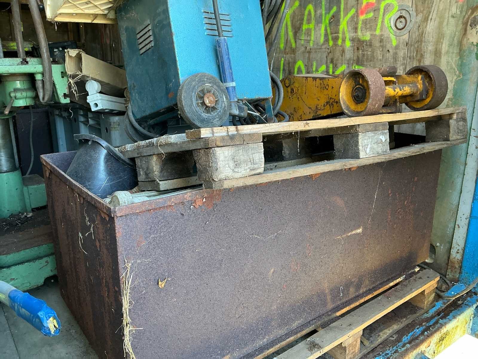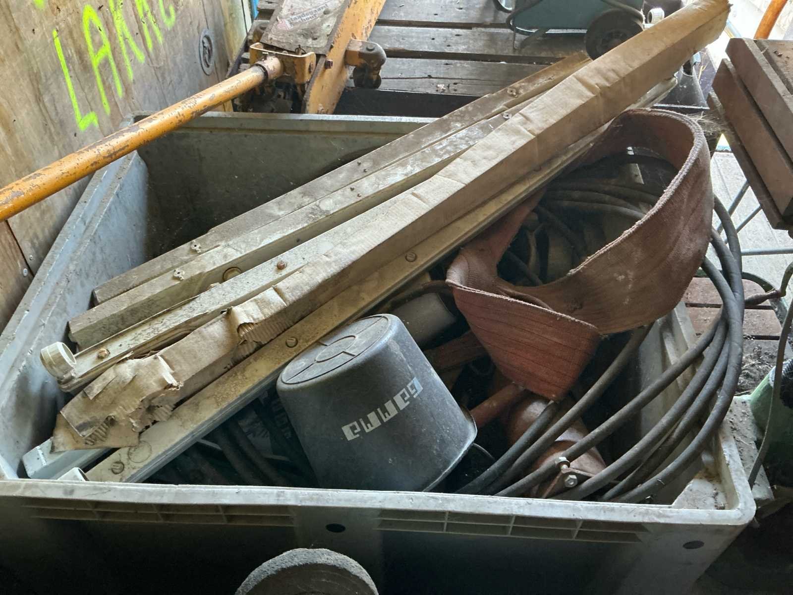 Bestaat uit: mobiele container met gereedschap, kolom boormachine, bouw kruiwagens, lasapparaat, kabels, slangen, gereedschap, opbergkisten, garage krik, diverse gereedschap, hoogte wielstel 700mm, afmetingen container: 2,40m breed, 2,45m hoog, 6mtr lang., dissel aanwezig, Nee Totale afmeting L: 6000mm Totale afmeting Breedte: 2400mm Totale afmeting Hoogte: 2450mm