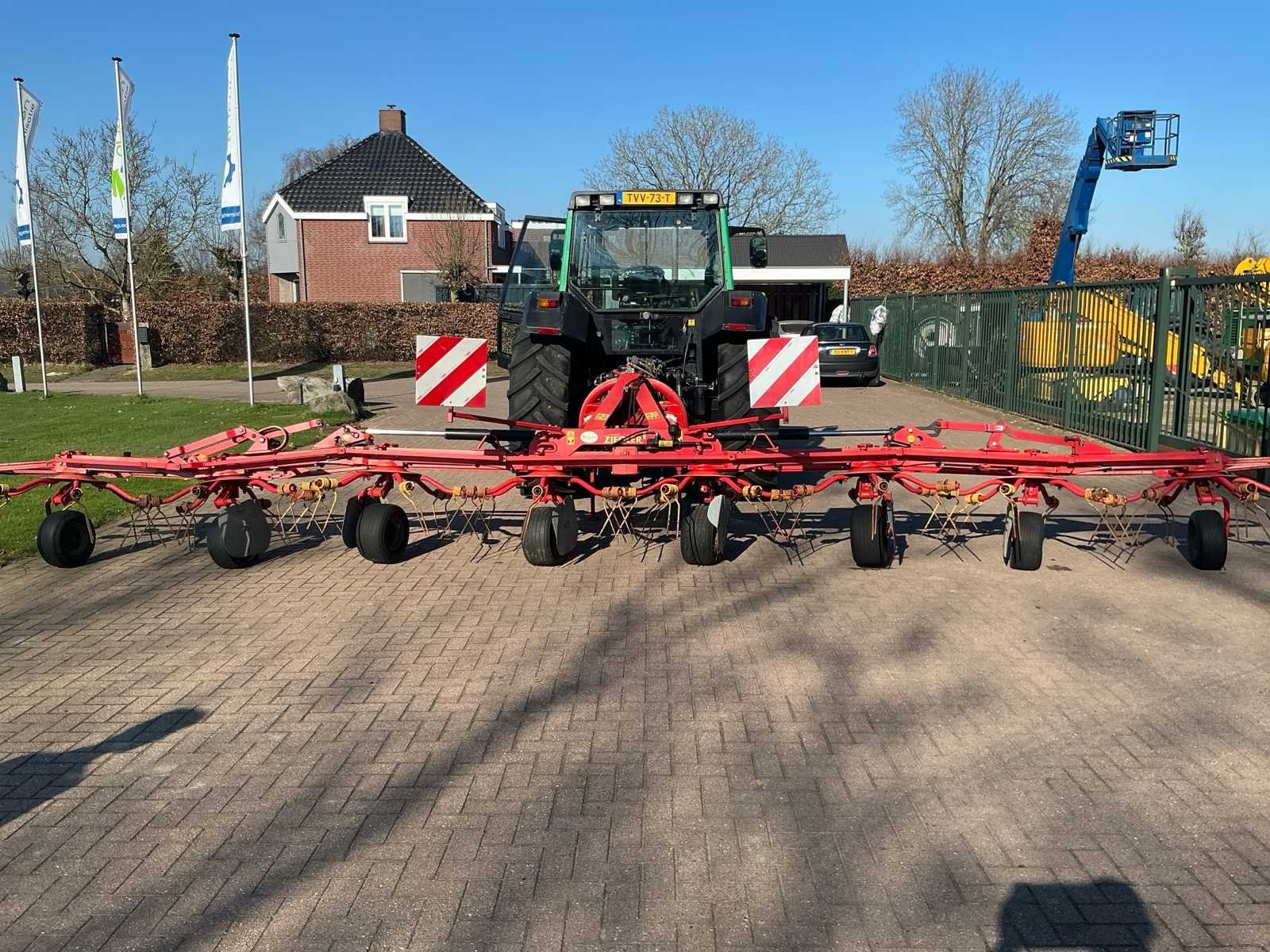 Aantal rotoren: 8, Tanden per rotor: 6 tandarmen per rotor, Aftakas: 540 rpm, Aandrijving: Mechanisch via tandwielkasten Nee Merk: Ziegler Type: HR 905D Serienummer: 201547 Werkbreedte: 9000mm Opklapbaar: true Eigen gewicht: 1255kg Totale afmeting L: 2800mm Totale afmeting Breedte: 2000mm Totale afmeting Hoogte: 3100mm