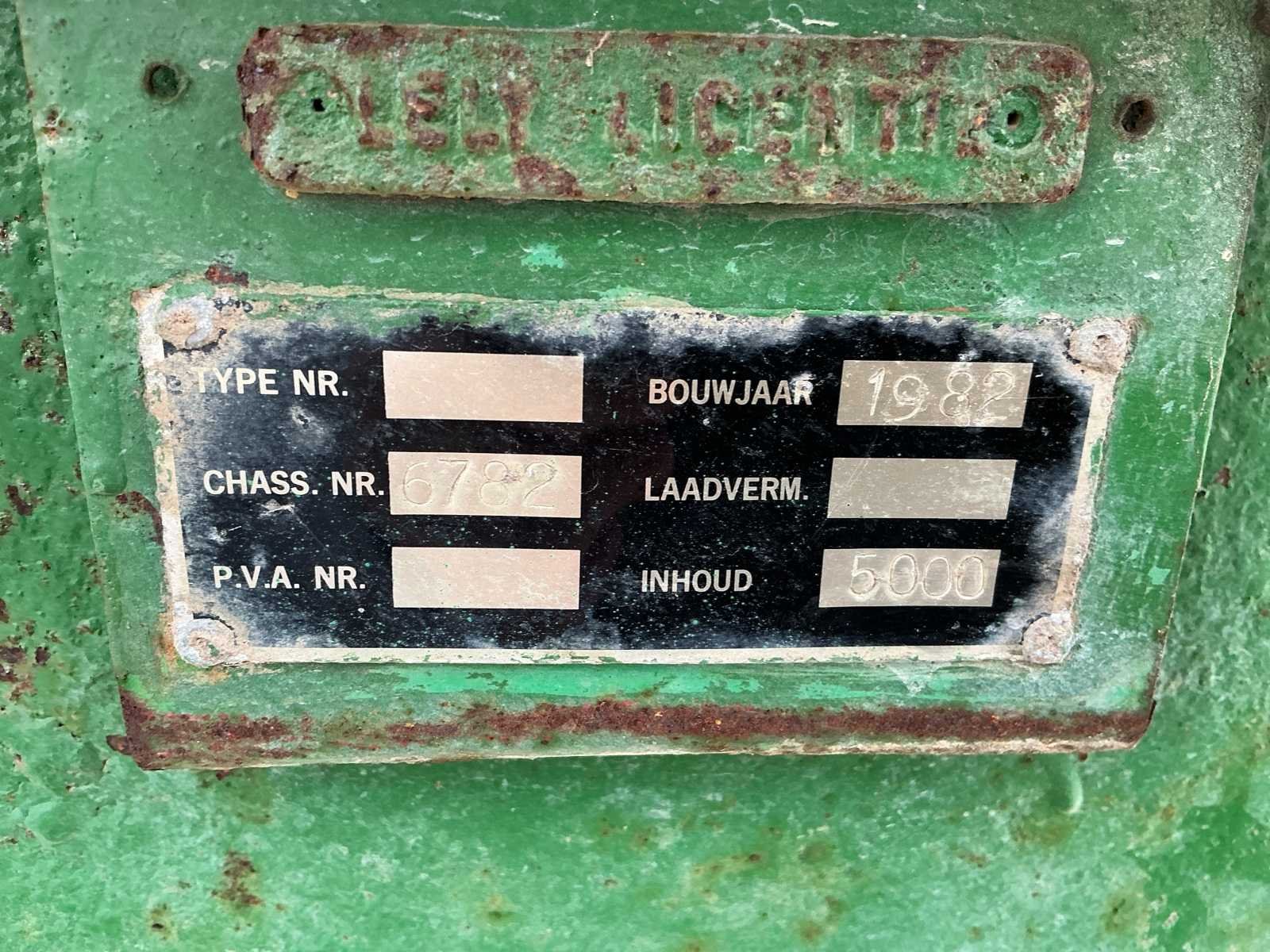Voorzien van: trekspanaansluiting, pomp met aftakasaandrijving, slangaansluiting, luchtbanden, neuswiel. Nee Bouwjaar: 1982 Serienummer: 6782 Tankinhoud: 5m³ Totale afmeting L: 5400mm Totale afmeting Breedte: 2400mm Totale afmeting Hoogte: 2600mm