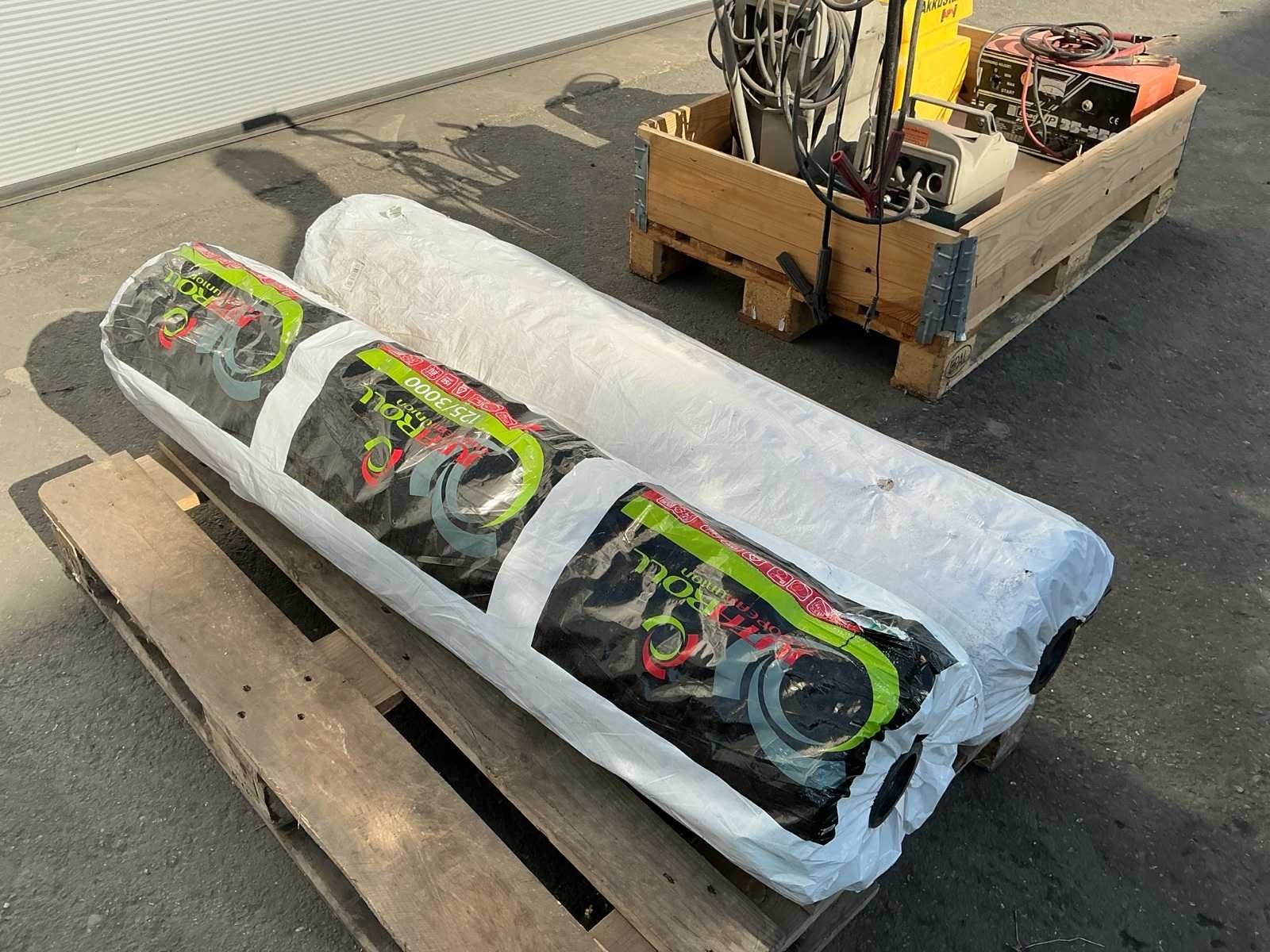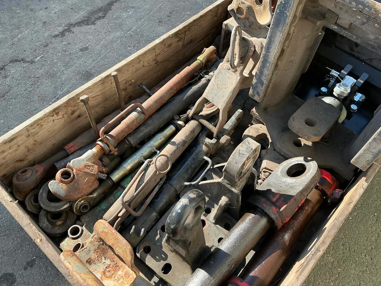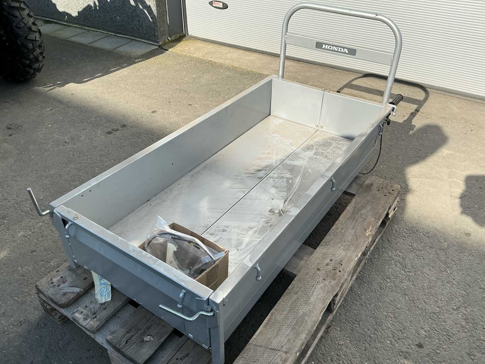 Bestaande uit 4 pallets met onder andere trekstangen, zeil, acculaders, laadbakje, spuit. Nee
