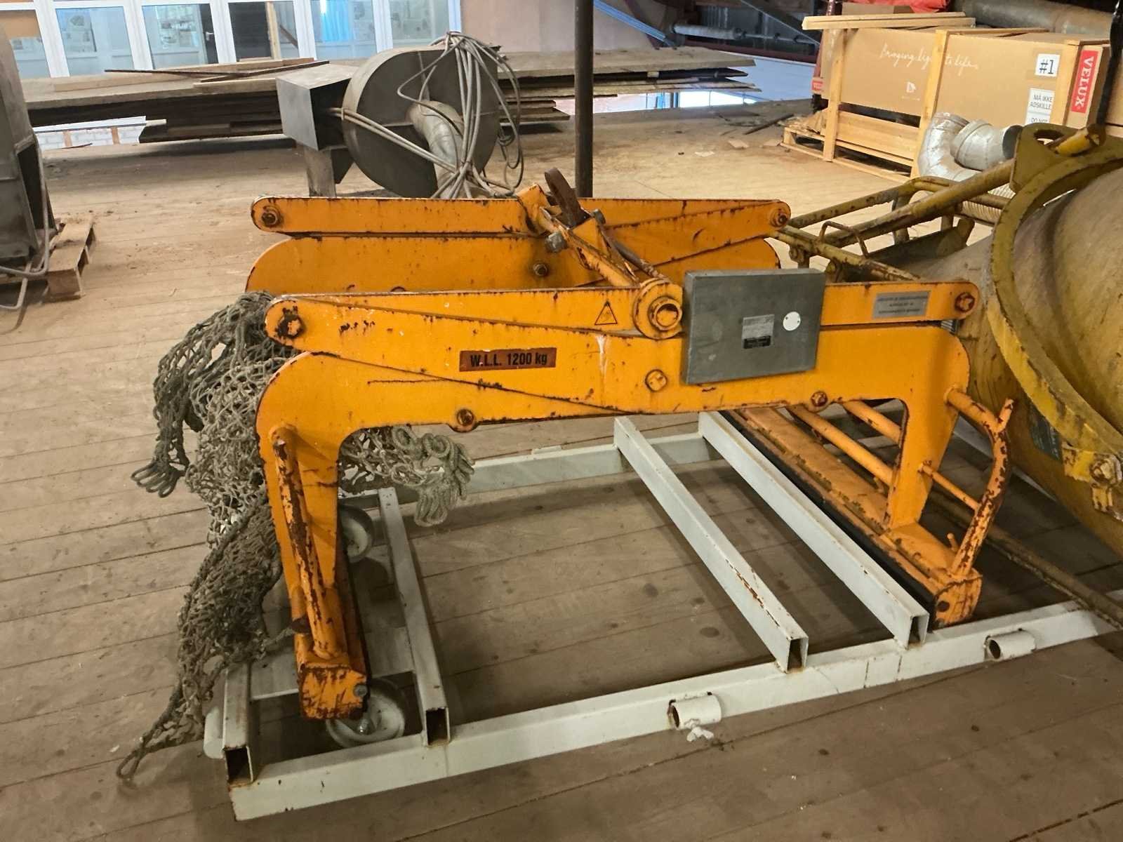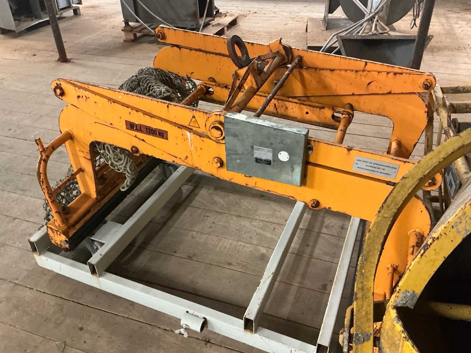 Voorzien van: BSV (Vojens Tovværk A/S) mechanische blokkenklem type vermoedelijk UJT120, serienummer 9720002, met een maximale werklast (W.L.L.) van 1.200 kg, eigen gewicht 230 kg en verstelbare klemopening van 800–1.000 mm, geschikt voor het hijsen van steen- en betonblokken Nee Merk: BSV Serienummer: 9720002 Bedrijfsgewicht: 1200kg Eigen gewicht: 230kg Totale afmeting L: 1200mm Totale afmeting Breedte: 1450mm Totale afmeting Hoogte: 800mm