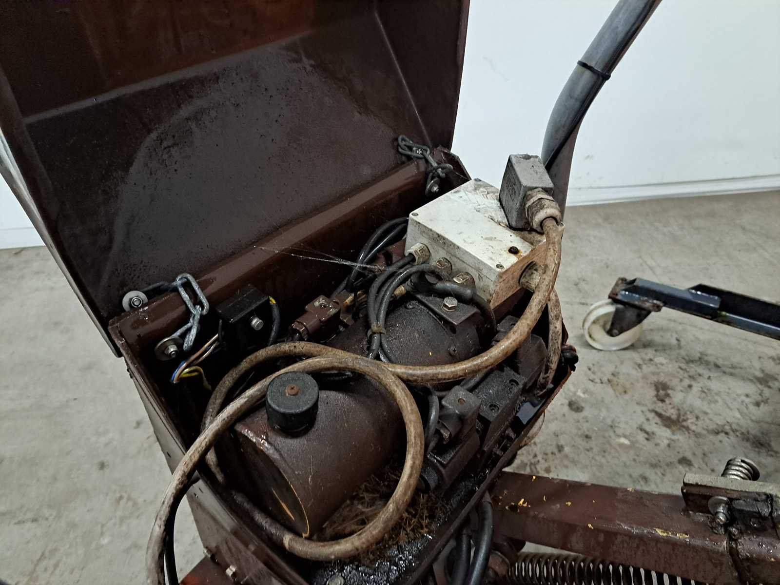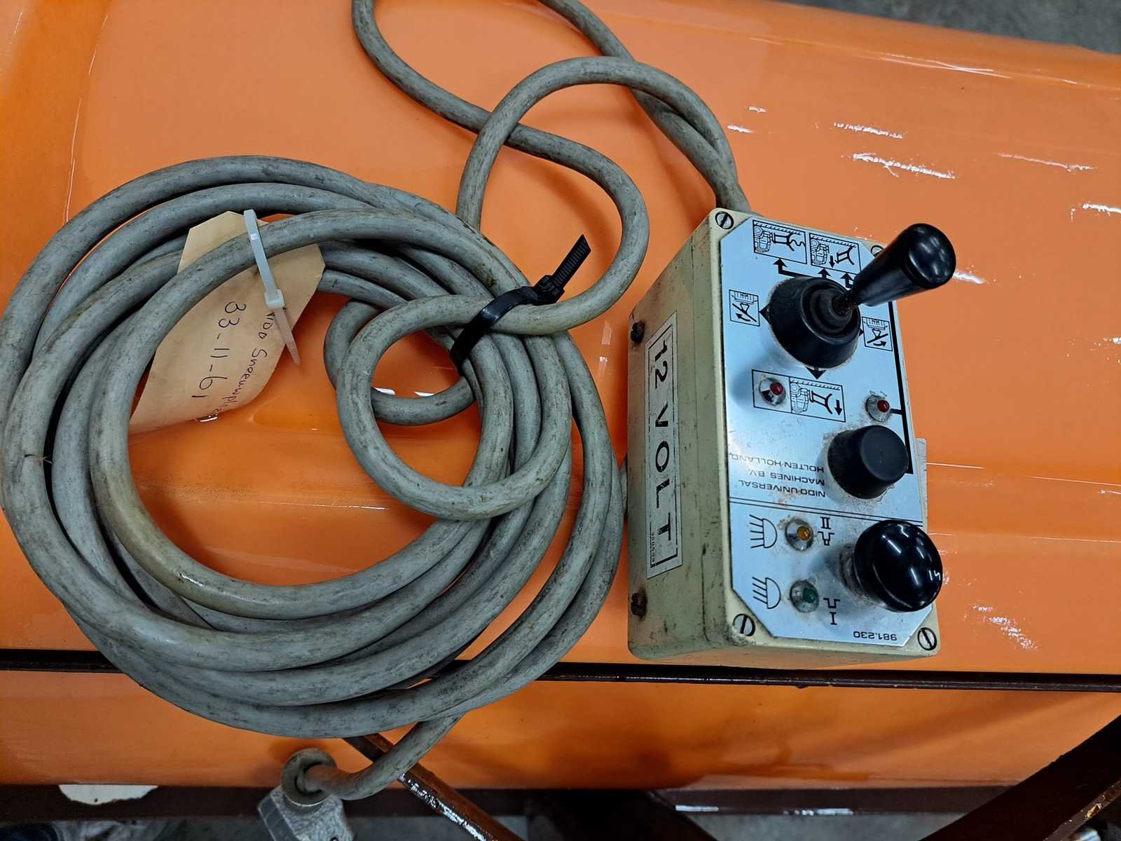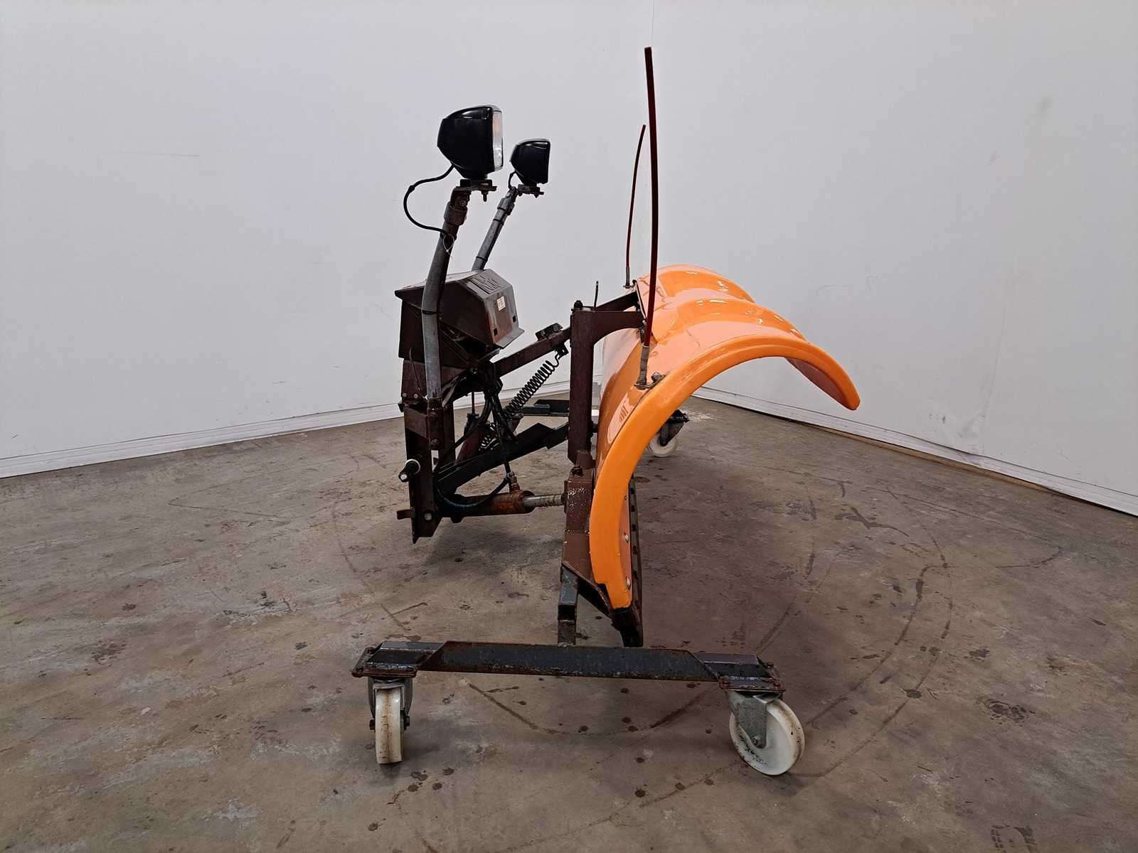 Nido SNK 180 EPZ sneeuwschuiver uit 1987, inclusief afstandsbediening. Deze oranje sneeuwschuiver is 180 cm breed en is perfect voor het efficiënt verwijderen van sneeuw op grotere oppervlakken, zoals parkeerterreinen en industriële terreinen. Nee Merk: Nido Type: SNK180EPZ Bouwjaar: 1987 Serienummer: 130 Werkbreedte: 1800mm Eigen gewicht: 280kg Totale afmeting L: 1000mm Totale afmeting Breedte: 1800mm Totale afmeting Hoogte: 1500mm