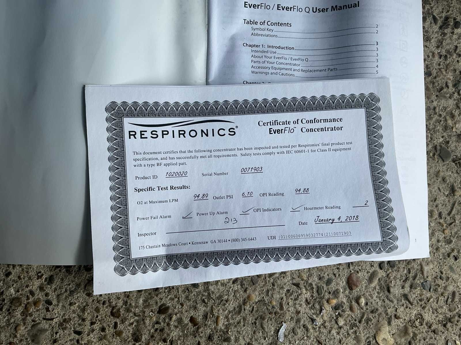 230V – 50/60 Hz – 1.5A Maximale zuurstofconcentratie: 96% IP21 classificatie Voorzien van OPI (Oxygen Percentage Indicator) Flowbereik tot 5 LPM Inclusief handleiding en certificaat van conformiteit Getest in 2018 conform IEC 60601-1 Nee Merk: Philips Respironics Type: EverFlo OPI Bouwjaar: 2018 Serienummer: 0071903