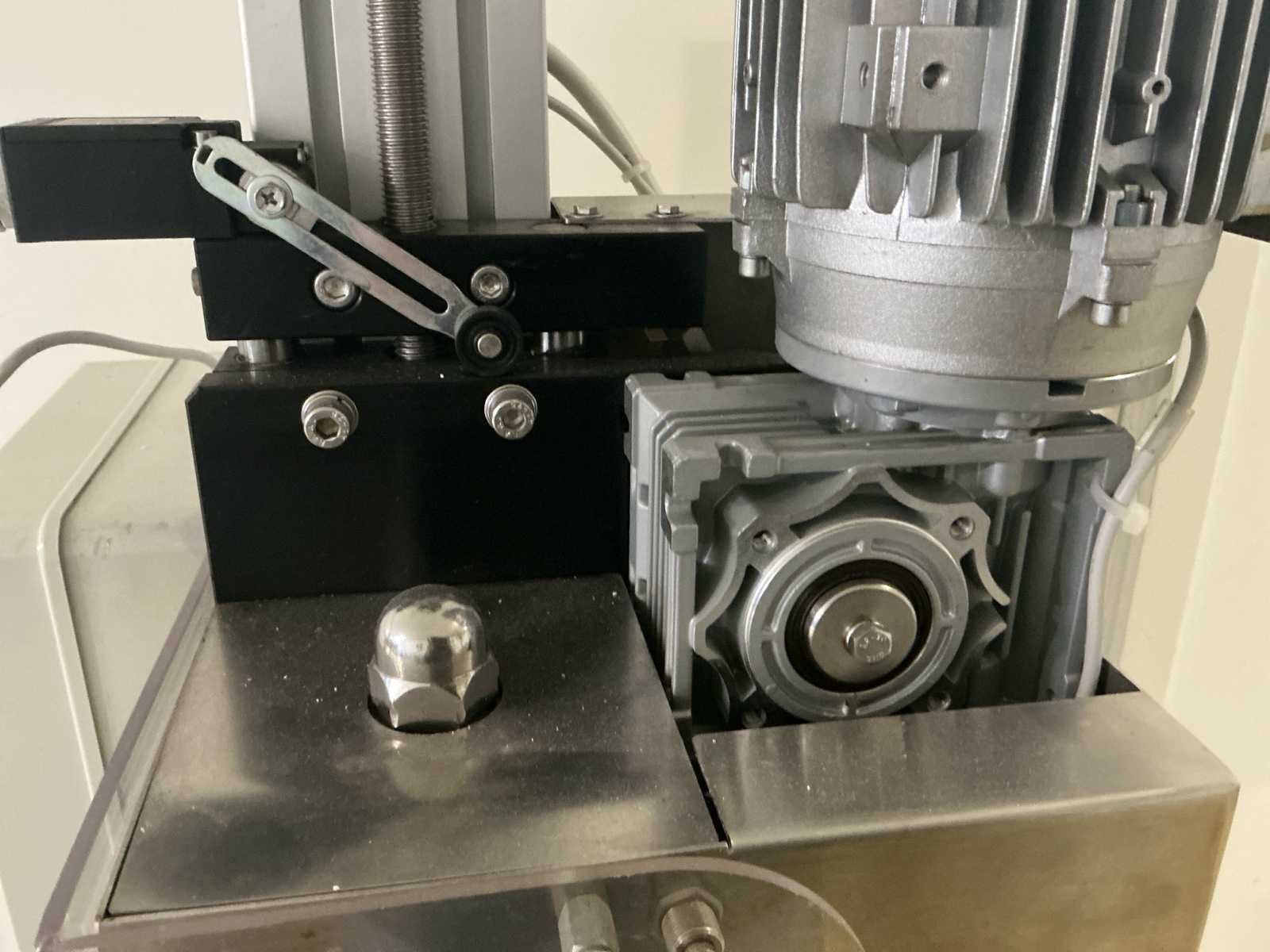 Deze semi-automatische sluitmachine met neergaande kop sluit aluminium schroefdoppen (pilferproof en andere soorten doppen) met of zonder schenktuit en twist-off doppen (voor potten). De machine kan ook worden geconfigureerd voor speciale toepassingen. De operator plaatst de fles op de plaat, met de dop handmatig op de hals. Door op de twee knoppen aan de zijkanten van de machine te drukken, zakt de sluitkop naar beneden en sluit de capsules binnen enkele seconden. Met behulp van de juiste componenten kan de sluitmachine met neergaande kop de volgende doppen sluiten: - Stelvin-type - BVS-type - MCA-type (driefase-uitvoering) - pilferproof type De machine is uitgerust met de speciale "No Cap No Roll" 4-rollenkop, volledig vervaardigd uit roestvrij staal. Eenvoudig te gebruiken Plaats de fles met de te sluiten capsule en druk op de tweehandsbediening om de dop binnen enkele seconden te plaatsen. TECHNISCHE KENMERKEN Aflopende kop dopmachine Productie ~ 500/600 flessen/u Afmetingen 450 x 450 x 1100 mm Gewicht 50 kg Voeding 220 V - 50 Hz 1-fase 220 V - 60 Hz 1-fase 110 V - 60 Hz 1-fase 208 V - 60 Hz 3-fase Nee Merk: Tenco Model: AVVITA TRICE SEMIAUTOMATICA Product type: 900-1001-035 Gewicht: 50kg Lengte: 45cm Breedte: 45cm Hoogte: 168cm Materiaal: RVS
