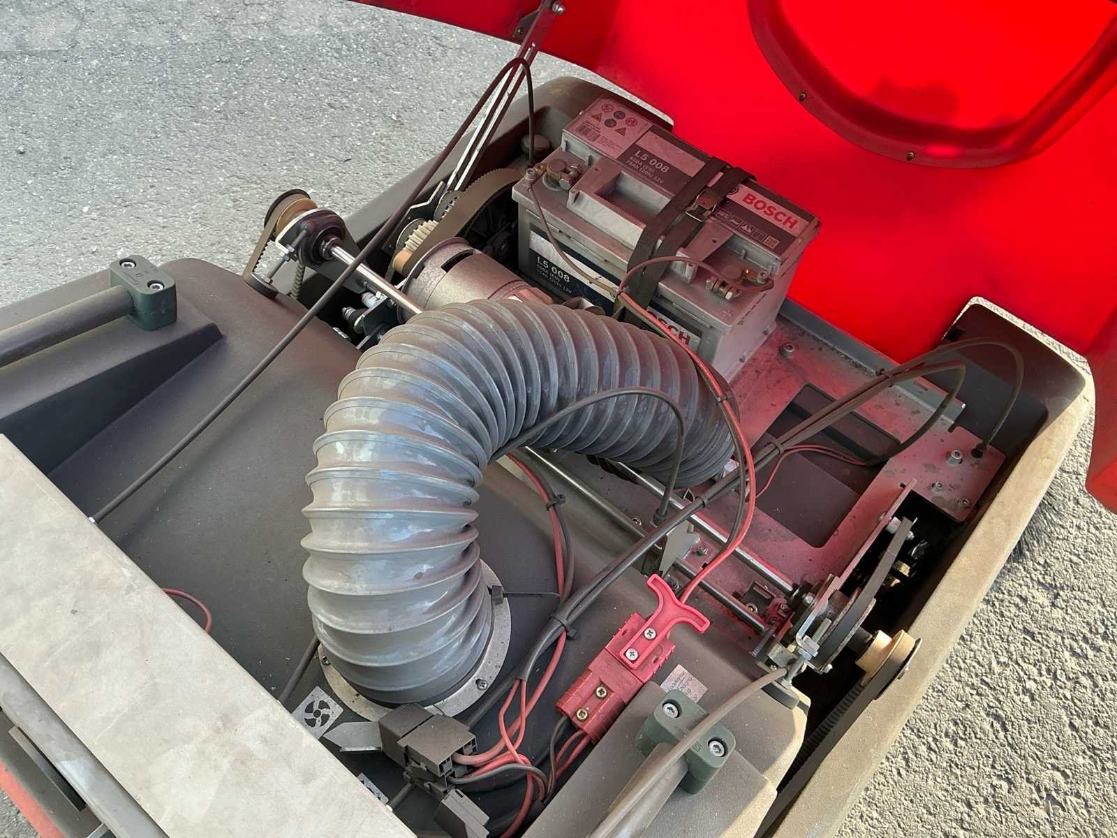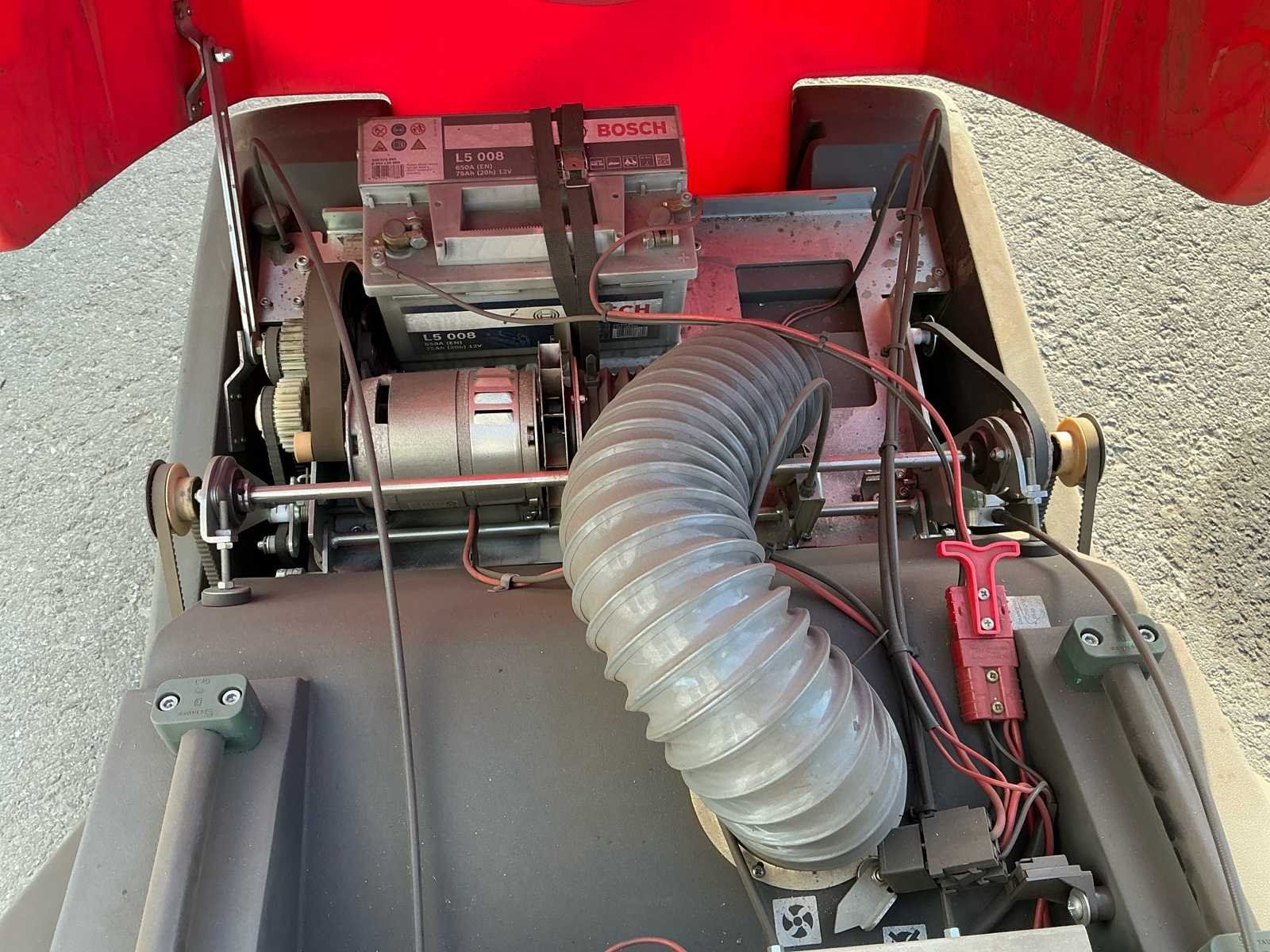 Voorzien van: elektrische aandrijving, opvangbak, accu indicator, roterende borstels. No Merk: Meclaen Elektrisch aangedreven: true Werkbreedte: 900mm Totale afmeting L: 1500mm Totale afmeting Breedte: 900mm Totale afmeting Hoogte: 1100mm