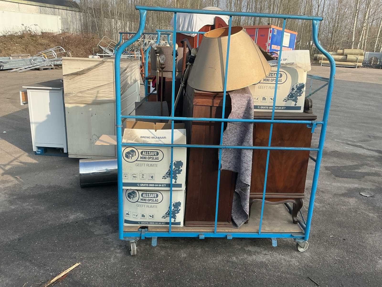Voorzien van: Complete inboedel van oma. Zeer degelijk zoals van vroeger bekent! Echte houten meubels, dressoir, kledingkasten, ladenkast, lampen, lampenkappen, diverse dozen vol huisraad en diversen, gevulde golftas, wollen dekens, stoelen en echte kunst Nee