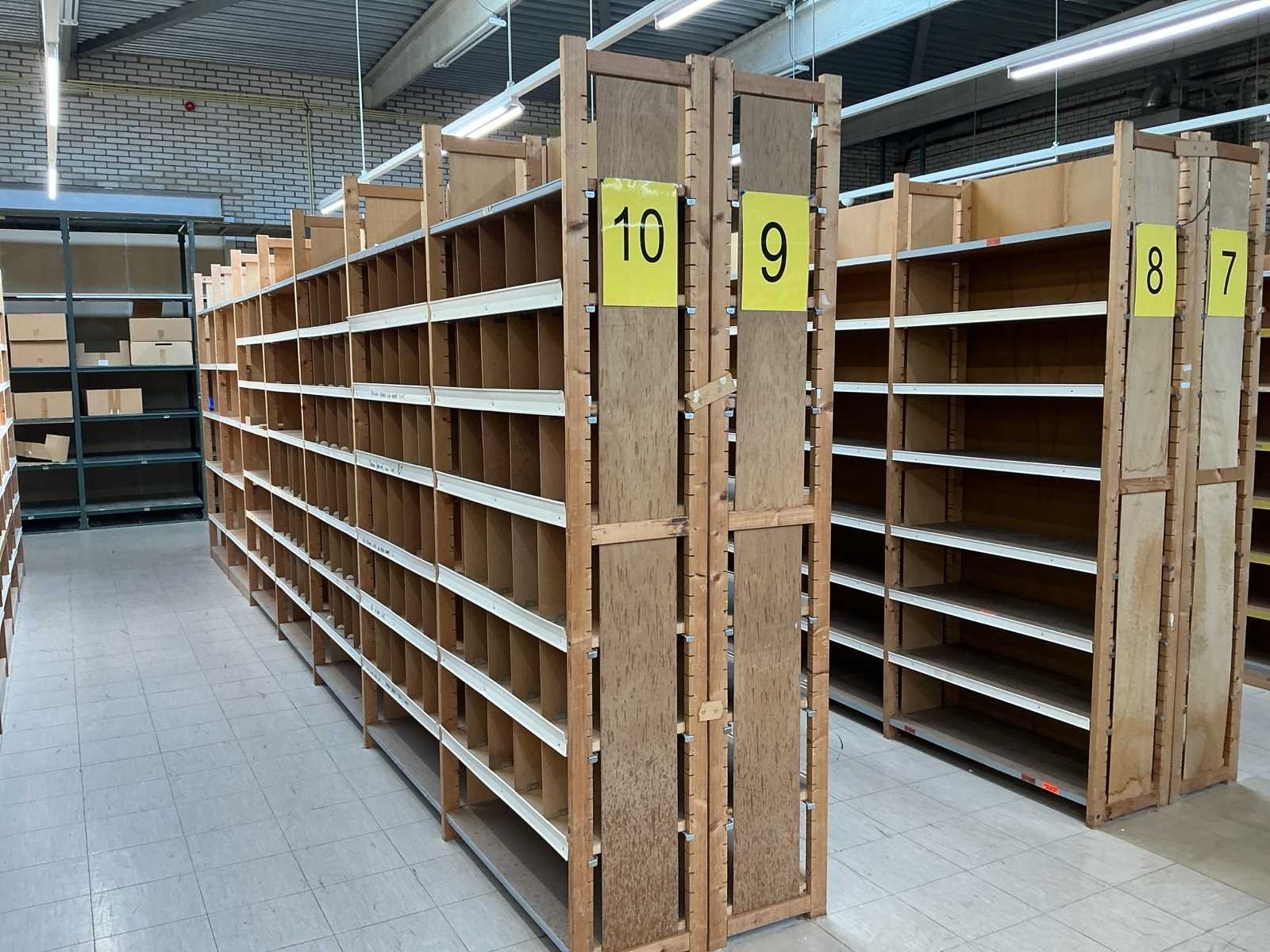 Voorzien van: 423x liggers 100mm breed x 300mm diep. 84 x liggers. 118 mm breed x 600mm breed. 124 staanders van 2100mm hoog. No Merk: Bruynzeel Sectie diepte: 600mm Aantal staanders: 124 Aantal liggers: 507 Demontabel: true Materiaal: Hout