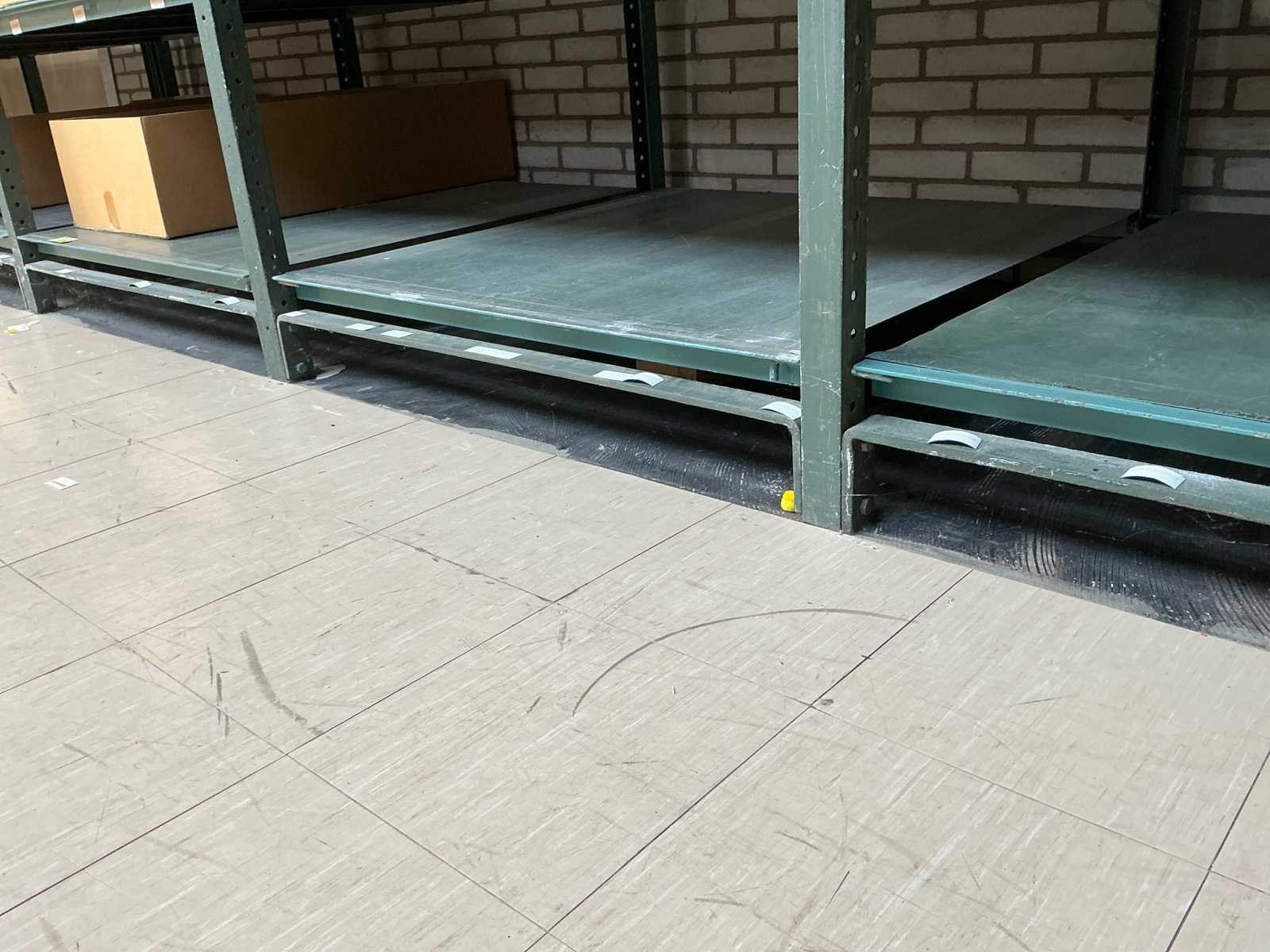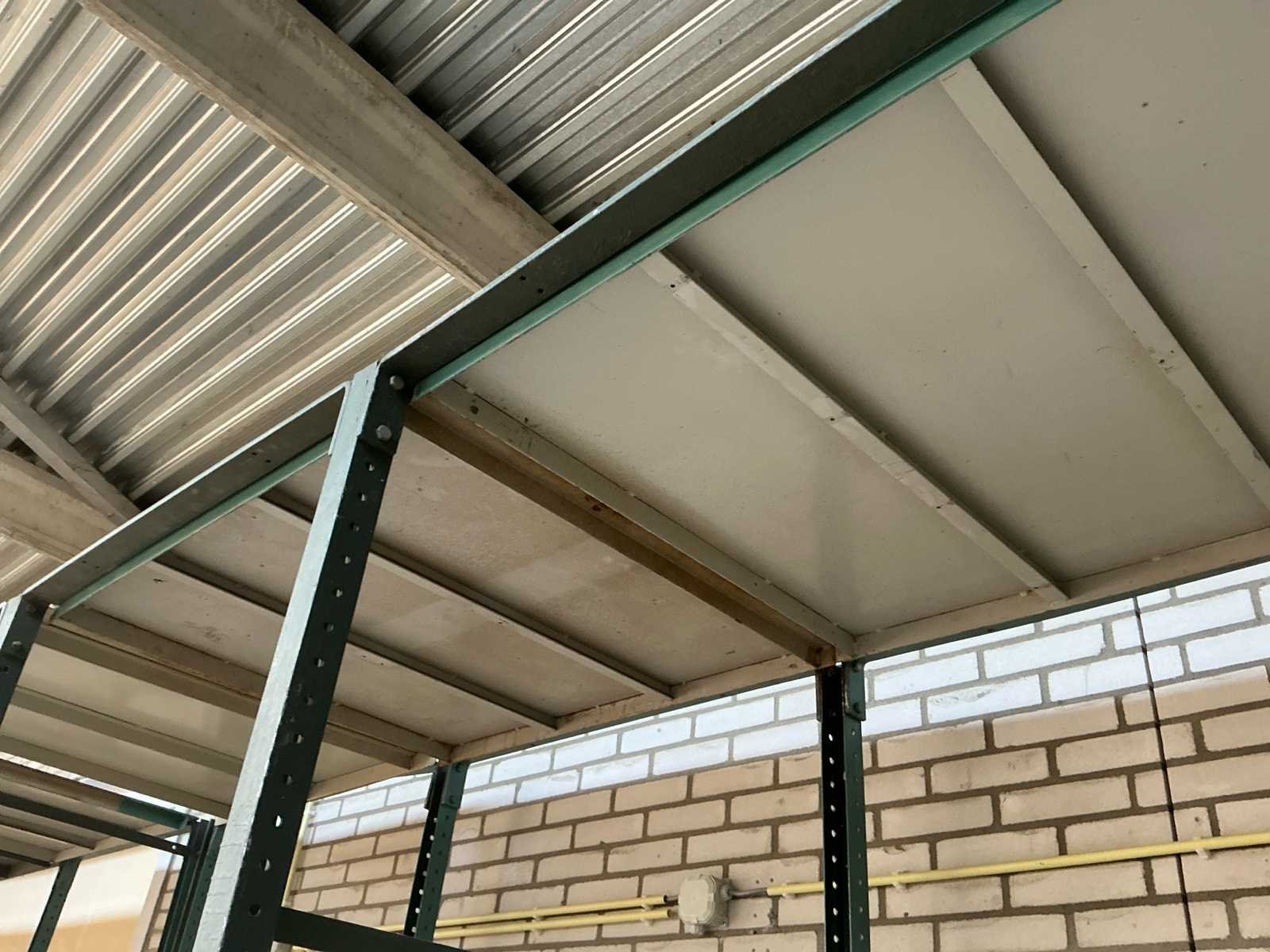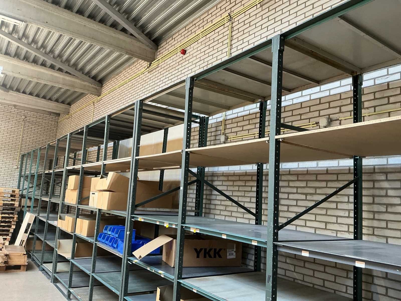 Magazijnstelling 16m. 17 staanders, 70 liggers.