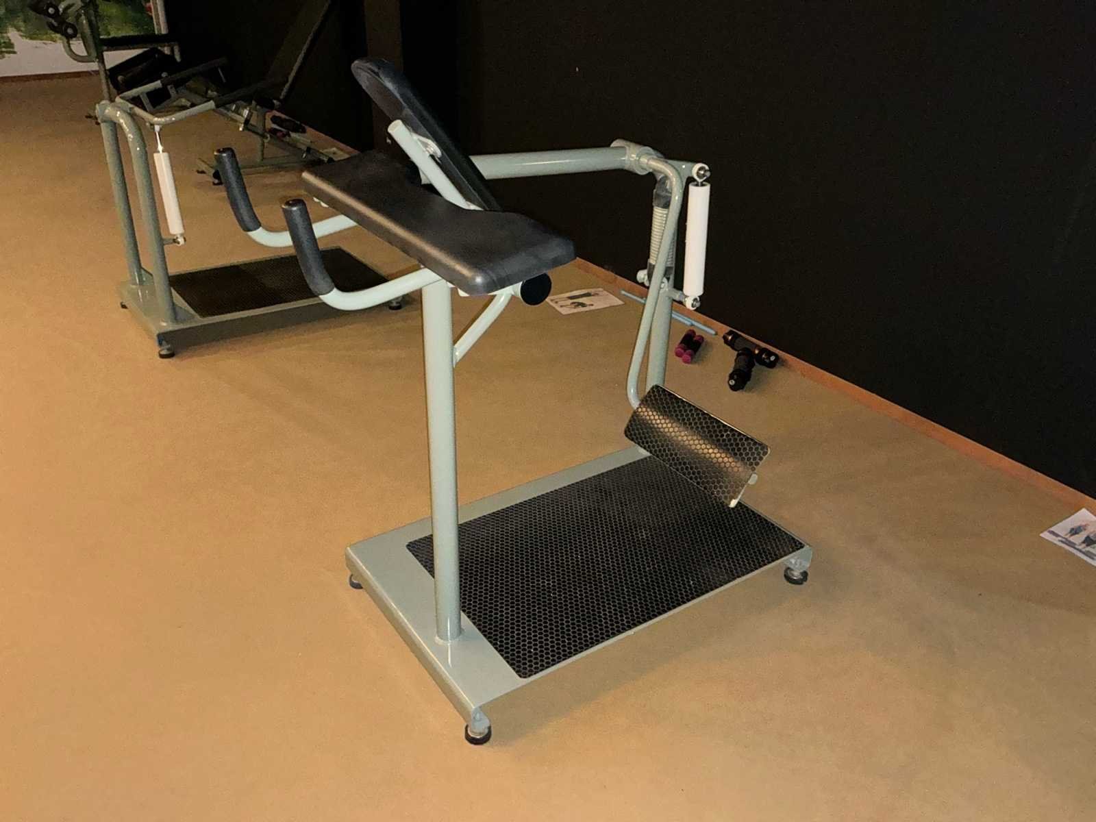 Werkend, hydraulisch. Inclusief toshiba tv &boxzak Exclusief attributen op de vloer Nee Bestaande uit: Sport machines 1e: Chestpress 2e: 1 arm fly machine 3e: Bicep curl 4e: Leg extensions 5e: Tricep machine 6e: Leg press 7e: Arm curl 8e: Onbekende machines 3 stuks