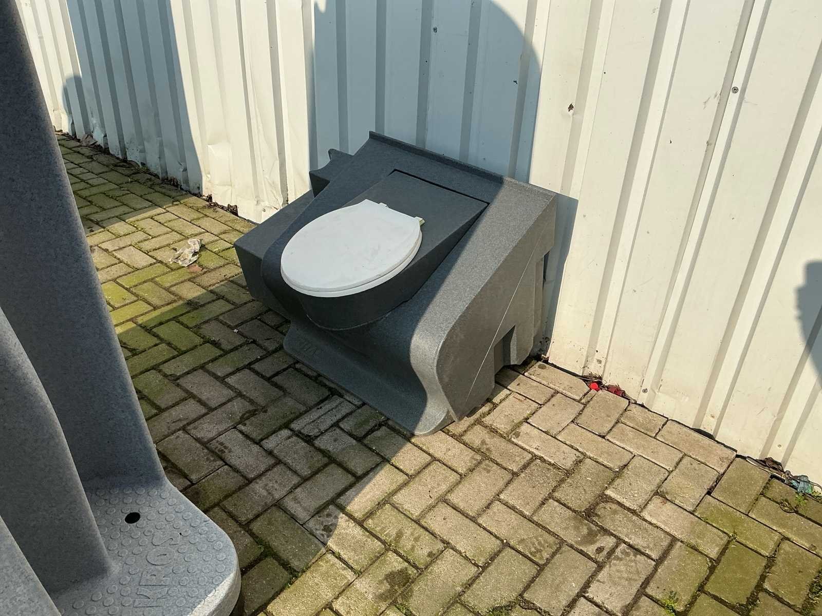 5x plaskruis – 115 x 115 x 220 cm 2x dixies (met open deur) – 105 x 105 x 230 cm 1x toilettank – 80 x 105 x 67 cm Nee