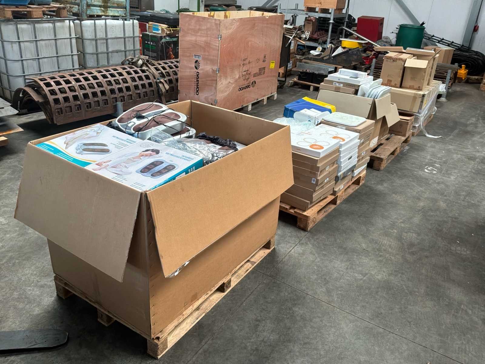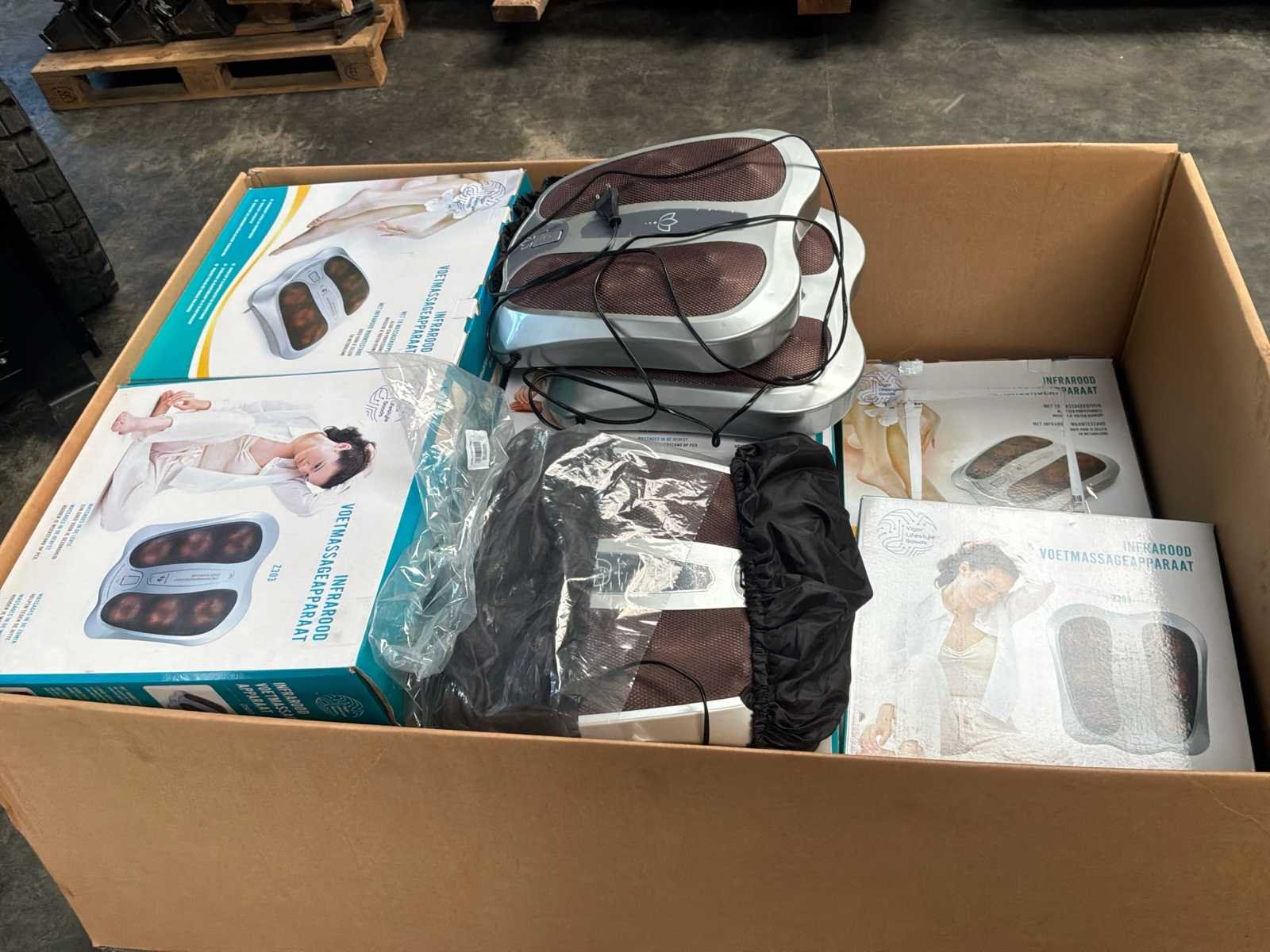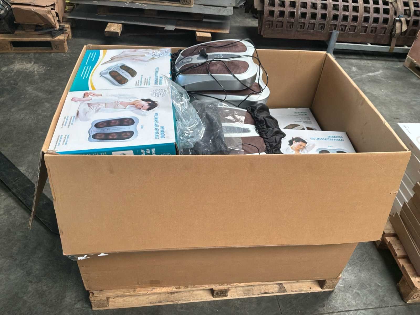 Betreft circa 260 items waarvan circa 38x infrarood voet masage apparaten en 222x body fat weegschalen bedienbaar met app voorzien van batterijen * grotendeels nieuwe apparaten deels retourgoederen * staat op en inclusief 4 pallets * winkelverkoopwaarde circa €20.000,00 Nee Leveringsvoorwaarden: Gratis op vrachtwagen