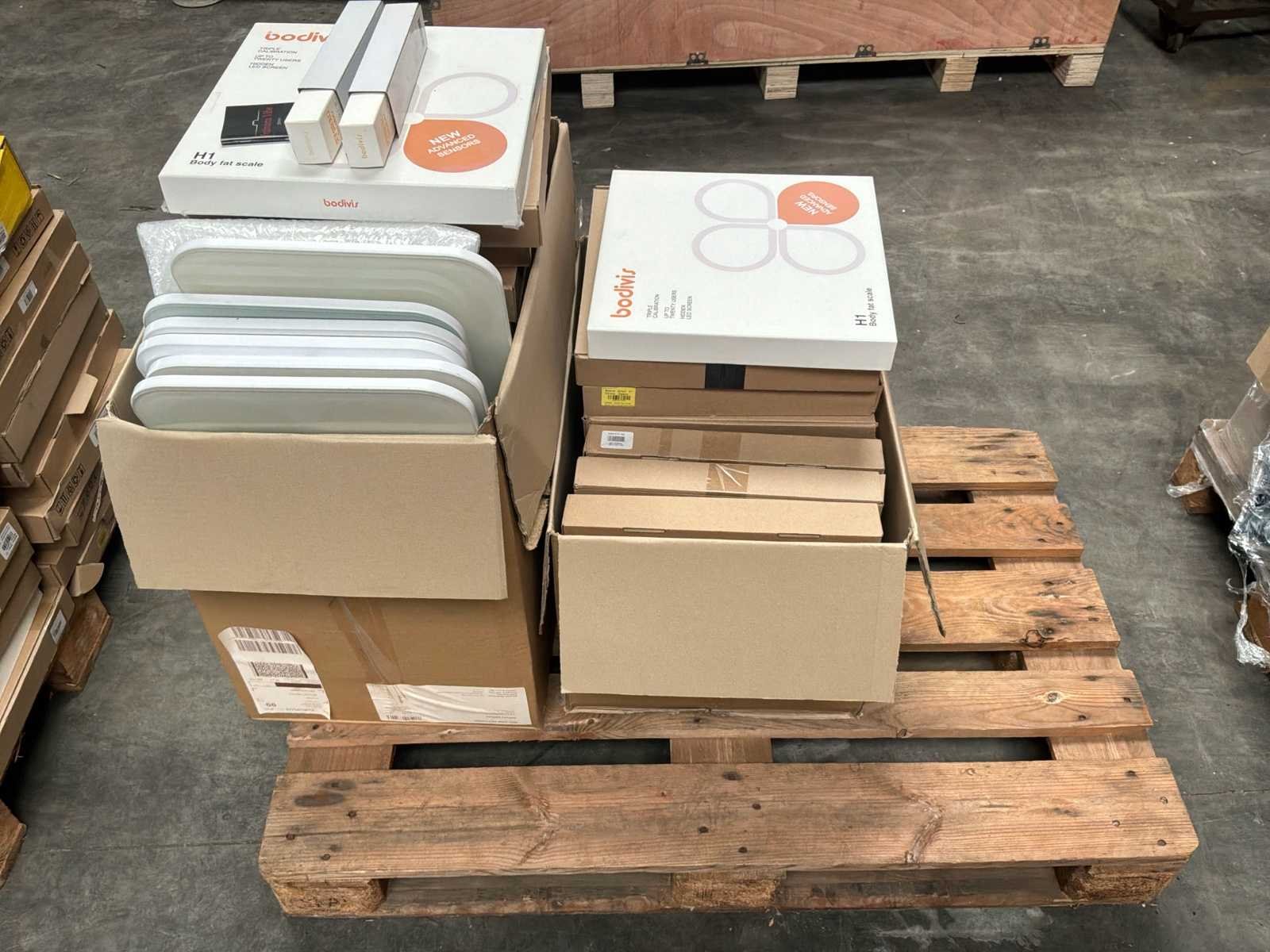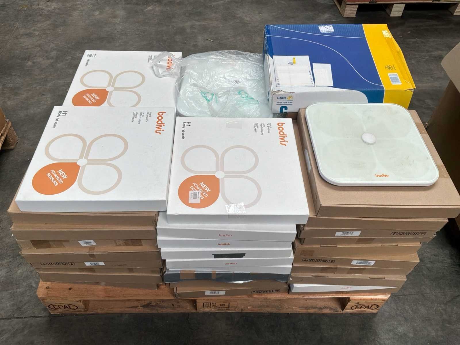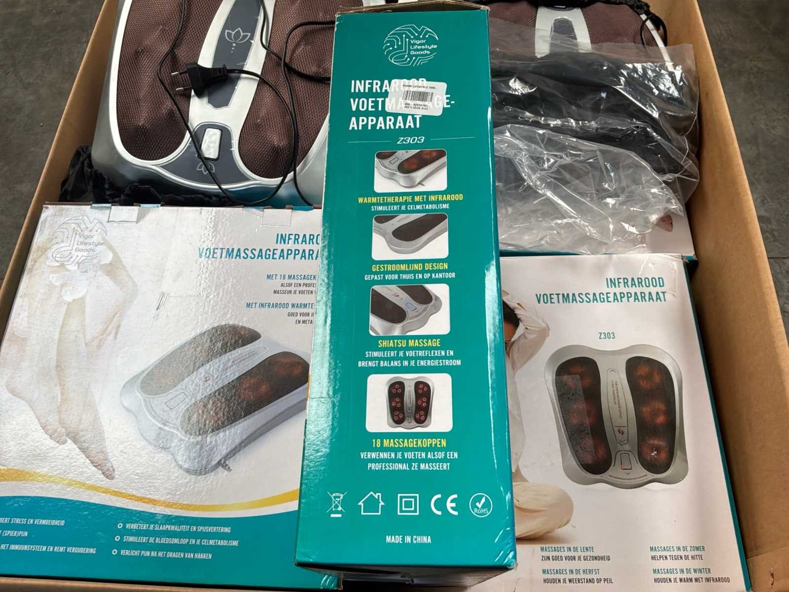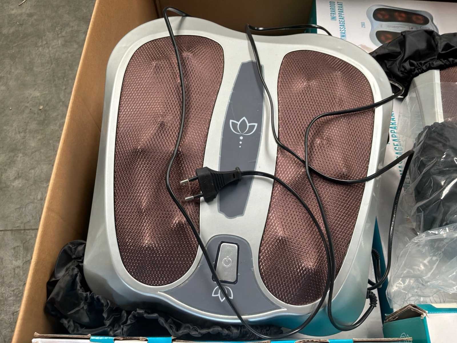 Betreft circa 260 items waarvan circa 38x infrarood voet masage apparaten en 222x body fat weegschalen bedienbaar met app voorzien van batterijen * grotendeels nieuwe apparaten deels retourgoederen * staat op en inclusief 4 pallets * winkelverkoopwaarde circa €20.000,00 Nee Leveringsvoorwaarden: Gratis op vrachtwagen