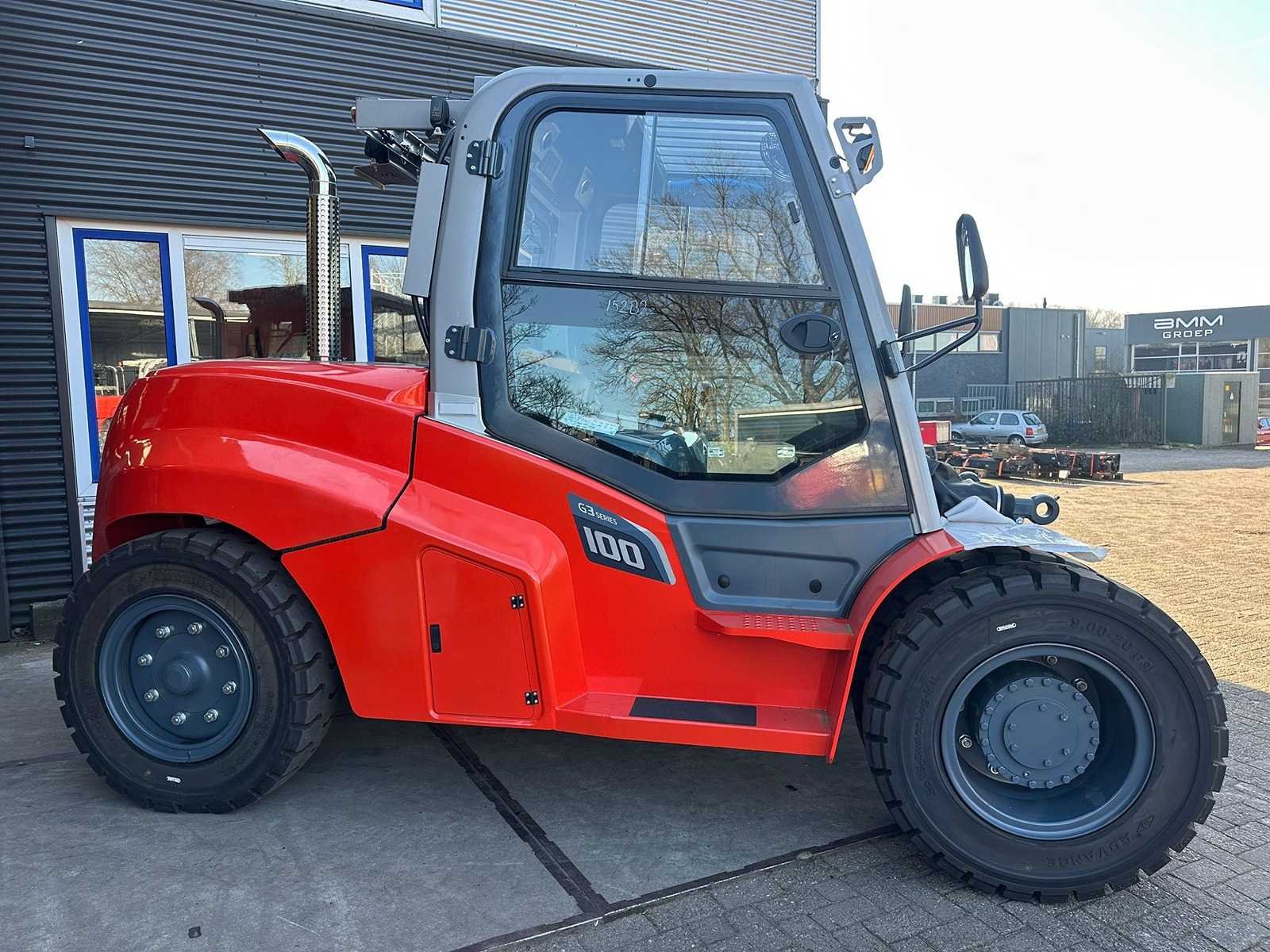 Cummins diesel motor Nee Merk: Heli Type: CPCD100 Bouwjaar: 2025 Brandstof: Diesel Mast: Duplex Aantal wielen: 4 Side-shift: true Hydraulisch verstelbare lepels: true Duplex mast: true Eigen gewicht: 14550kg Hefvermogen: 10000kg Lepellengte: 2100mm Hefhoogte: 4000mm Vol rubber banden: true Diesel: true