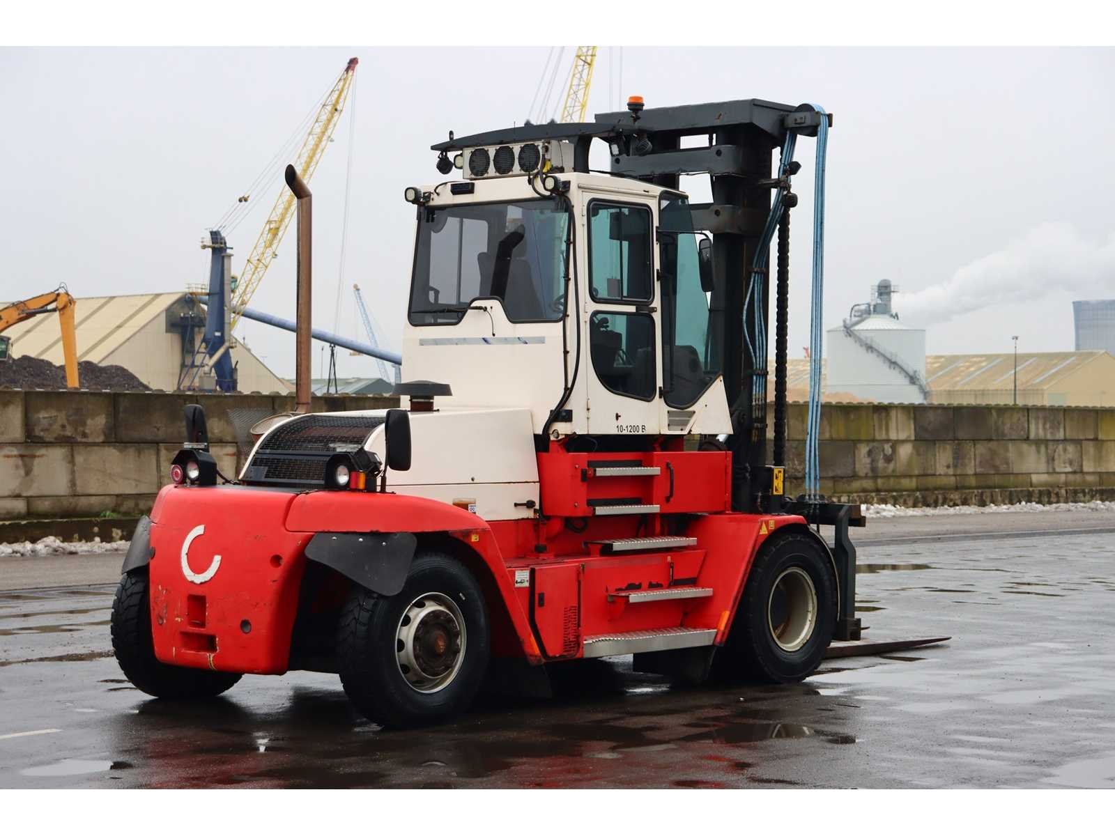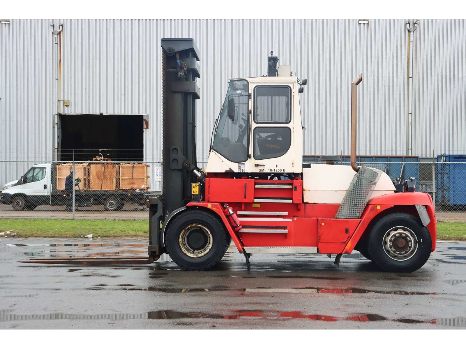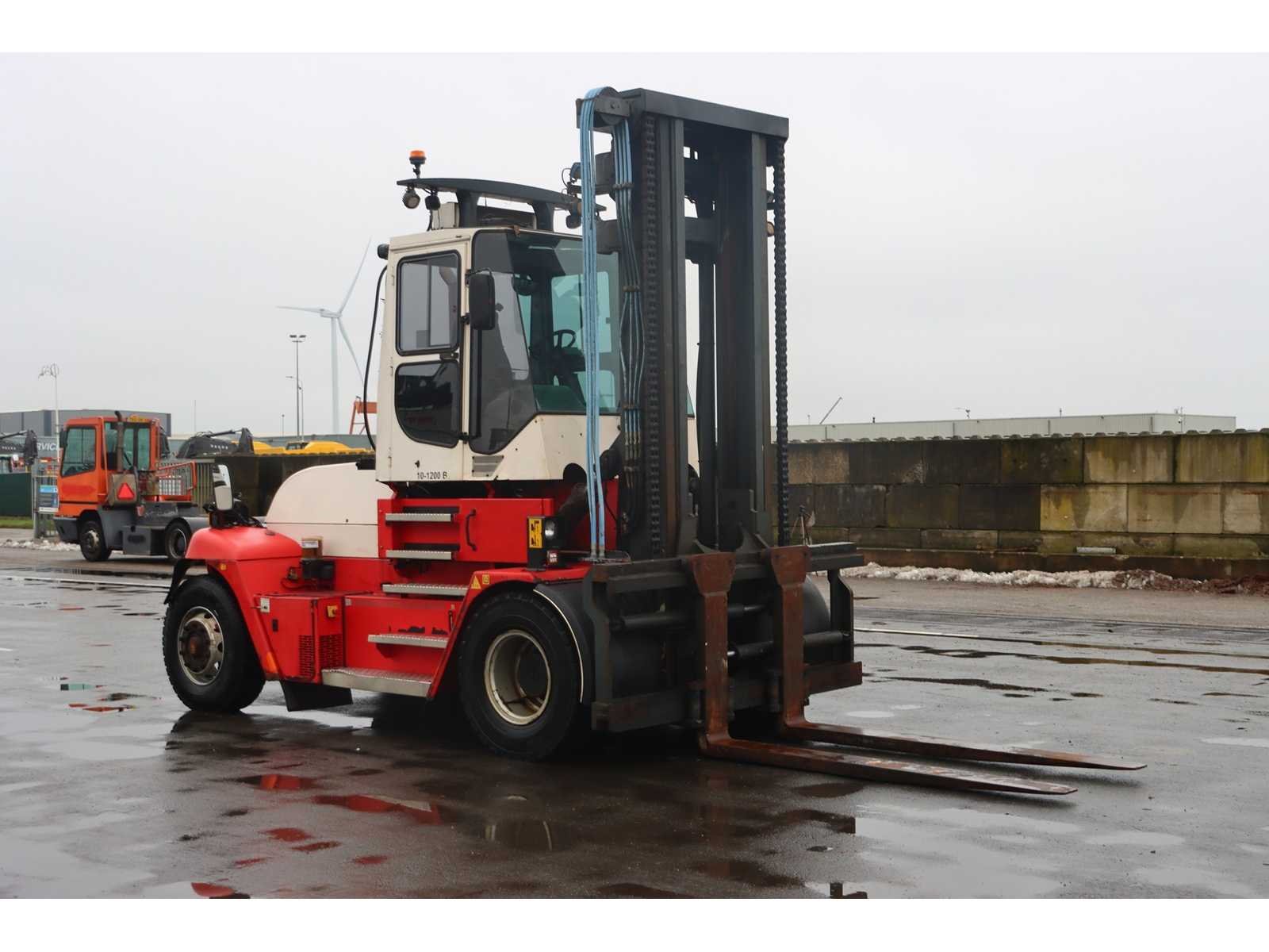 Hefvermogen: 10.000KG op 1200MM Nee Merk: Konecranes Type: 10-1200B Bouwjaar: 2011 Brandstof: Diesel Mast: Duplex Aantal wielen: 4 Afgelezen urenstand: 2163 Side-shift: true Hydraulisch verstelbare lepels: true Duplex mast: true Hefvermogen: 10000kg Lepellengte: 2400mm Hefhoogte: 5000mm Luchtbanden: true Diesel: true