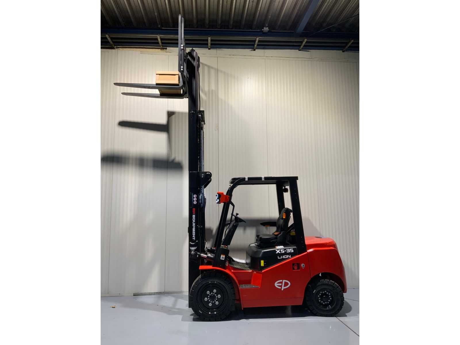 Met een hefvermogen van 3500 kg, een onderhoudsvrije lithiumaccu van 80V 280Ah (optioneel uit te breiden naar 560Ah) en een robuust ontwerp is deze heftruck ideaal voor logistieke omgevingen waar prestaties en betrouwbaarheid voorop staan. U profiteert van een sterke machine die moeiteloos zware lasten verplaatst, zonder uitstoot, lawaai of brandstofkosten. Dankzij het slimme batterijontwerp en de solide bouw is deze truck geschikt voor dagelijks intensief gebruik, zowel binnen als buiten. Nee Merk: EP Bouwjaar: 2025 Brandstof: Elektrisch Mast: Triple Soort band: Volrubber banden Aantal wielen: 4 Afgelezen urenstand: 1 Accu lader: true Free-lift: true Side-shift: true Triple mast: true Eigen gewicht: 5292kg Hefvermogen: 3500kg Lepellengte: 1200mm Hefhoogte: 4800mm Vol rubber banden: true Totale afmeting L: 3950mm Totale afmeting Breedte: 1230mm Totale afmeting Hoogte: 2300mm