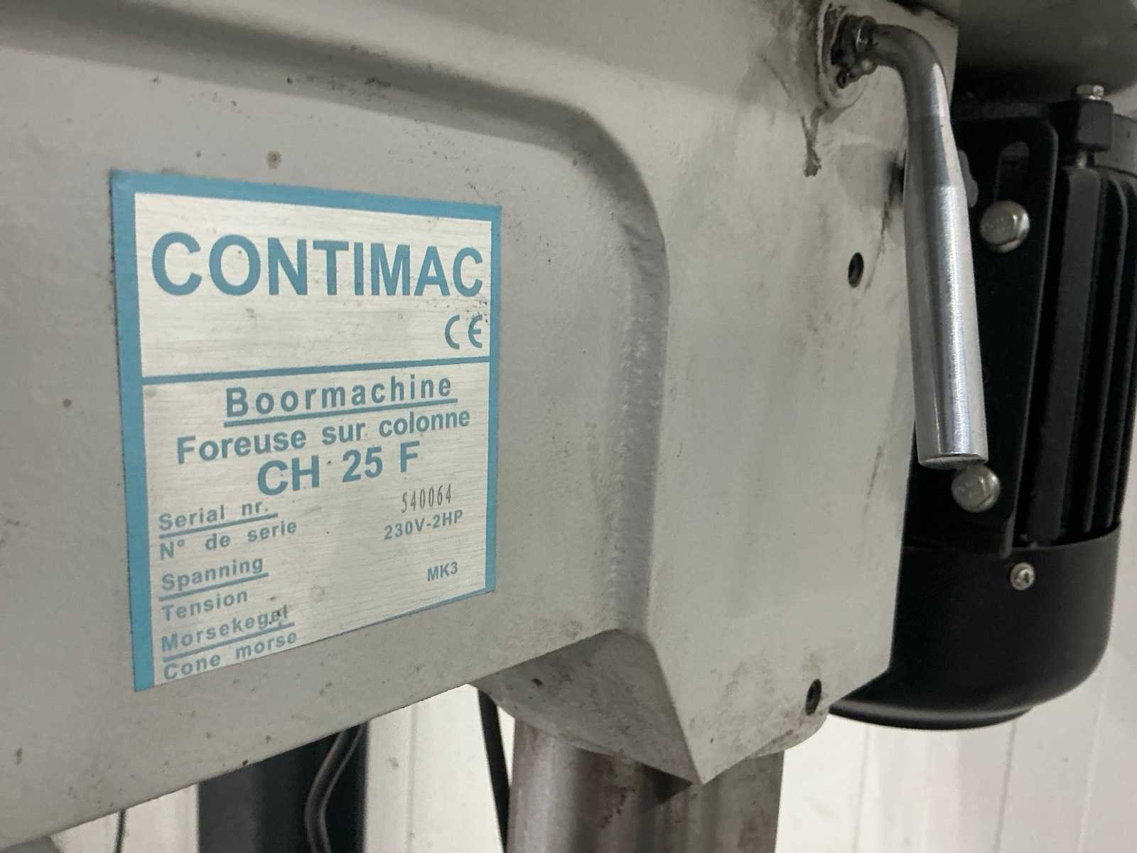 Inclusief werkstukklem en diverse boren Nee Merk: Contimac Type: CH 25 F Bouwjaar: 2014 Serienummer: 540064 Tafel afmeting l: 420mm Tafel afmeting b: 470mm Motorvermogen (kW): 1.5kW Aansluiting: 230V Afmeting l: 900mm Afmeting b: 550mm Afmeting h: 1750mm