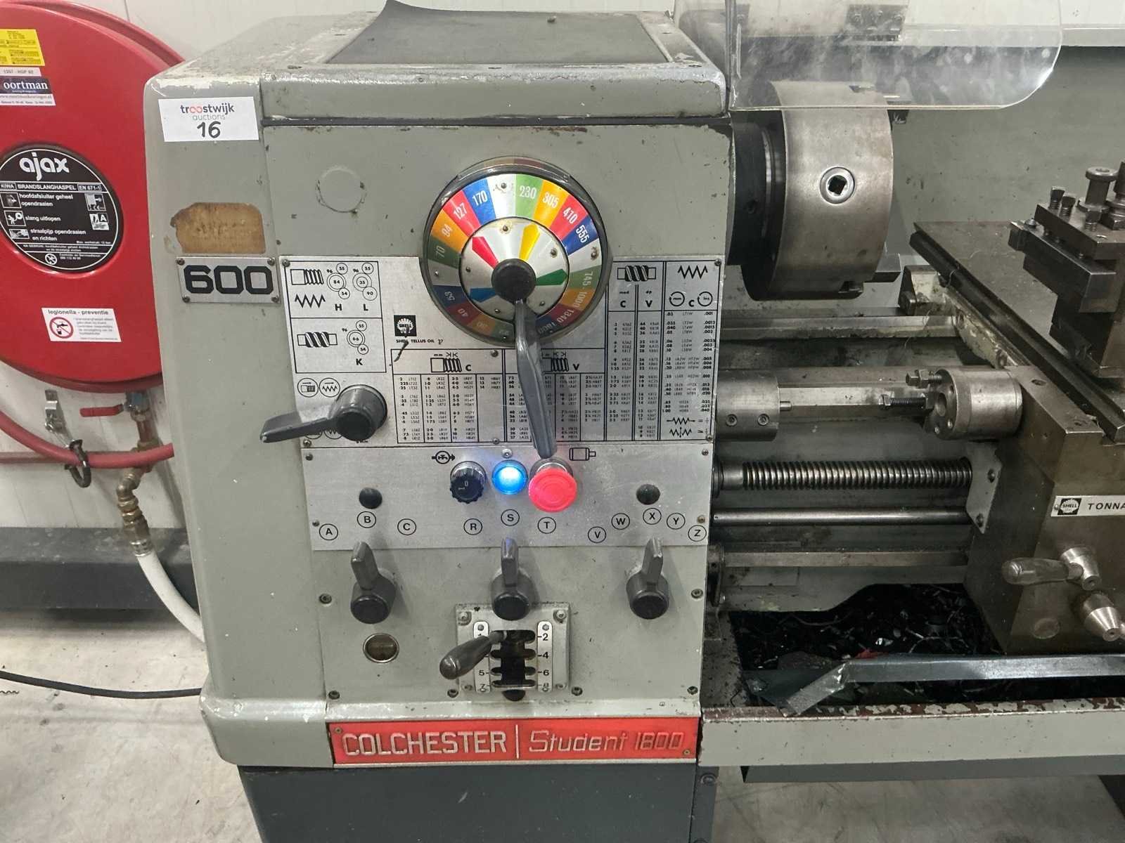 Afstand tussen de centers 600 mm, Asgat doorvoer 40 mm Nee Merk: Colchester Type: Student 1800 Aansluiting: 380V Afmeting l: 1600mm Afmeting b: 750mm Afmeting h: 1250mm