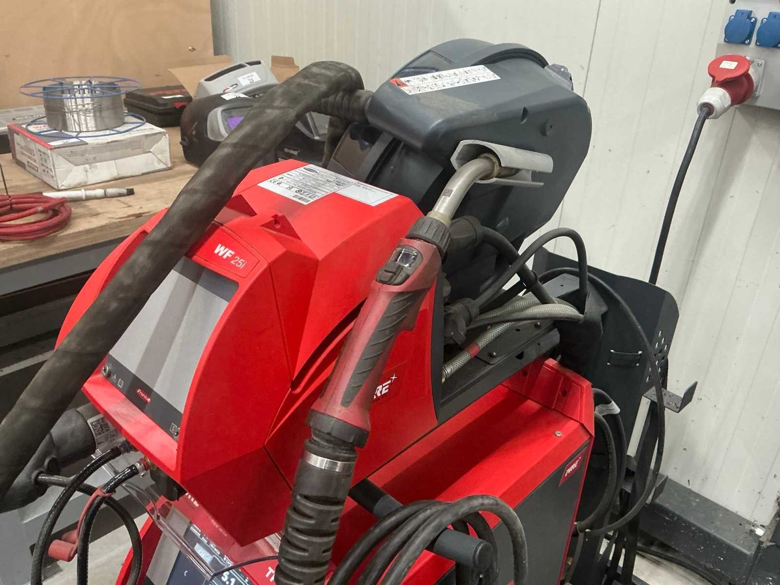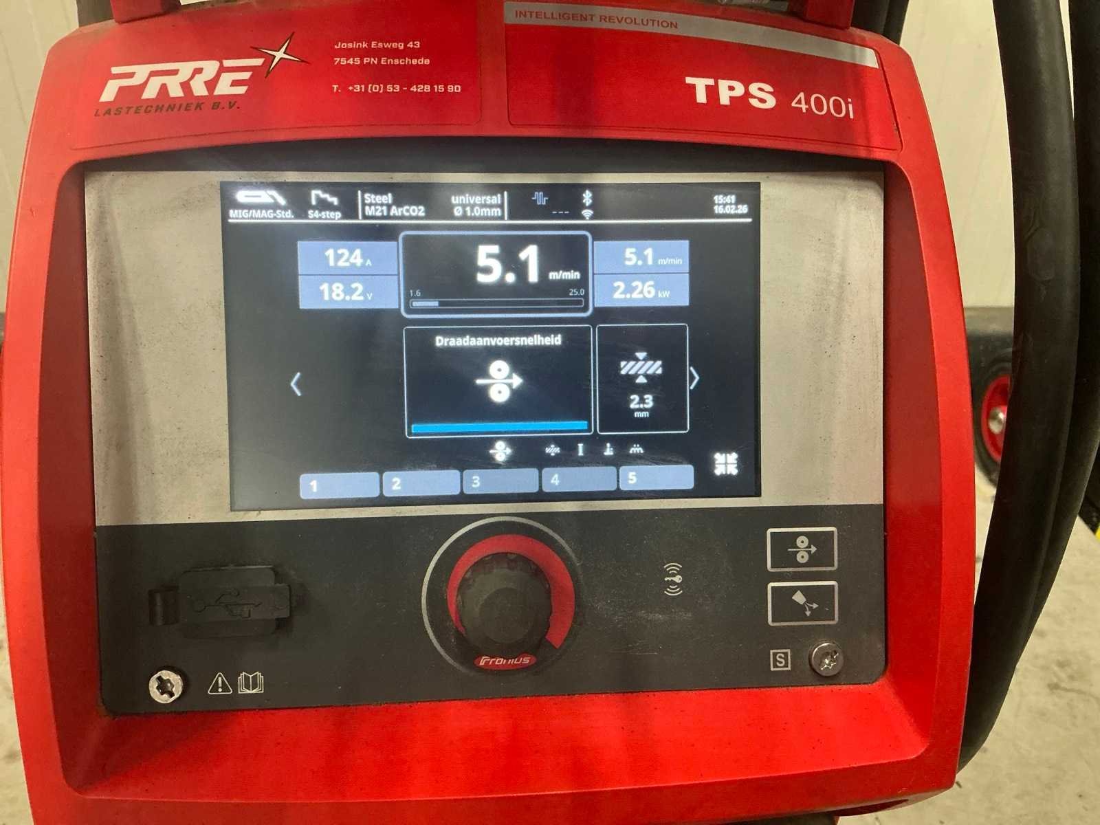 Bestaande uit Fronius TPS 400i stroombron, Fronius WF 25i draaddoorvoerunit, Fronius CU 1100I waterkoeler en Fronius TU-car 4-wielige transportkar. Exclusief gasfles. Nee Merk: Fronius Type: TPS 400i Bouwjaar: 2023 Aansluiting: 400V Digitale uitlezing: true Draadaanvoerunit: true