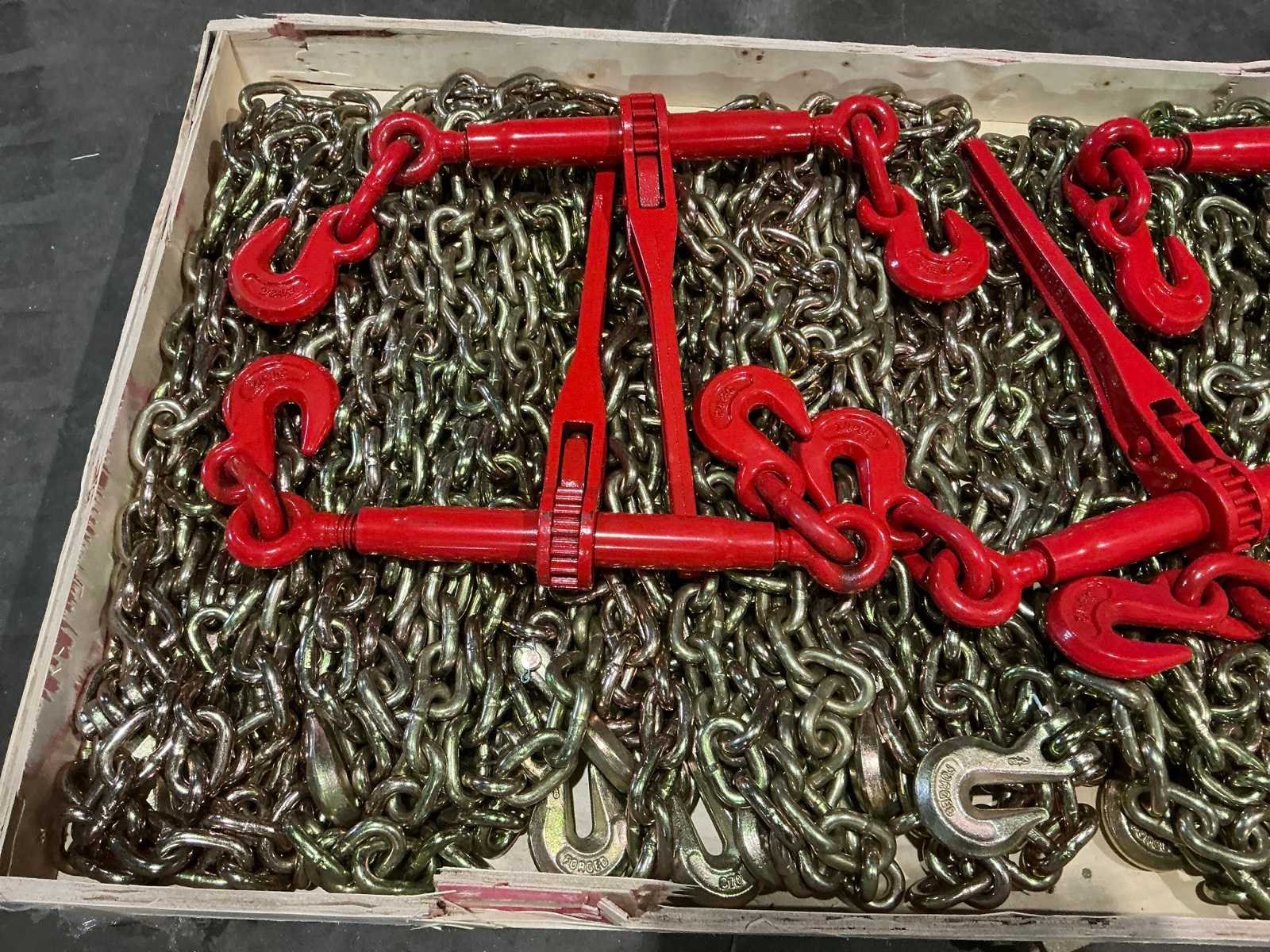 Pallet met 5x ratelspanner en 10x transportketting (4,17 ton)