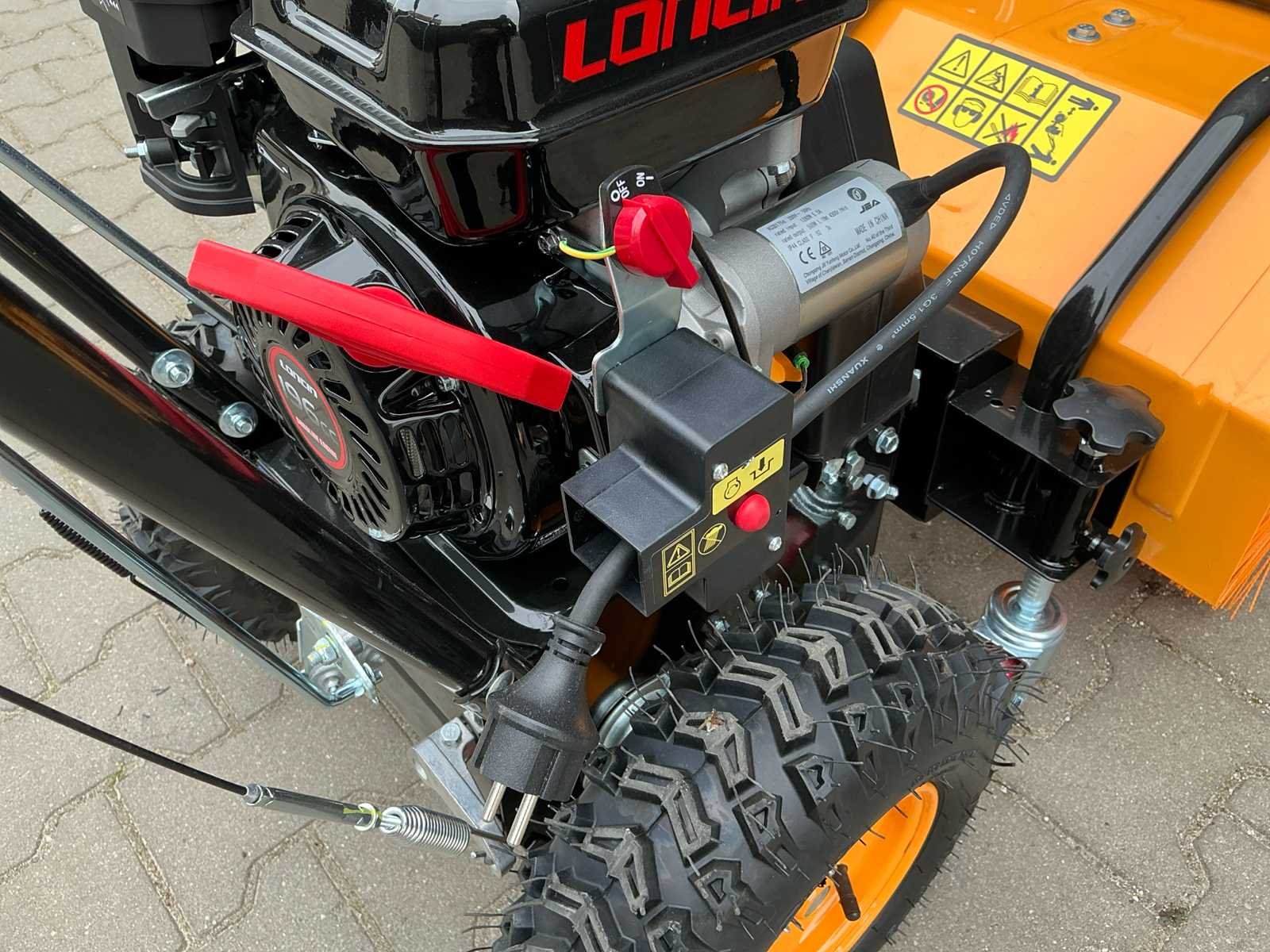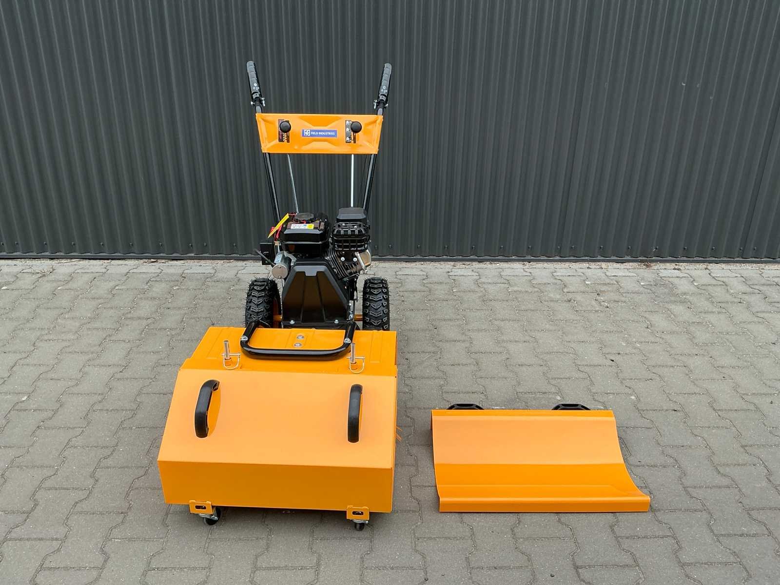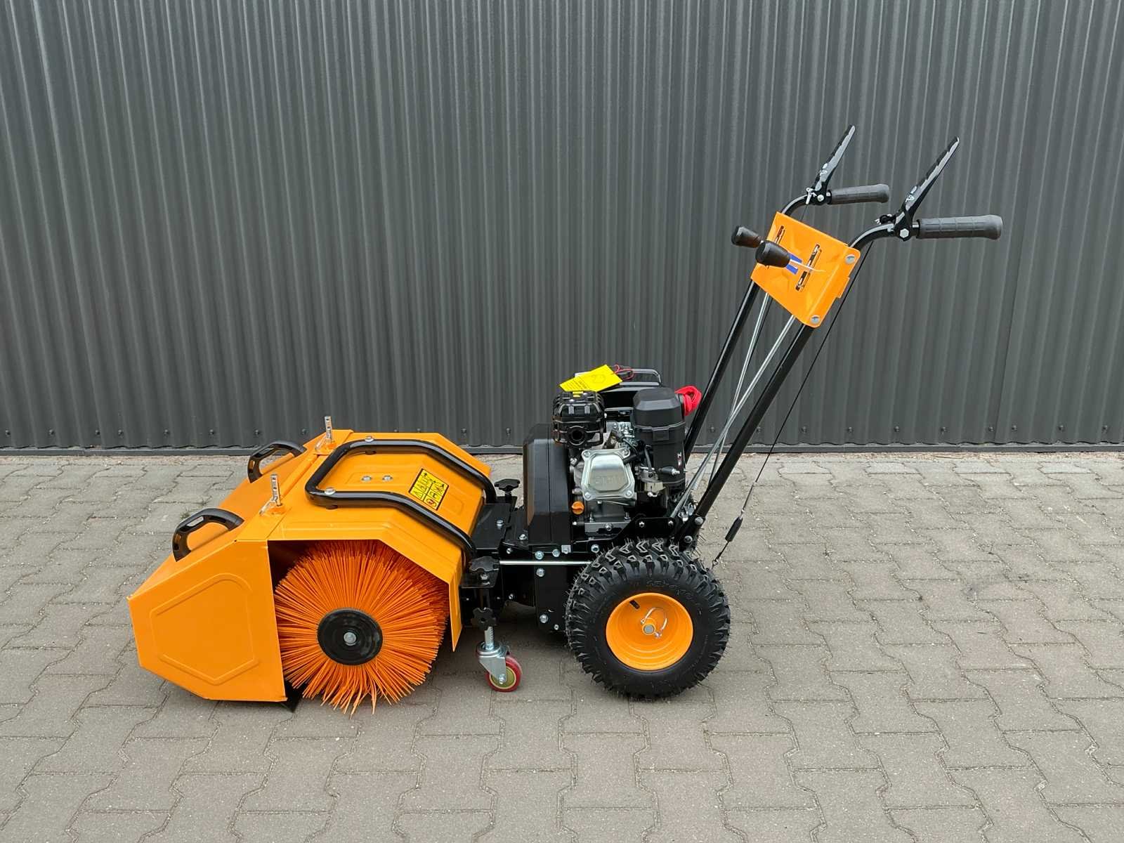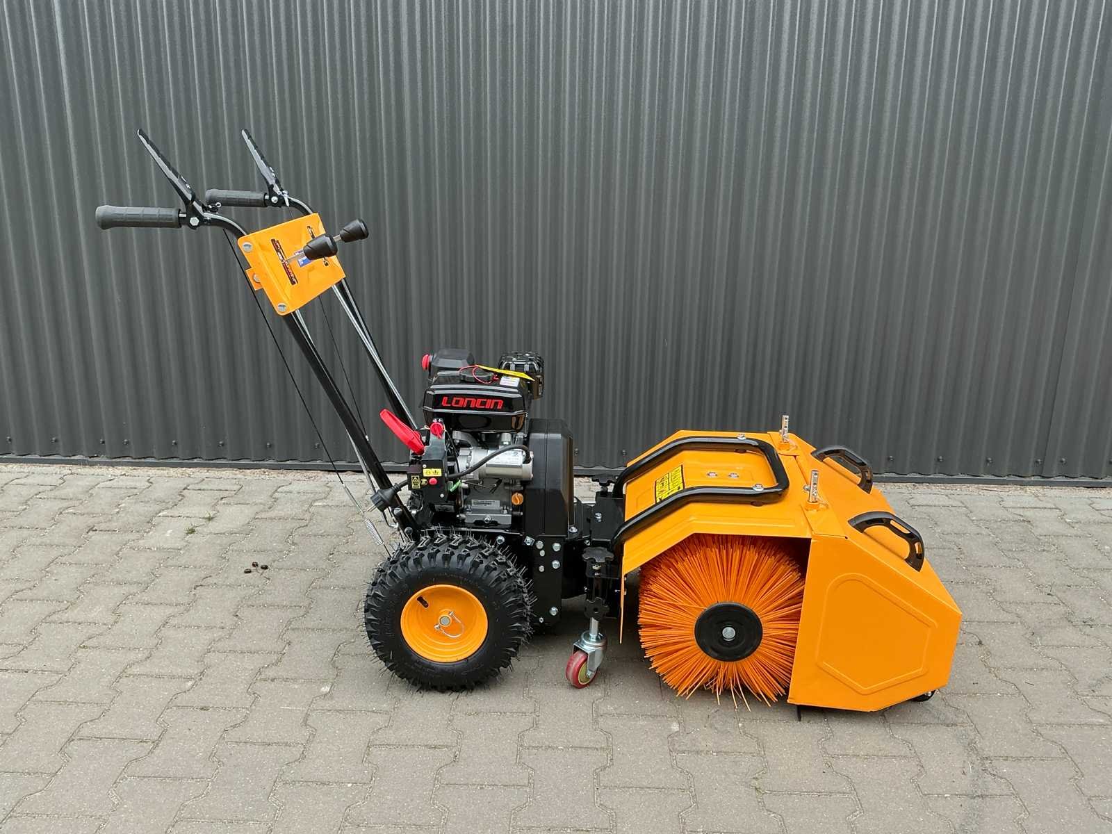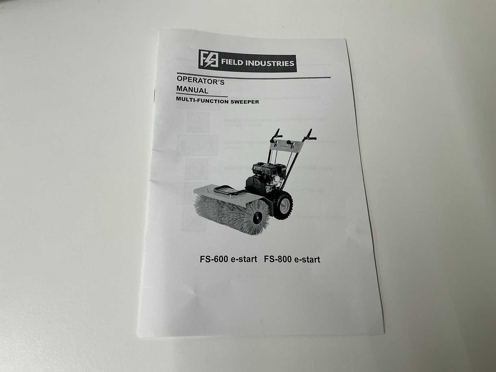 Zelfaangedreven veegmachine, voorzien van 196 cc Loncin 4-takt benzinemotor, elektrisch gestart. Rolborstel verstelbaar in drie verschillende standen (15° naar links, 0° en 15° naar rechts), 5 versnellingen vooruit en 2 achteruit No Merk: Field Industries Type: FS-600 e-start Bouwjaar: 2025 Werkbreedte: 600mm